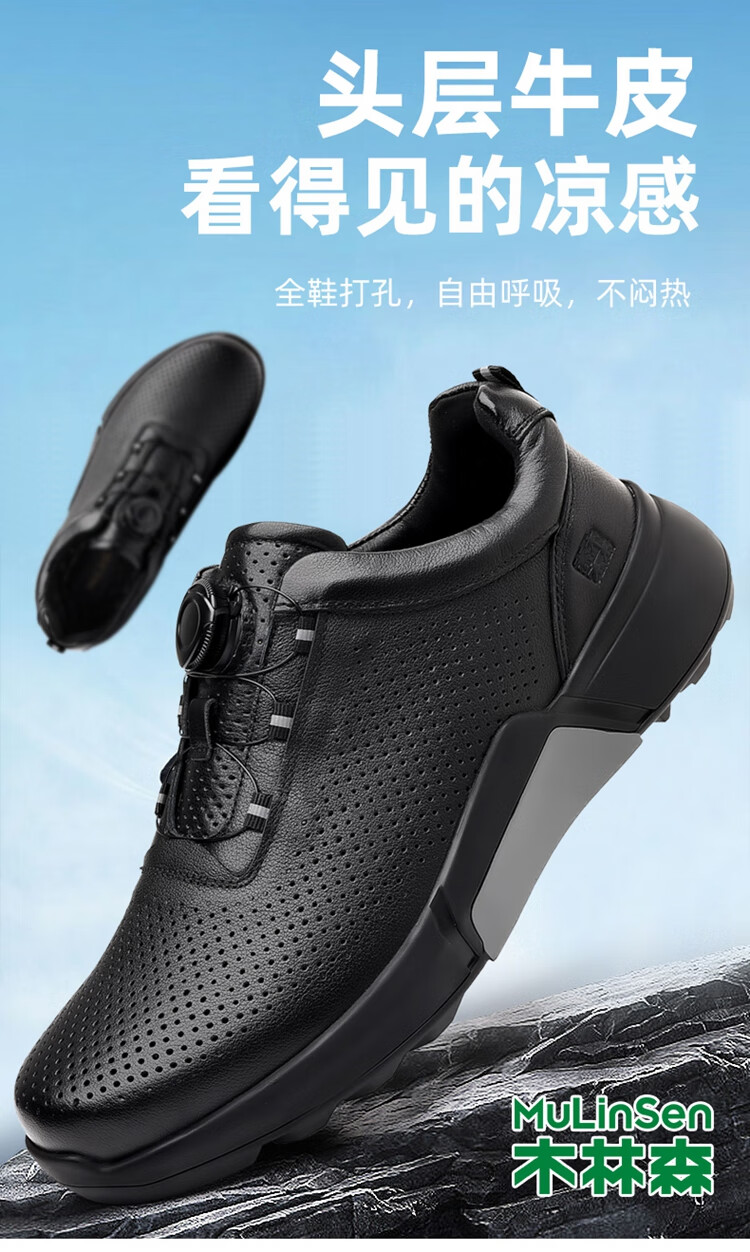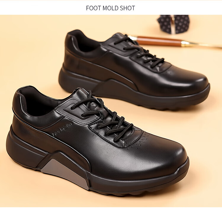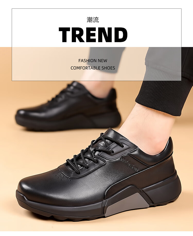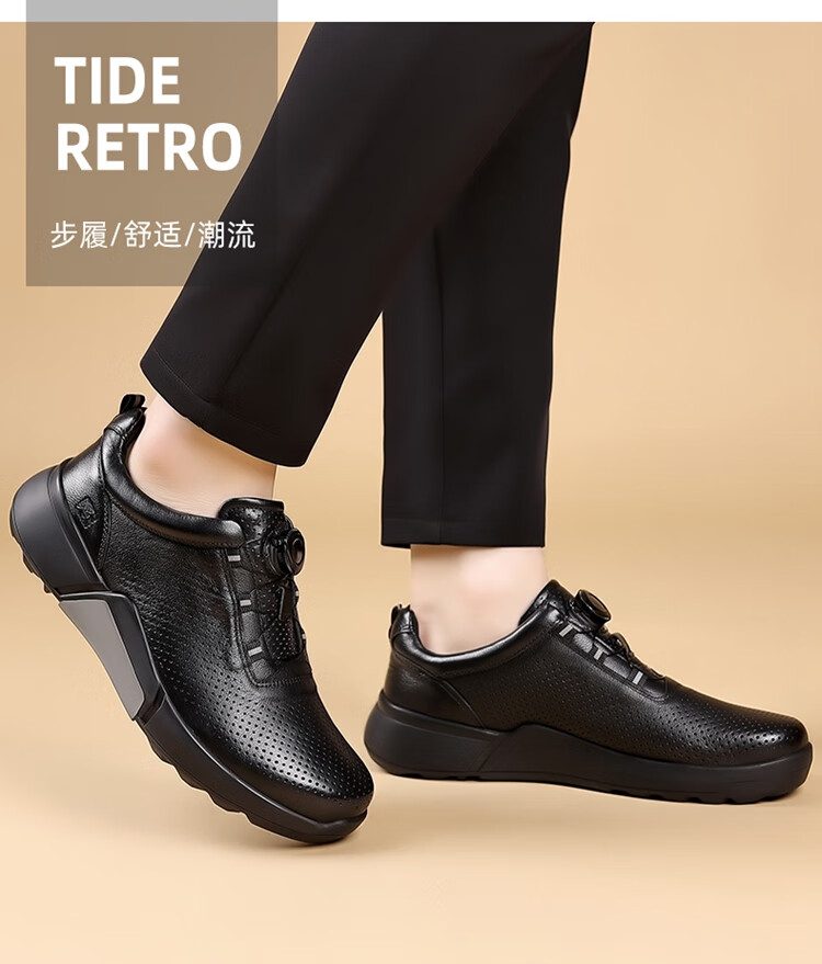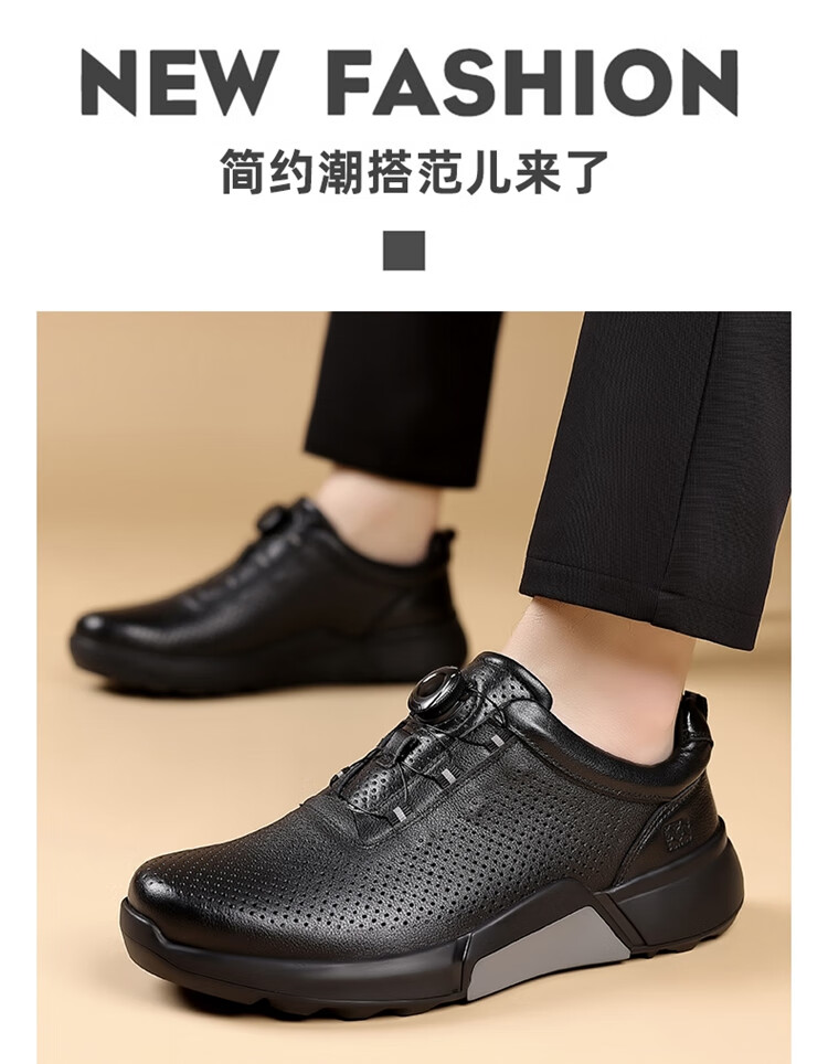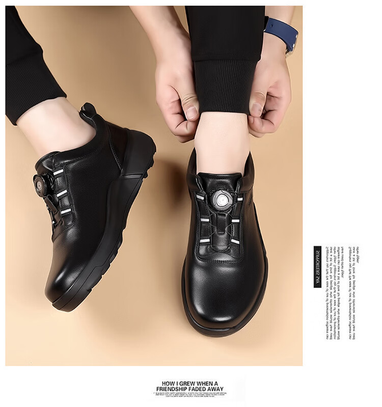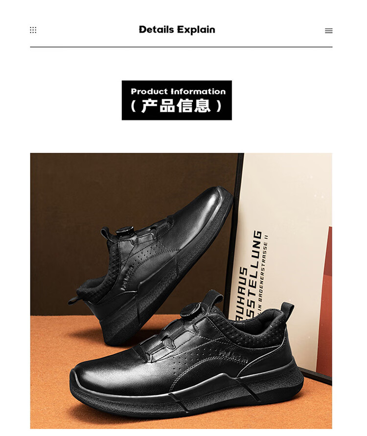 Mulinsen first layer cowhide men's shoes autumn soft sole business casual shoes light luxury men's casual leather shoes men's sneakers black (rotary buckle) J451010188 42