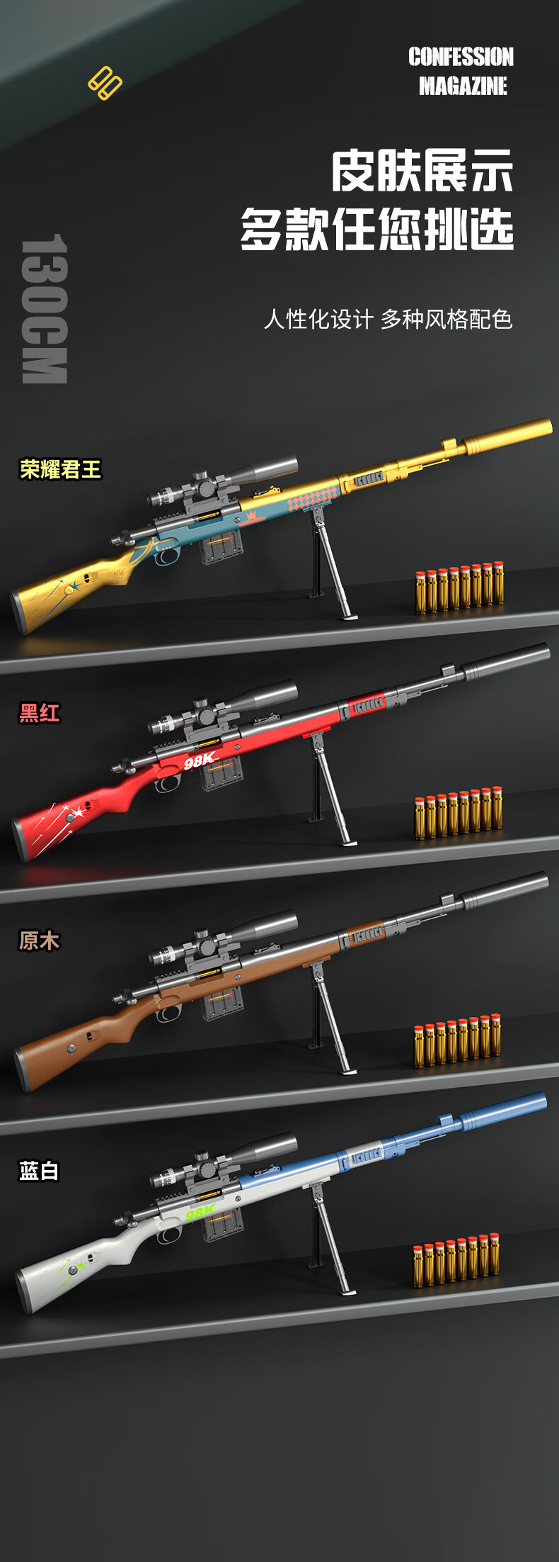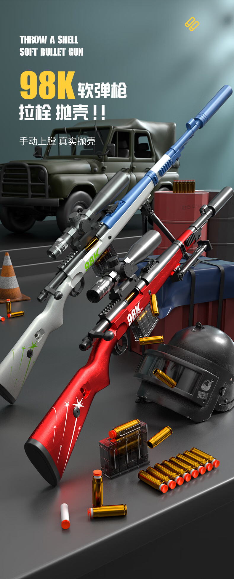 Hardy Toy Gun Extra Large Shell Ejection 98 Toy K Soft Bullet Gun Sniper Rifle Children Boys 8-12 Years Old New Year Gift 130CM Brown 98K-40 Soft Bullet + 6 Piece Set