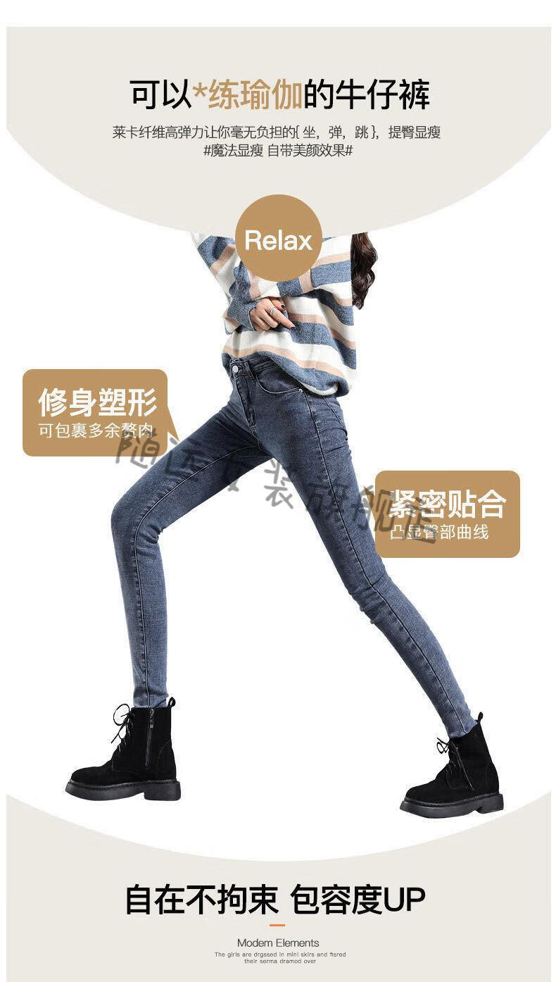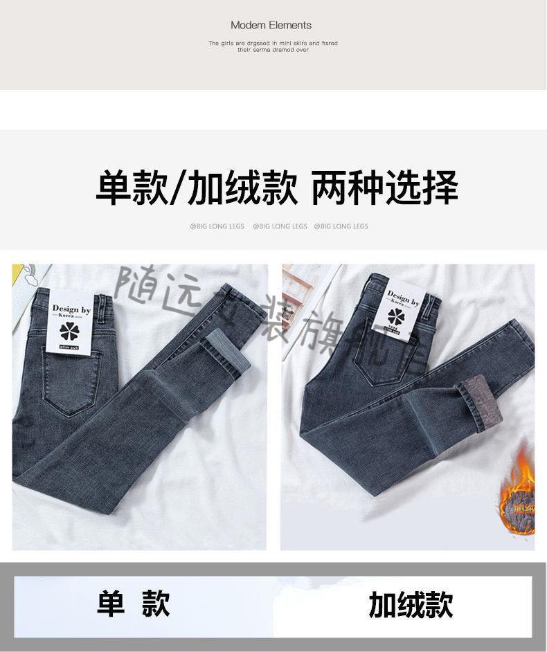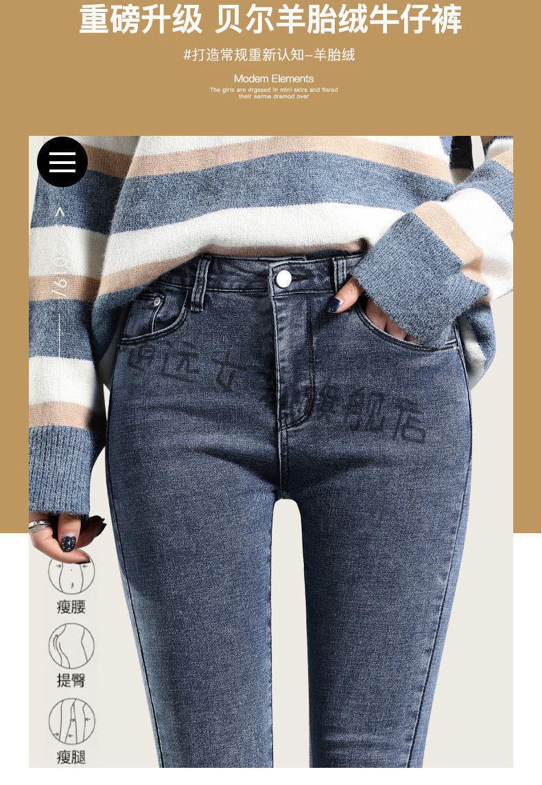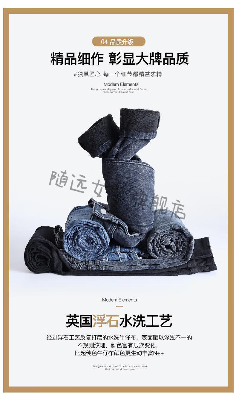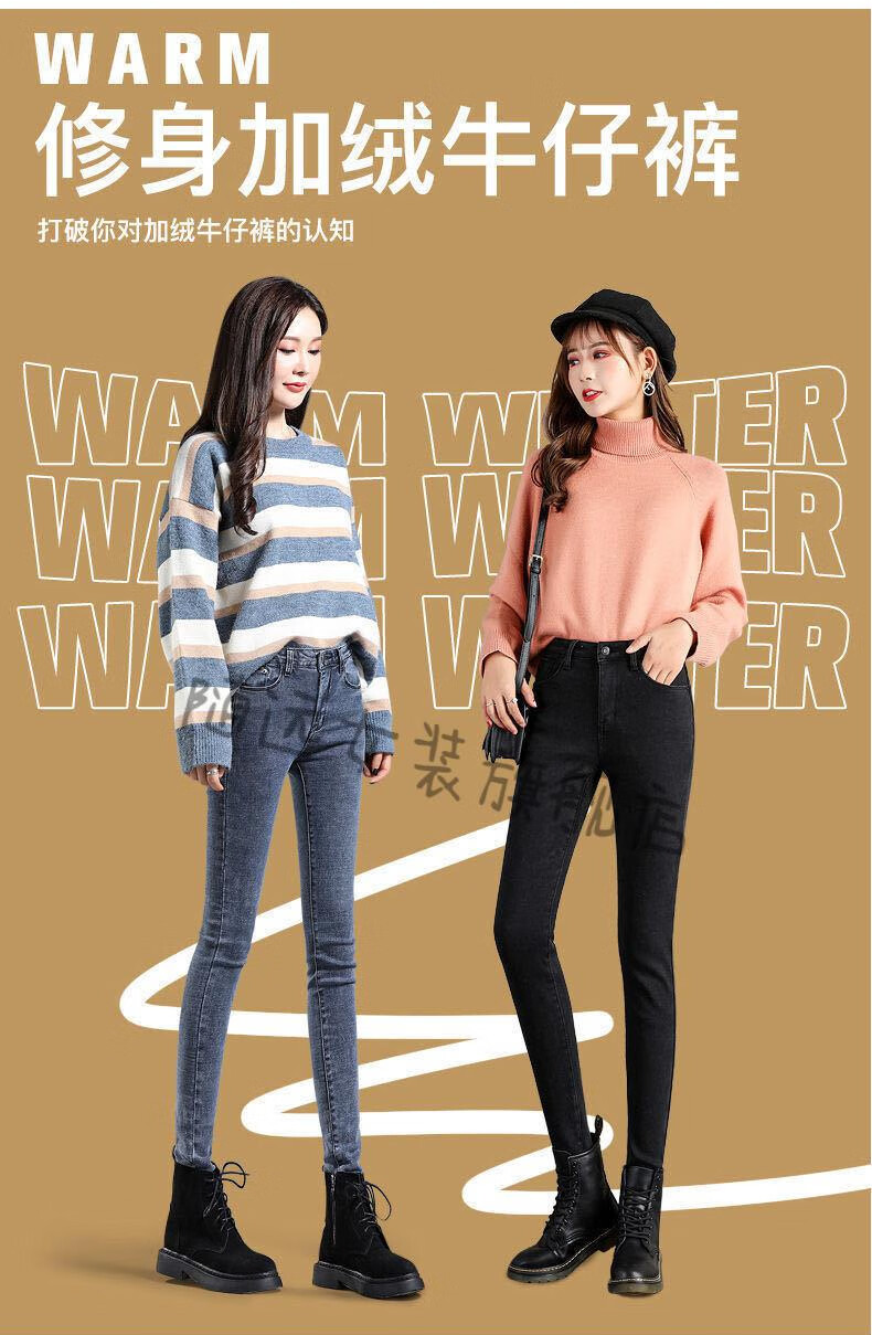 Suiyuan High Waist Jeans Plus Velvet Women's Winter Small Leg Pants Slimming Outerwear Thickened Long Pants Women's Tight Stretch Pencil Pants Blue Gray Velvet Style 30 125Jin Jin is equal to 0.5kg -135Jin Jin is equal to 0.5kg