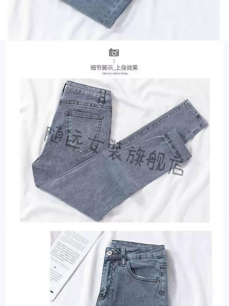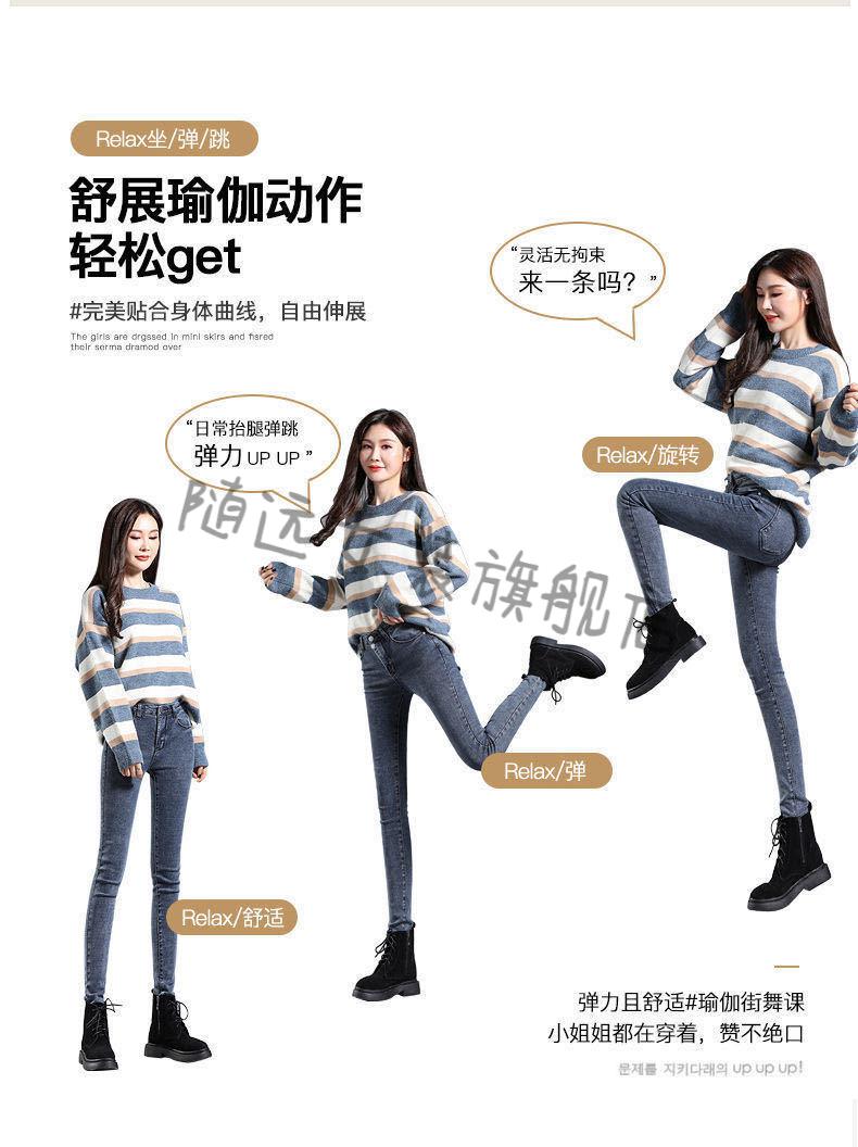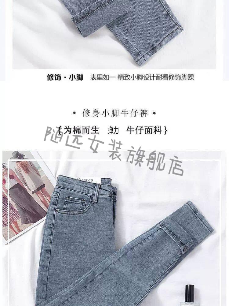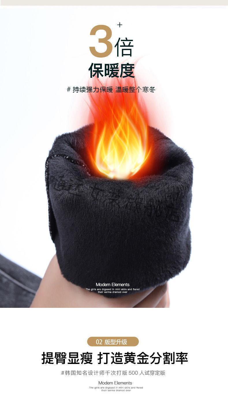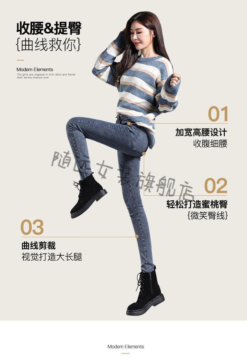 Suiyuan High Waist Jeans Plus Velvet Women's Winter Small Leg Pants Slimming Outerwear Thickened Long Pants Women's Tight Stretch Pencil Pants Blue Gray Velvet Style 30 125Jin Jin is equal to 0.5kg -135Jin Jin is equal to 0.5kg