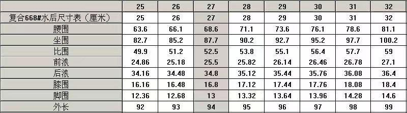USA(inch) 28-30 30-32 32-34 34-38 38-42