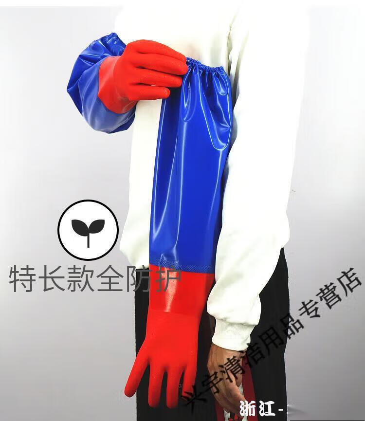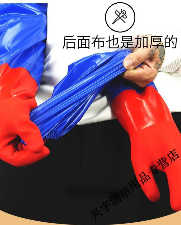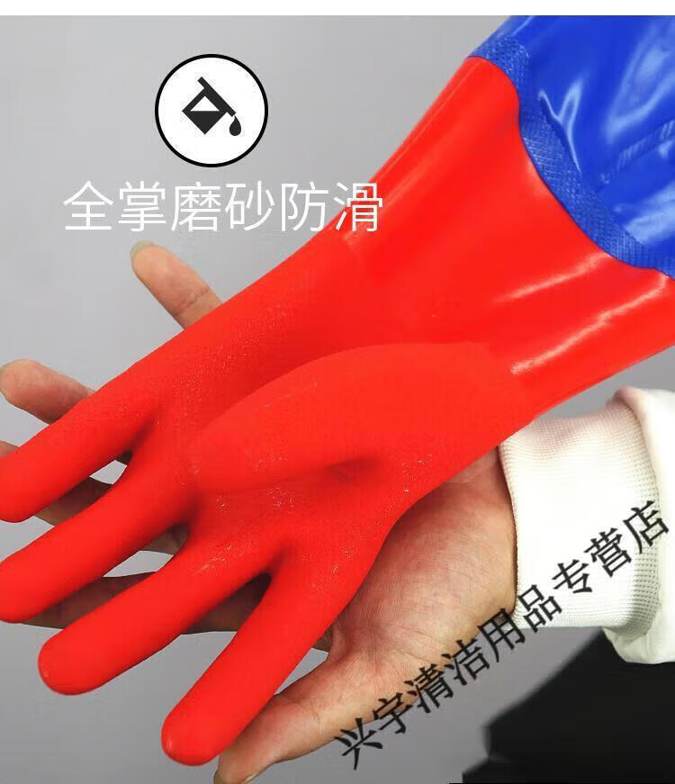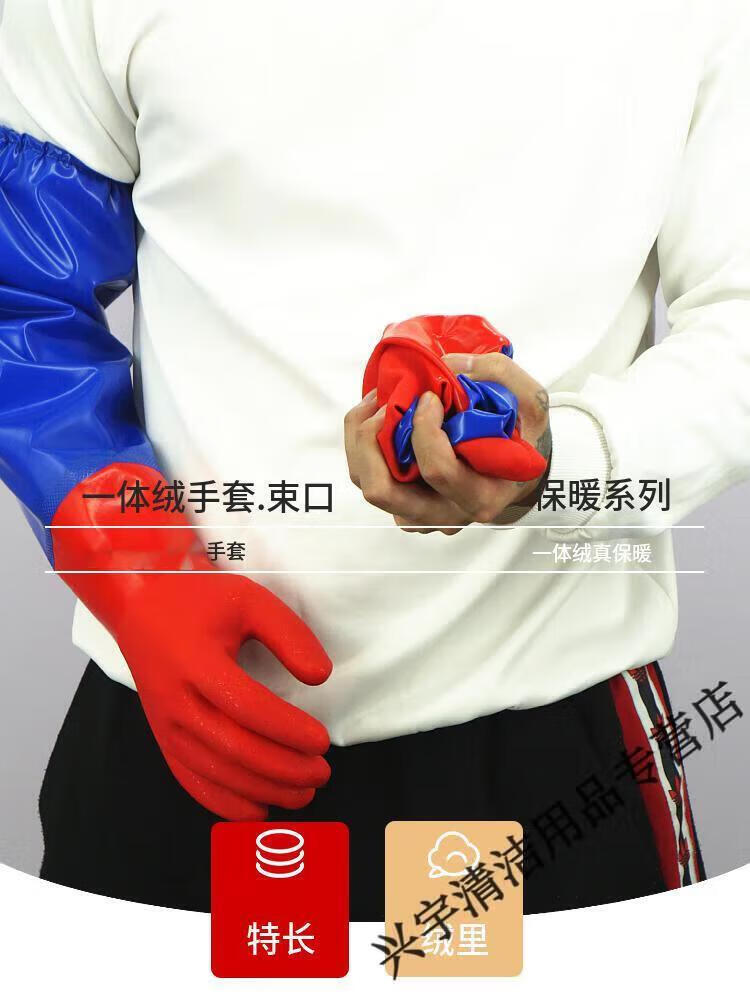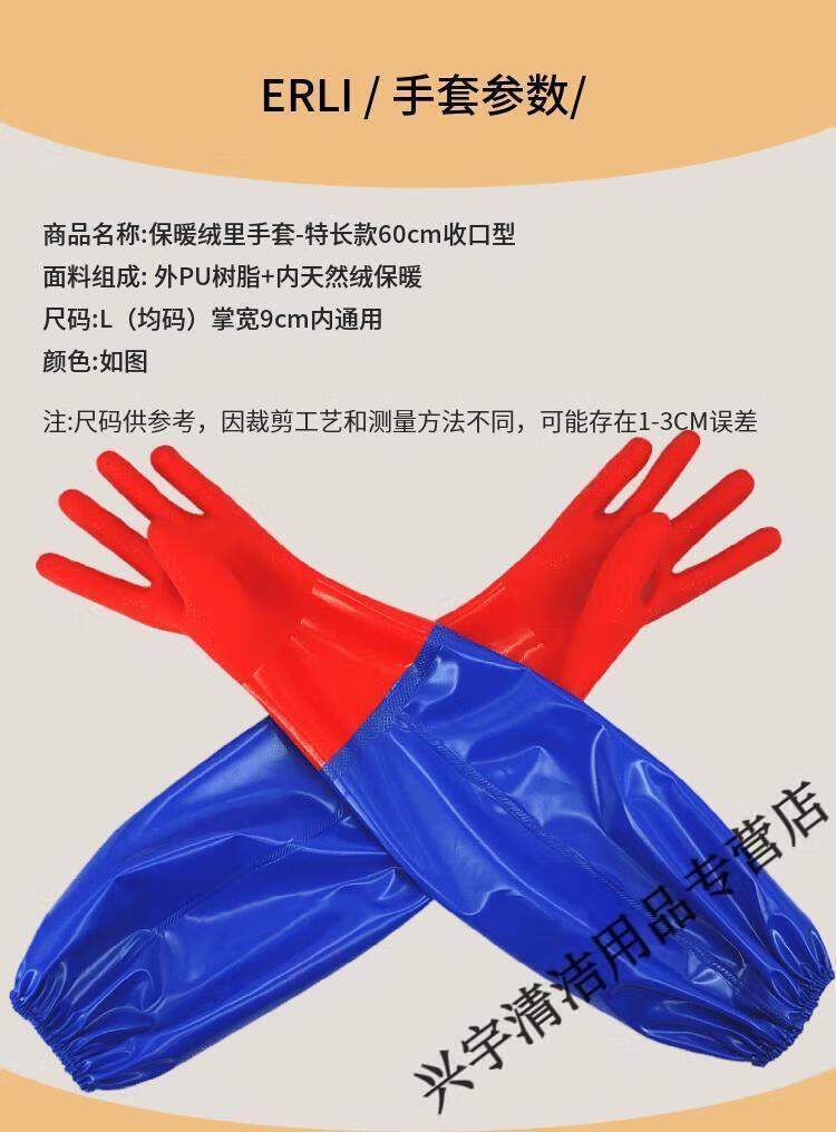 Kill fish aquatic products extra long plus velvet to keep warm kitchen housework cleaning dishwashing gloves rubber leather laundry clothes latex for women one size fits all - blue cloth 60 cm one-piece velvet red 1 pair L