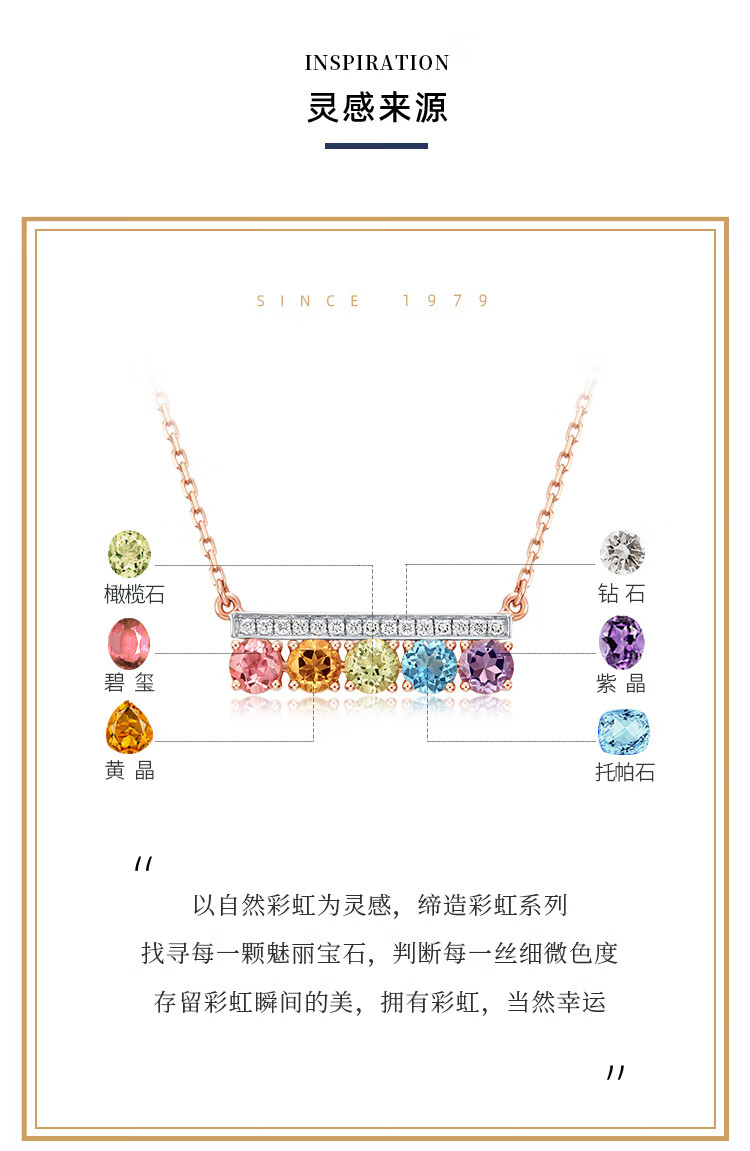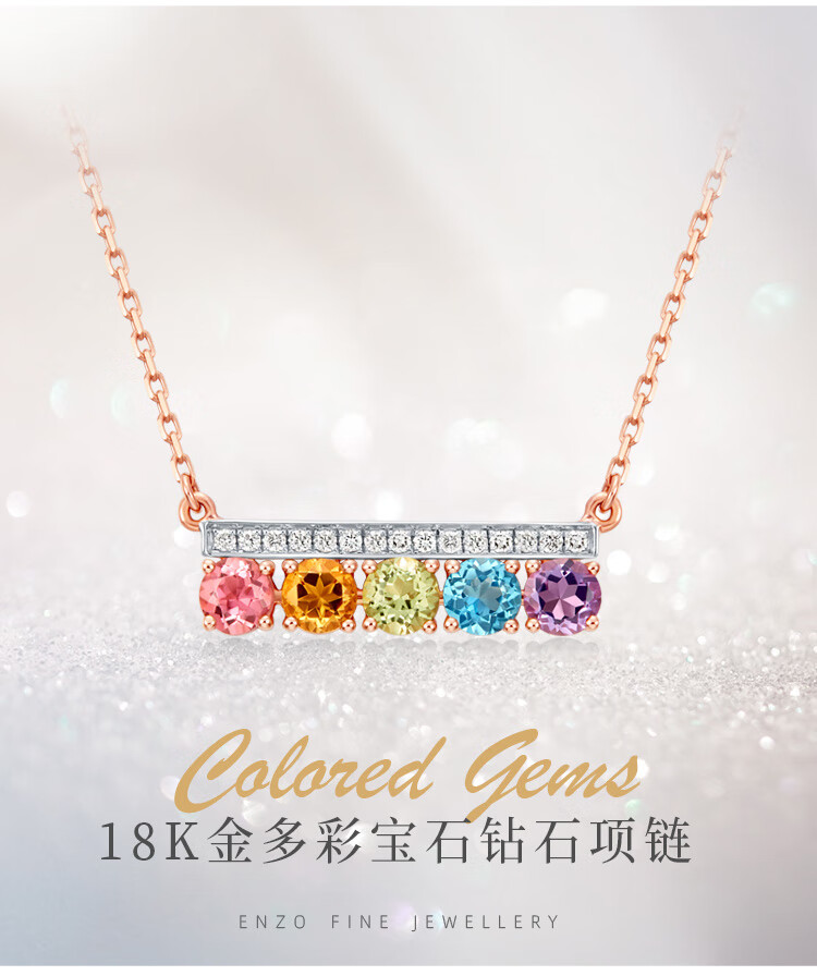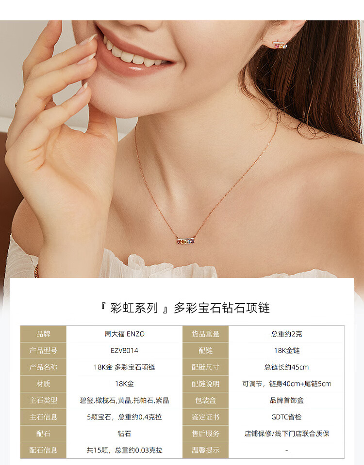 Chow Tai Fook ENZO Rainbow Series Rainbow Bridge 18K gold tourmaline diamond colored treasure necklace EZV8014 40cm