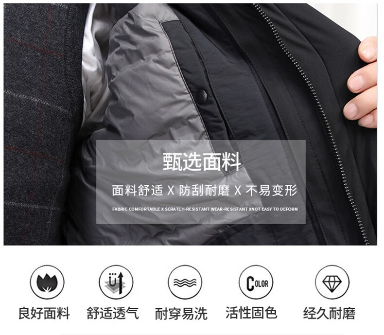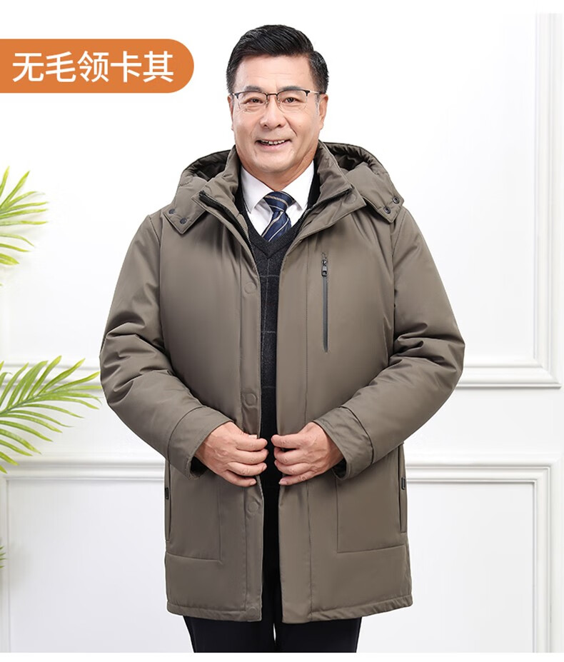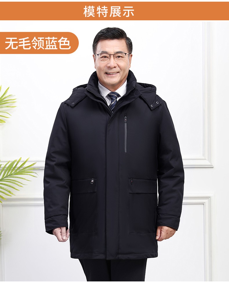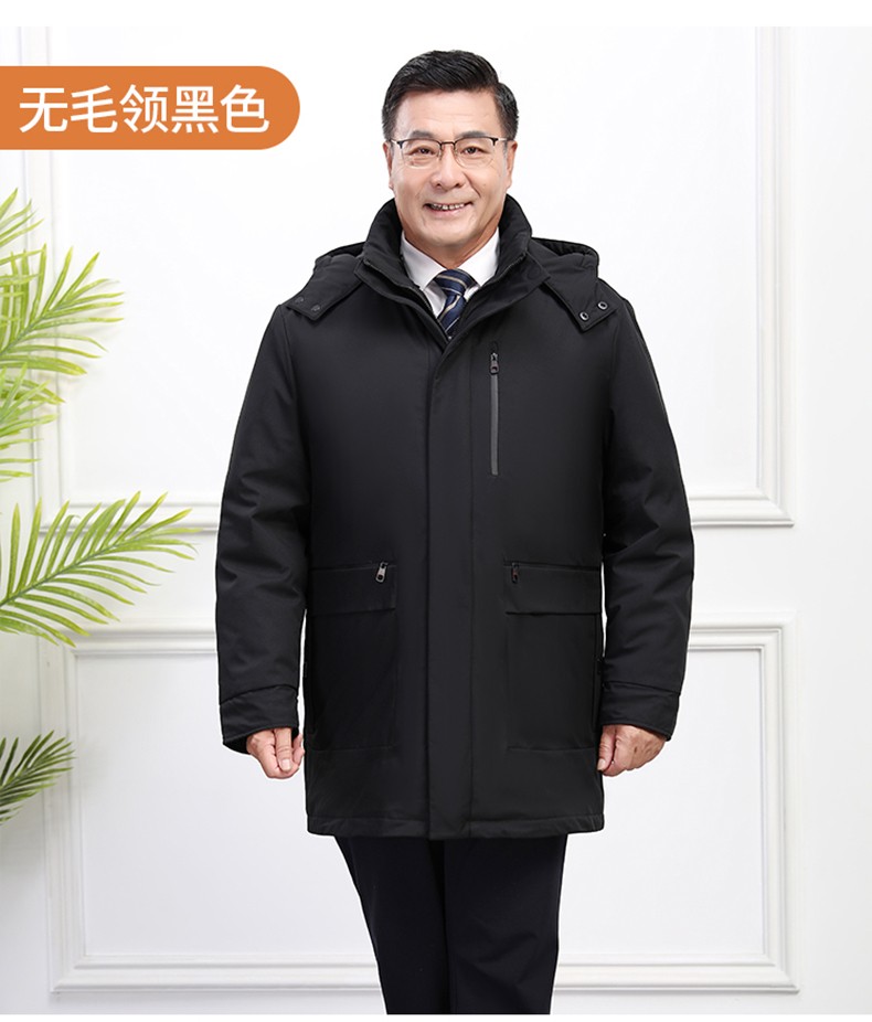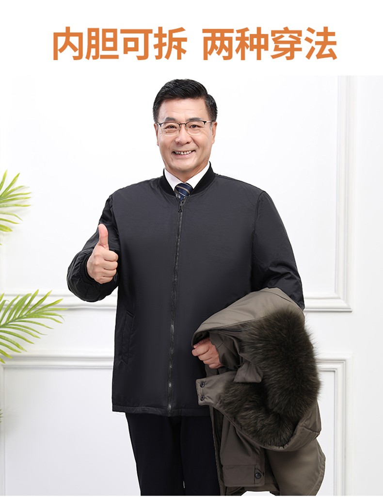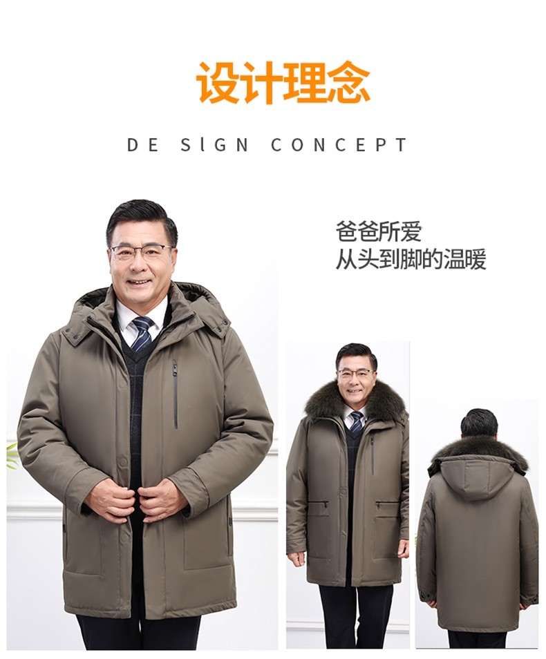 Classic car, middle-aged and elderly down jacket men's winter men's lively mid-length thickened dad winter coat with removable liner grandpa cold-proof and warm duck down jacket with fur collar-black 2XL/185