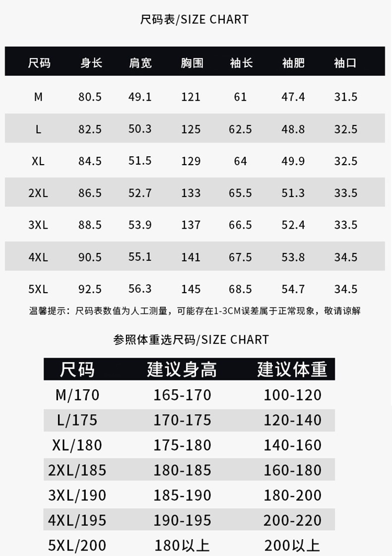 China (cm) 165 / 88-90 170 / 96-98 175 / 108-110 180 / 118-122 185 / 126-130