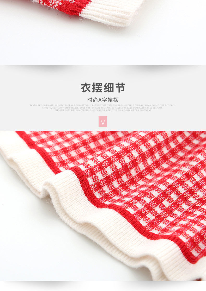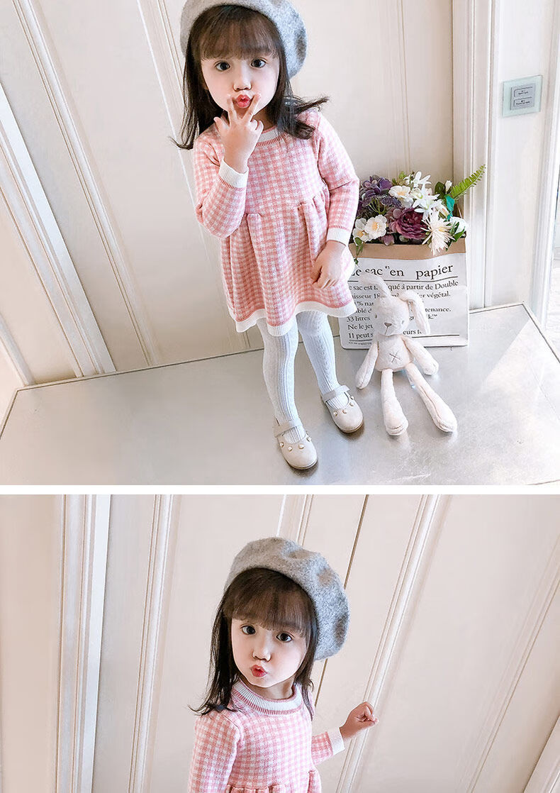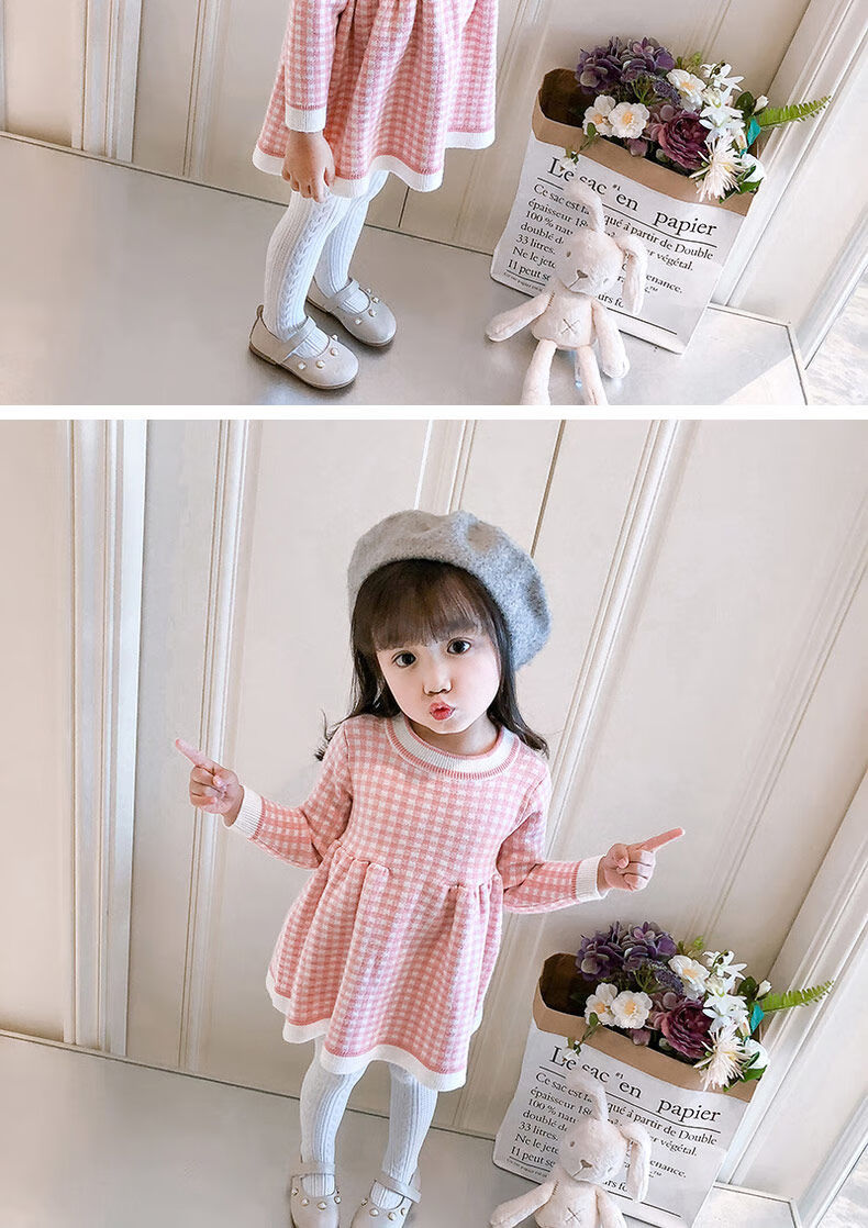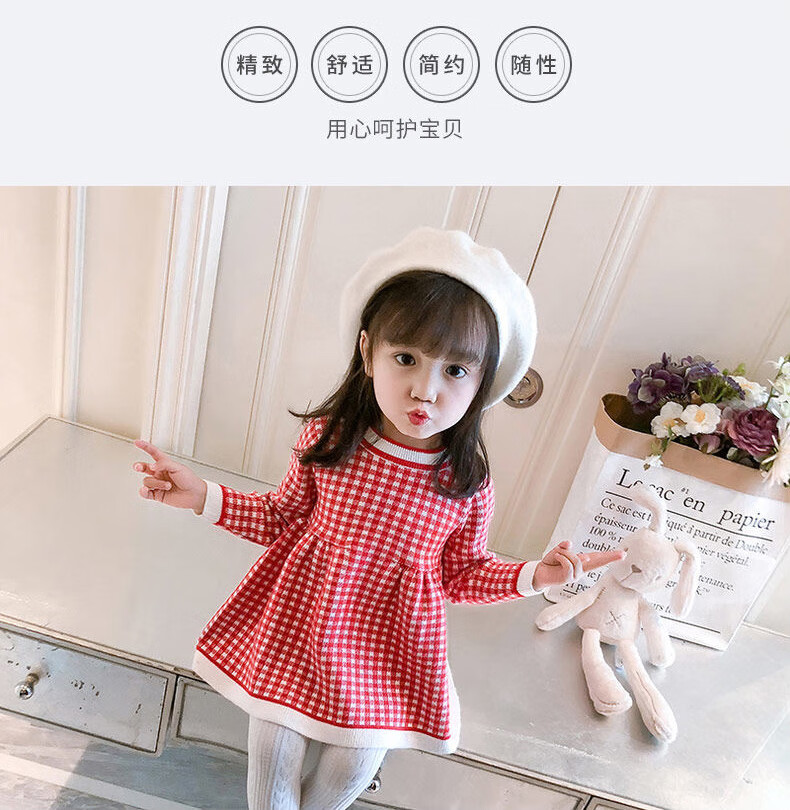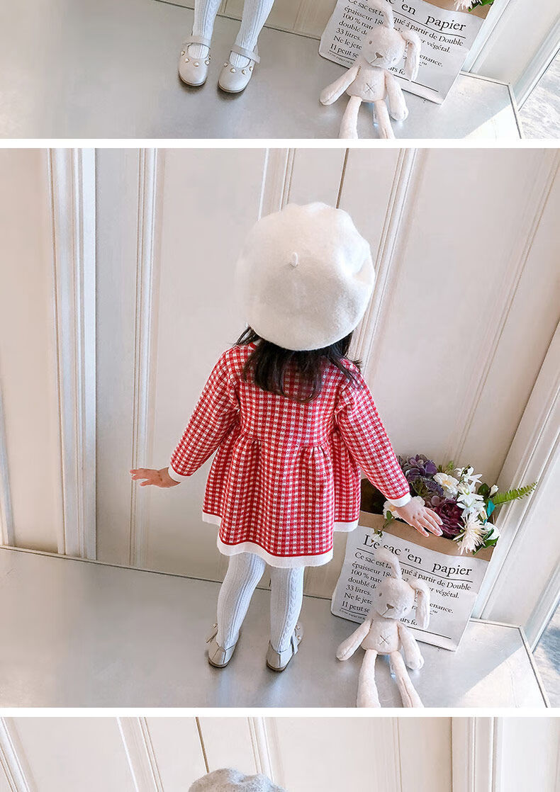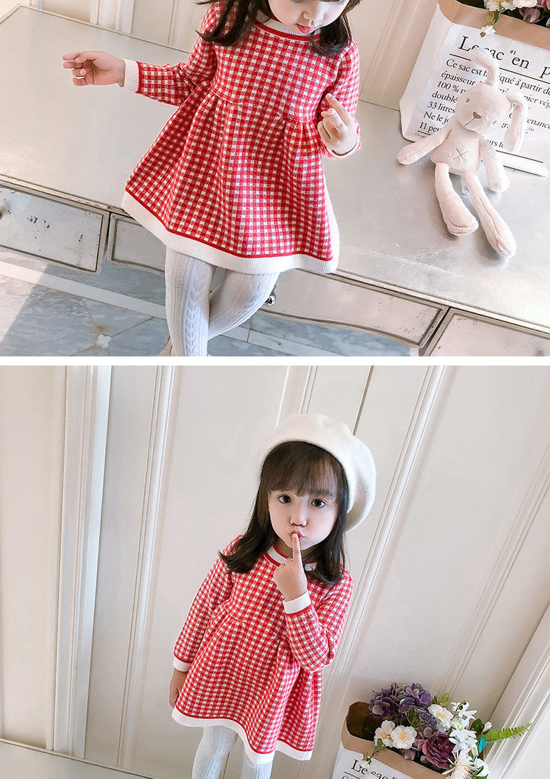 Radinka2025 new autumn and winter girls dress children's knitted plaid skirt baby girl stylish red princess dress TSB pink bow two-piece set without velvet 100 cm