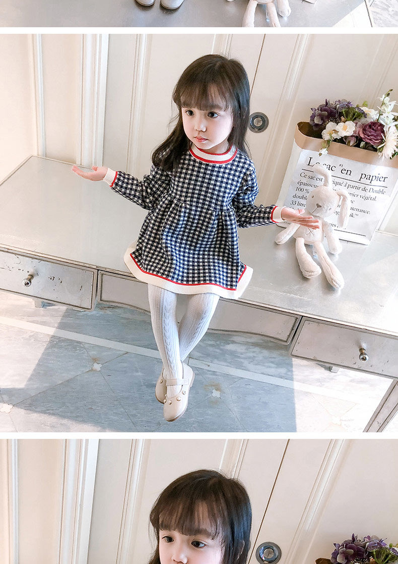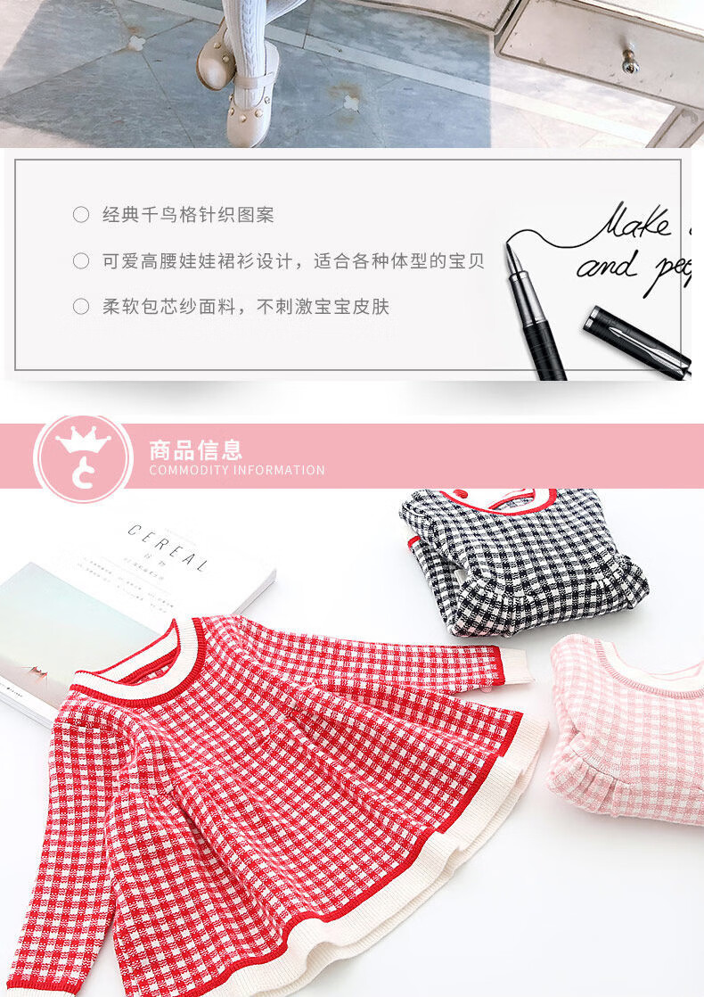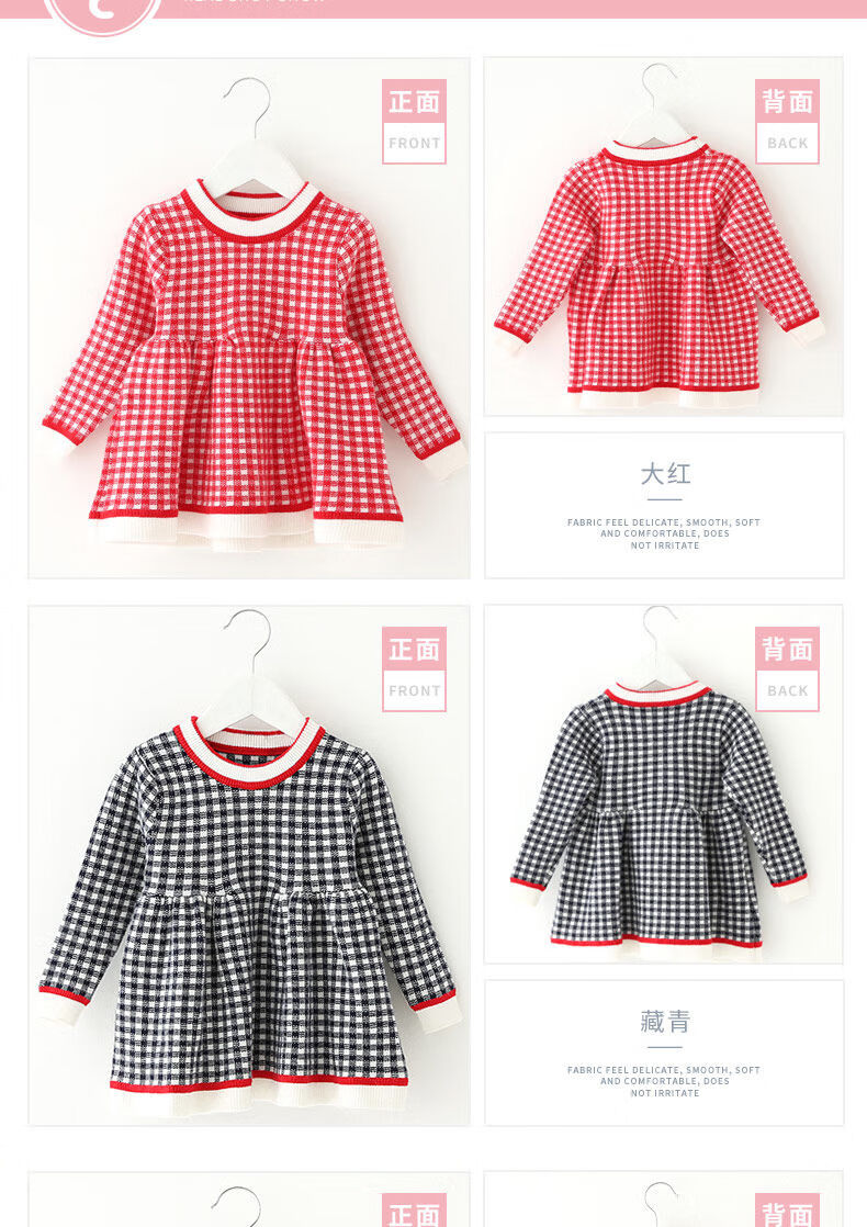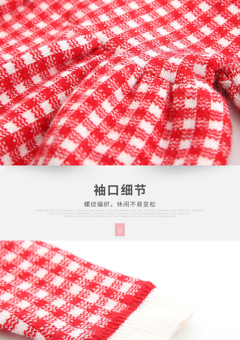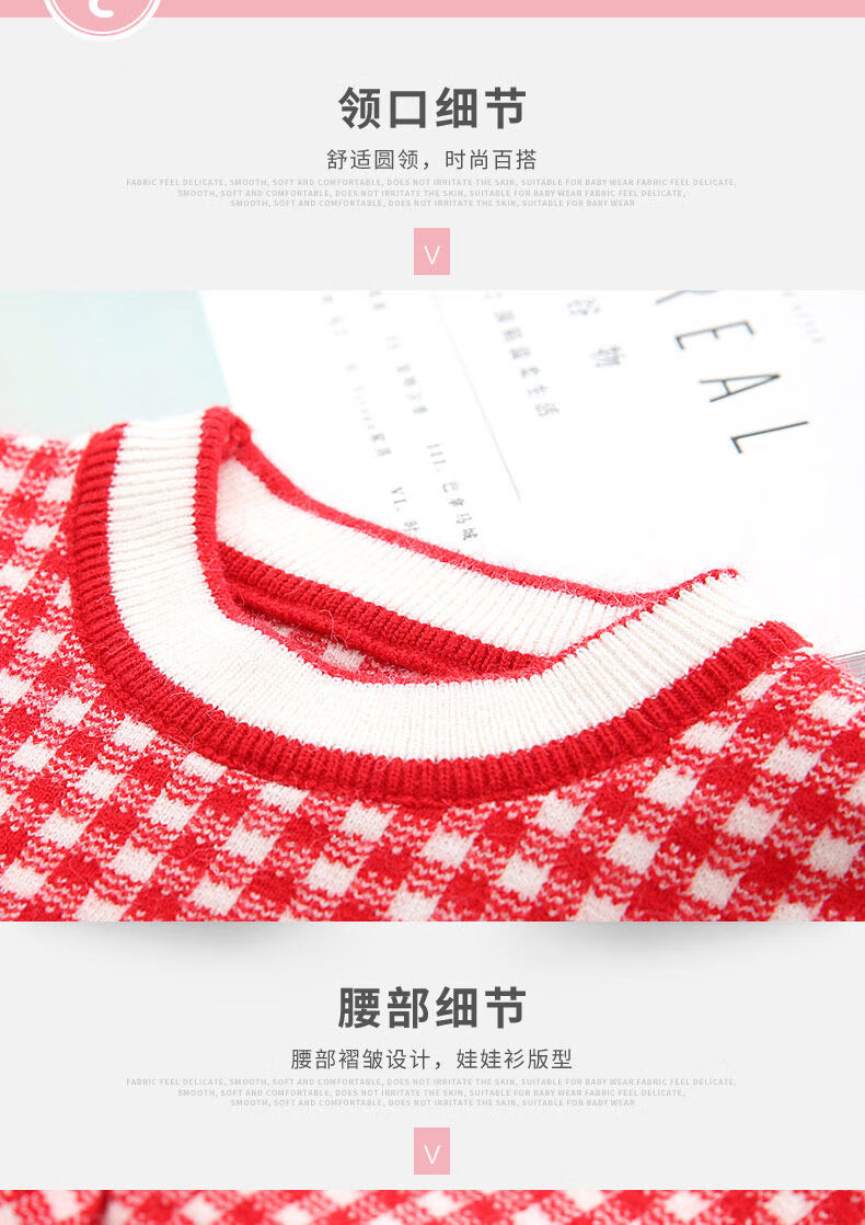 Radinka2025 new autumn and winter girls dress children's knitted plaid skirt baby girl stylish red princess dress TSB pink bow two-piece set without velvet 100 cm