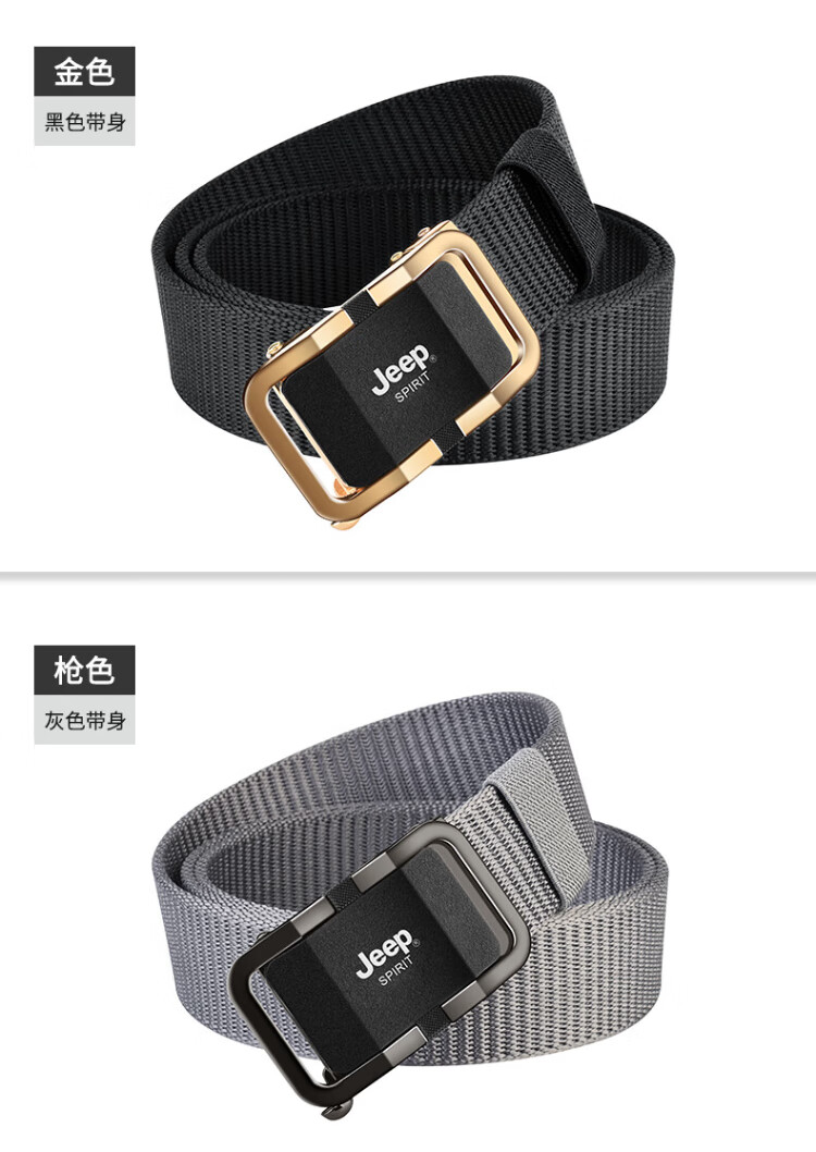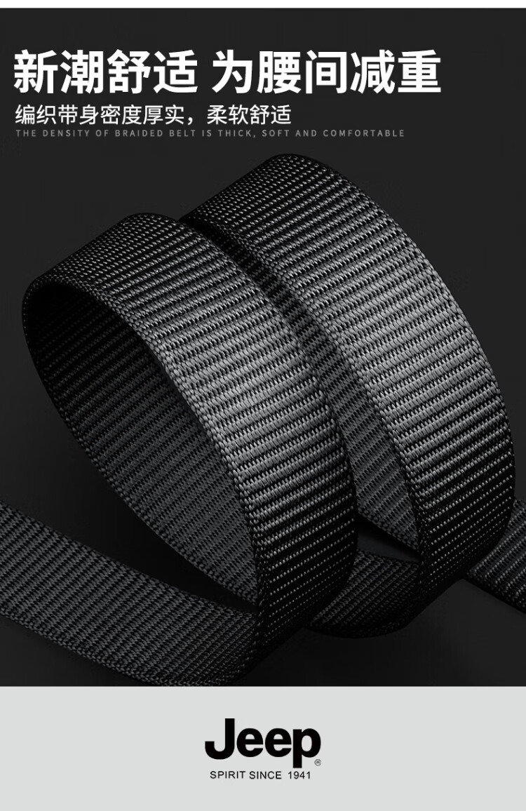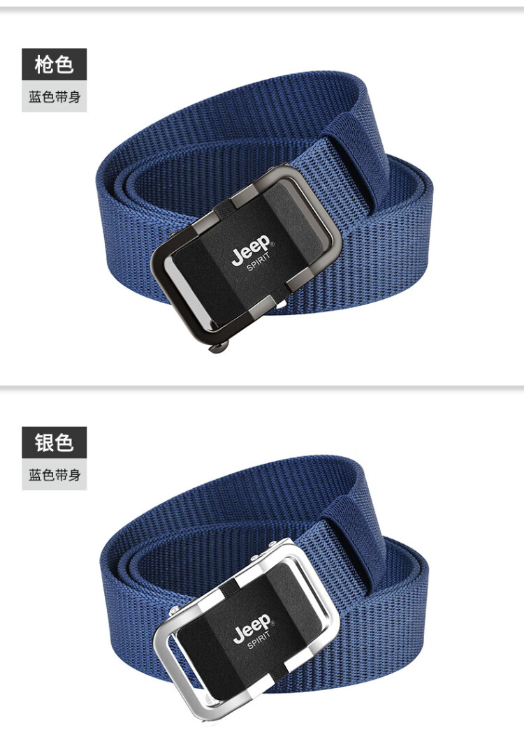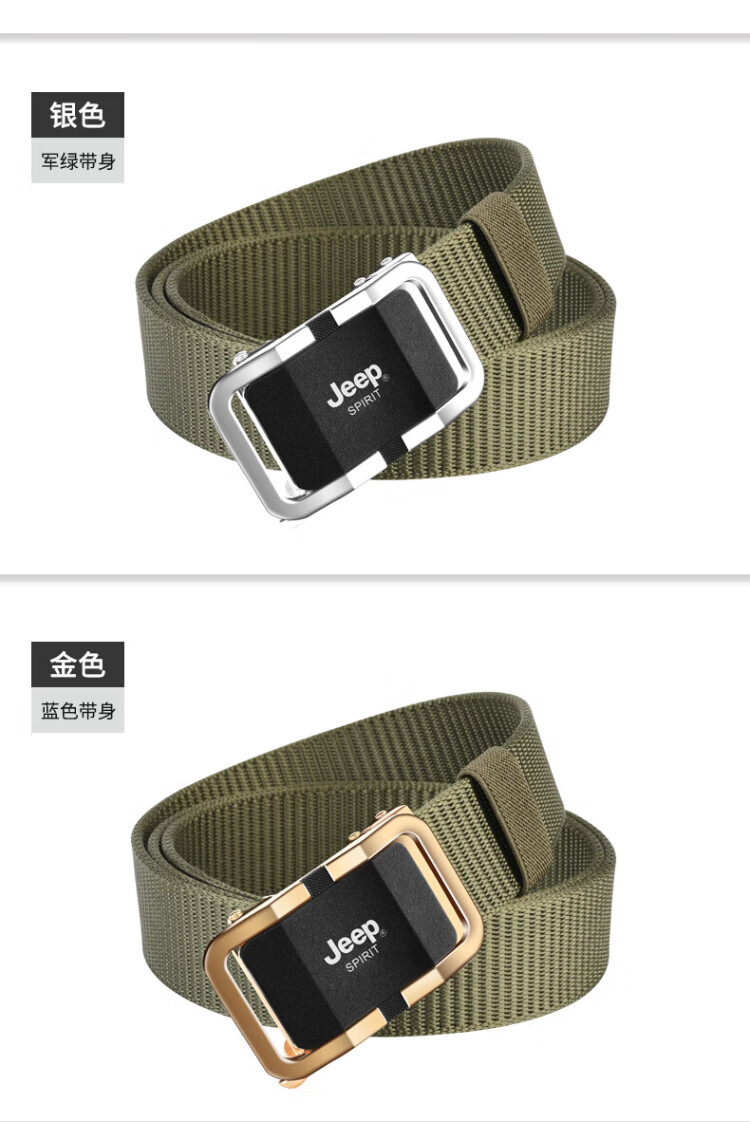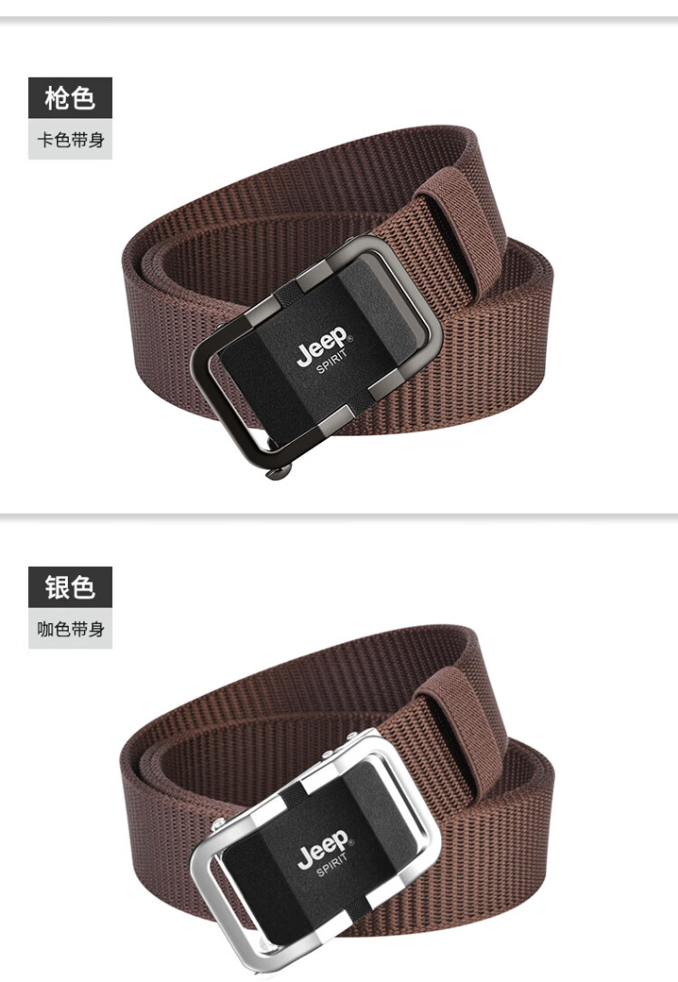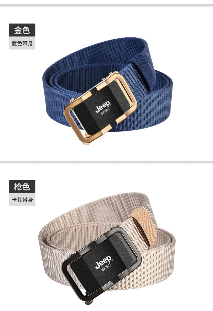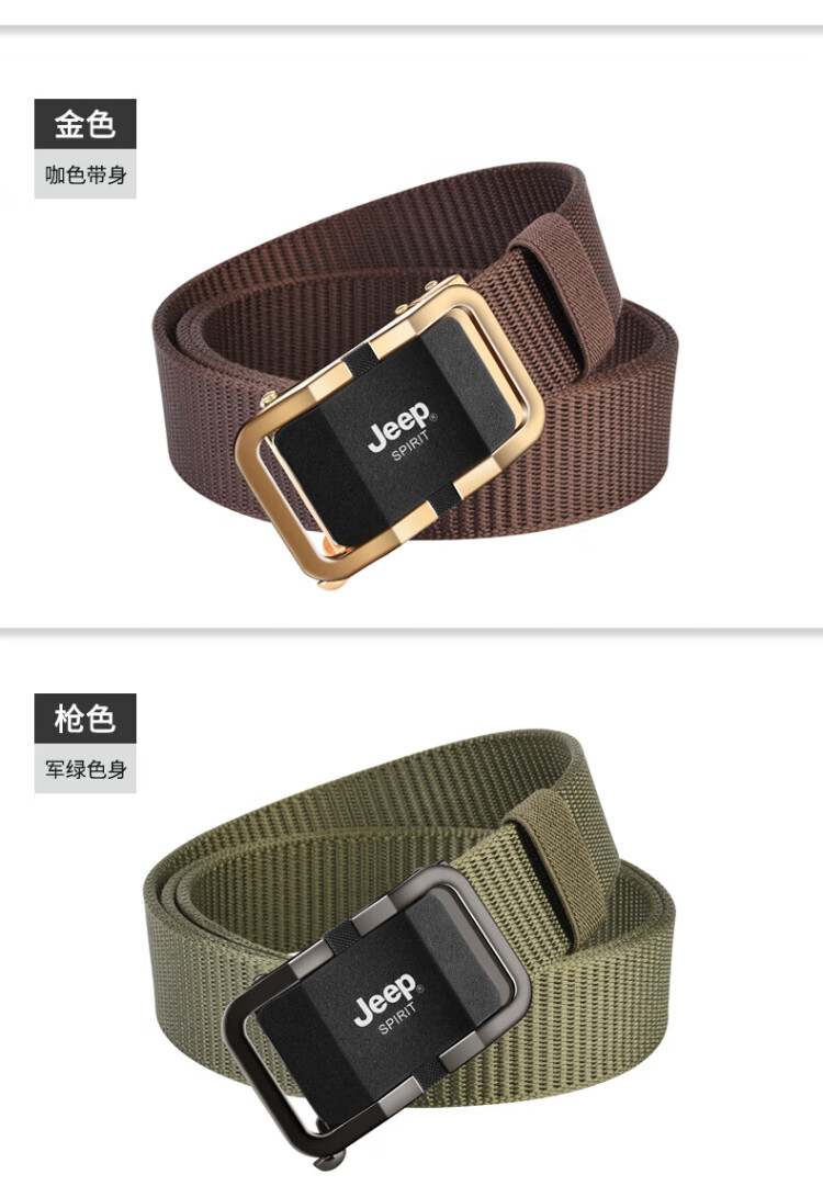 JEEP SPIRIT canvas belt for young men, automatic buckle, casual woven tactical belt, young man belt, trendy pants belt, military training, gun buckle - black belt 120cm
