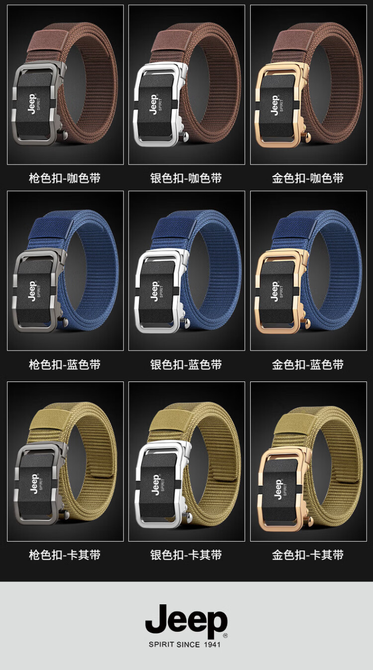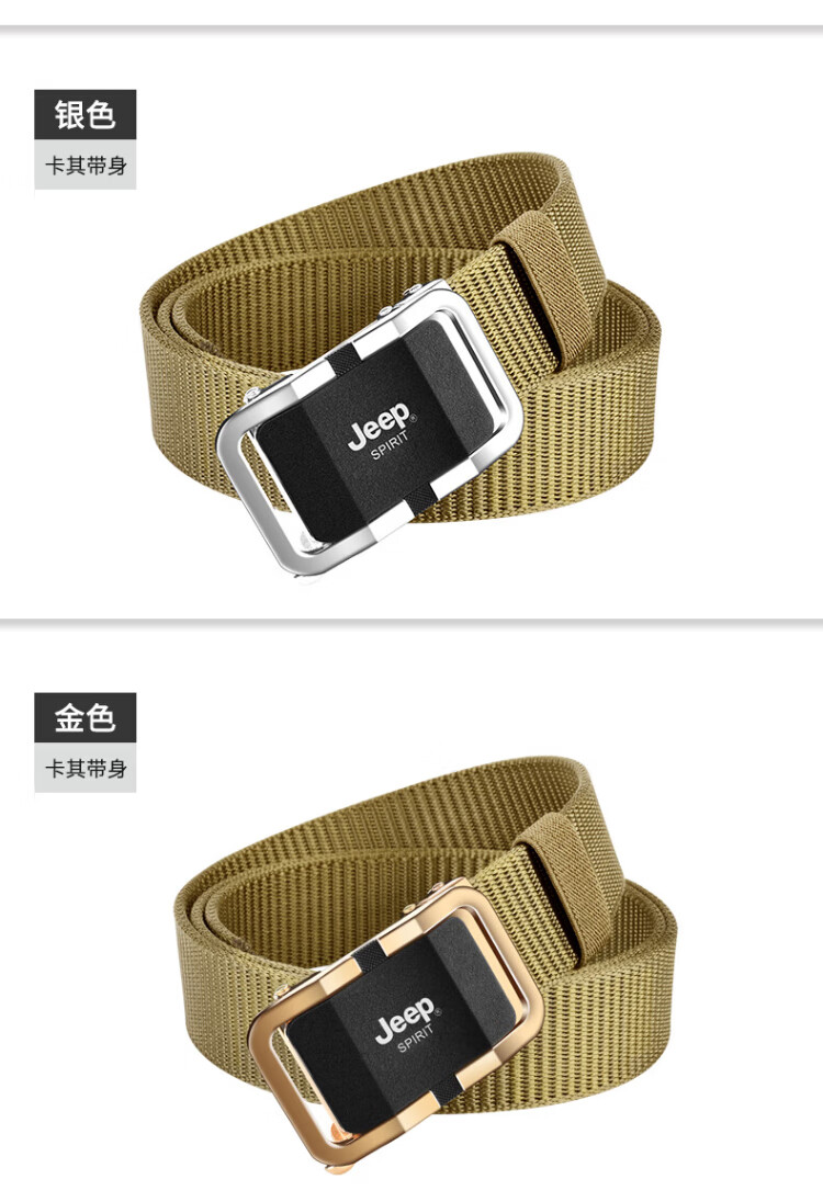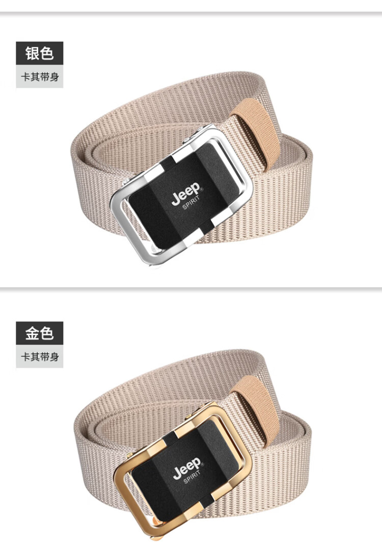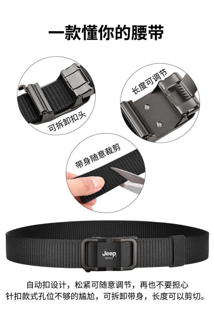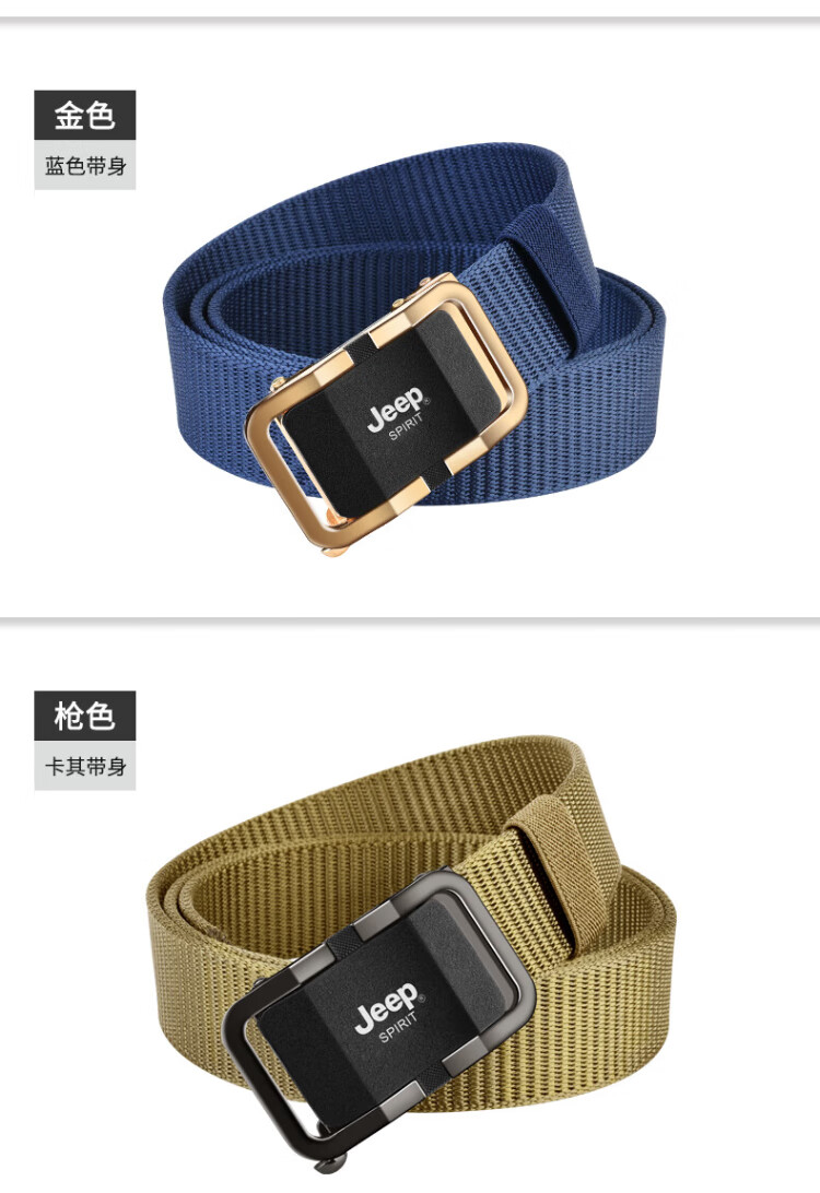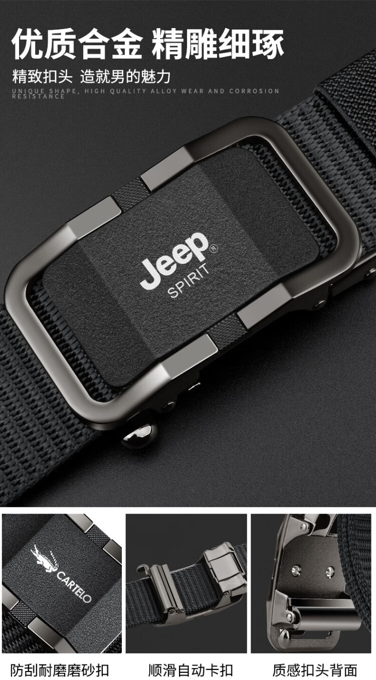 JEEP SPIRIT canvas belt for young men, automatic buckle, casual woven tactical belt, young man belt, trendy pants belt, military training, gun buckle - black belt 120cm