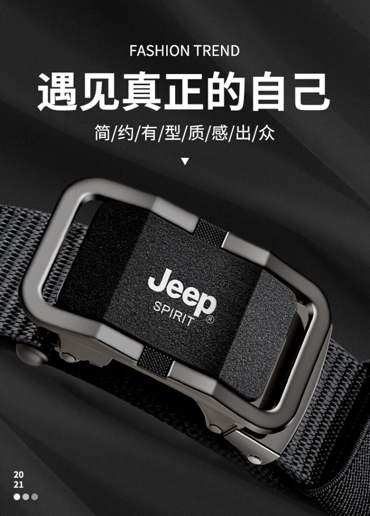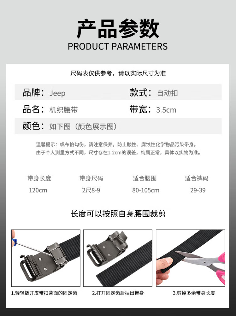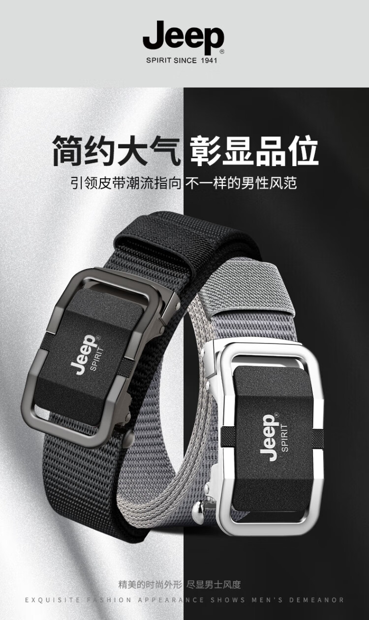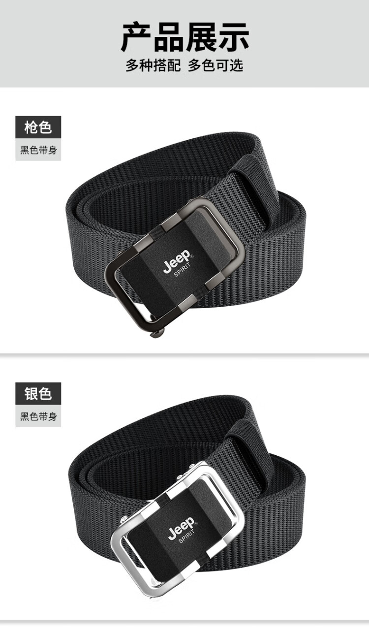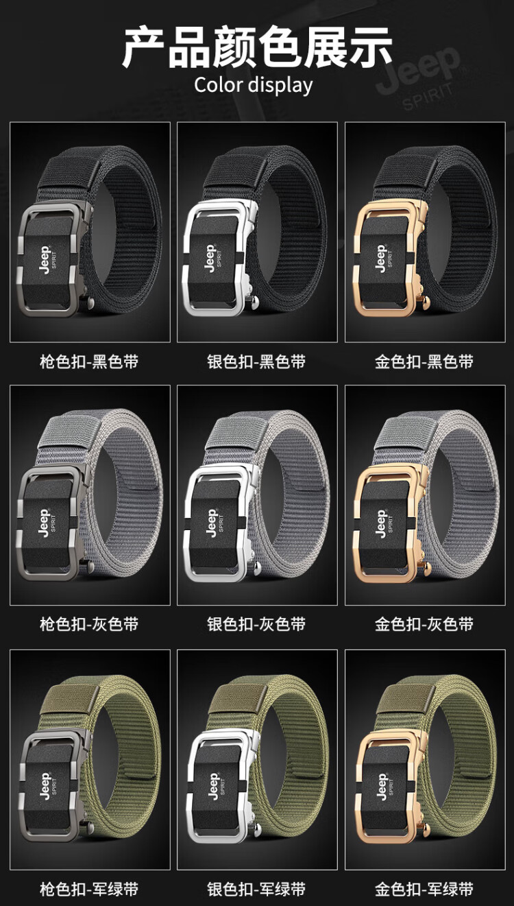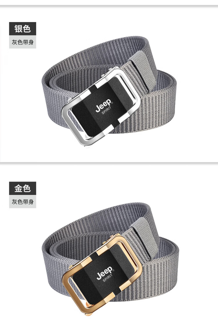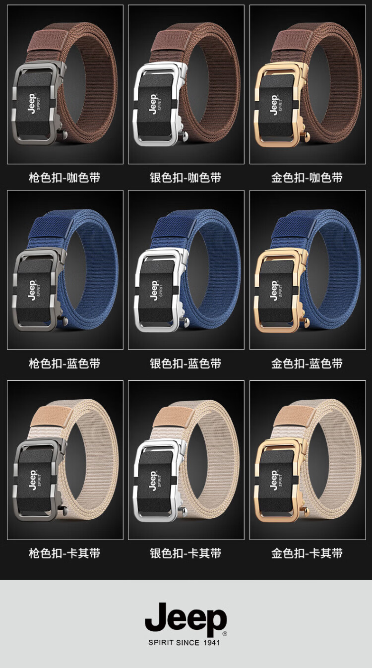 JEEP SPIRIT canvas belt for young men, automatic buckle, casual woven tactical belt, young man belt, trendy pants belt, military training, gun buckle - black belt 120cm