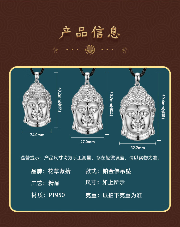 Flowers and grass covered platinum Buddha head pendant for men pt950 platinum animal year pendant pt999 Tathagata Buddha necklace can be customized Small platinum Buddha pendant about 17.7g