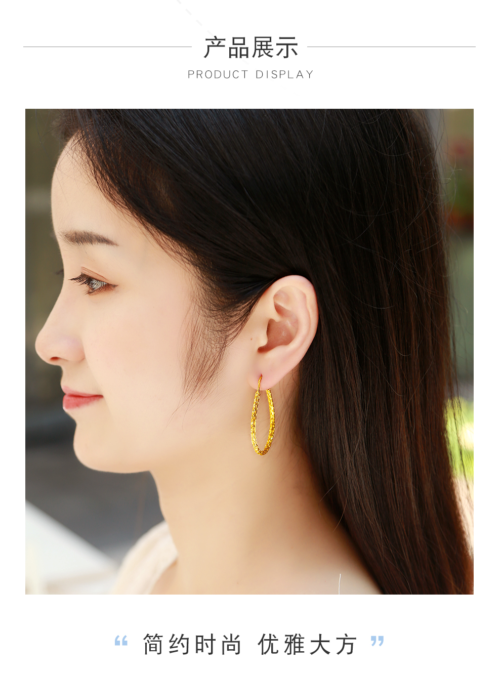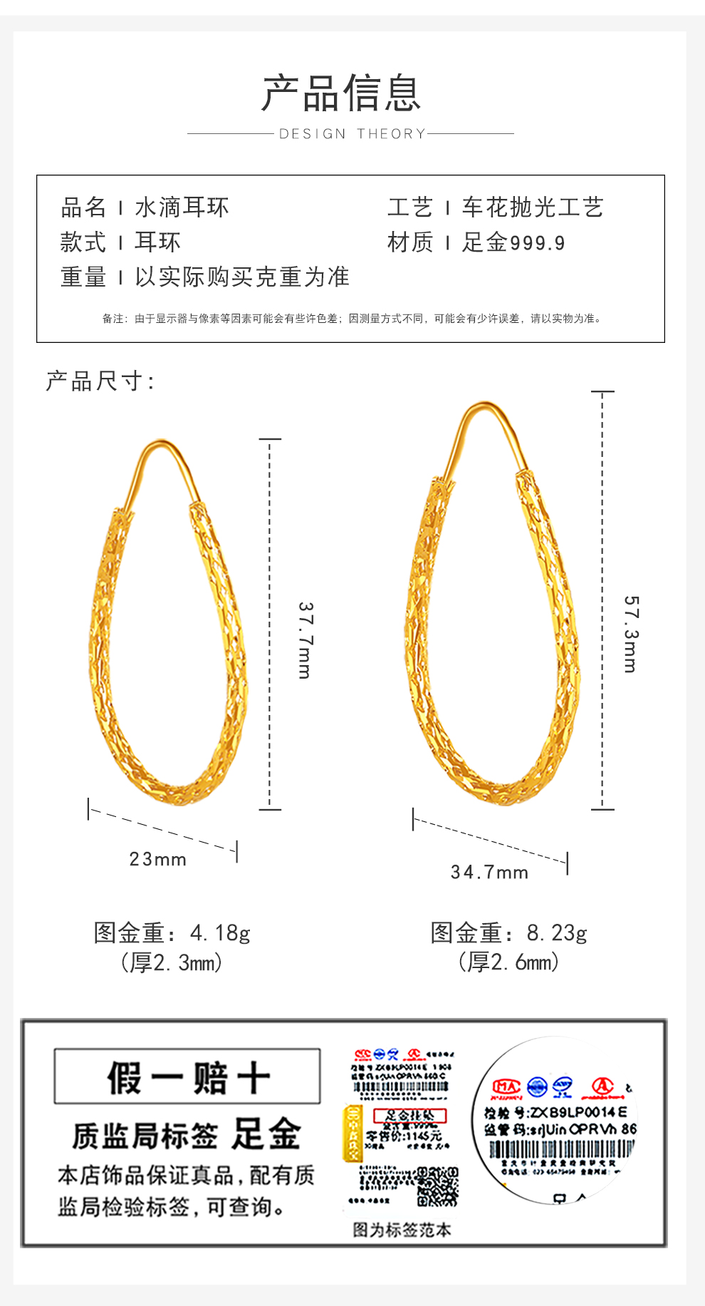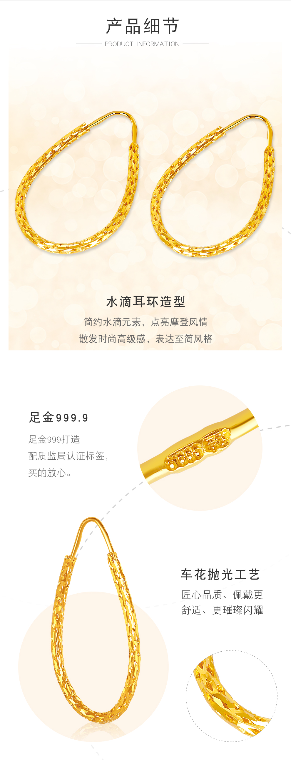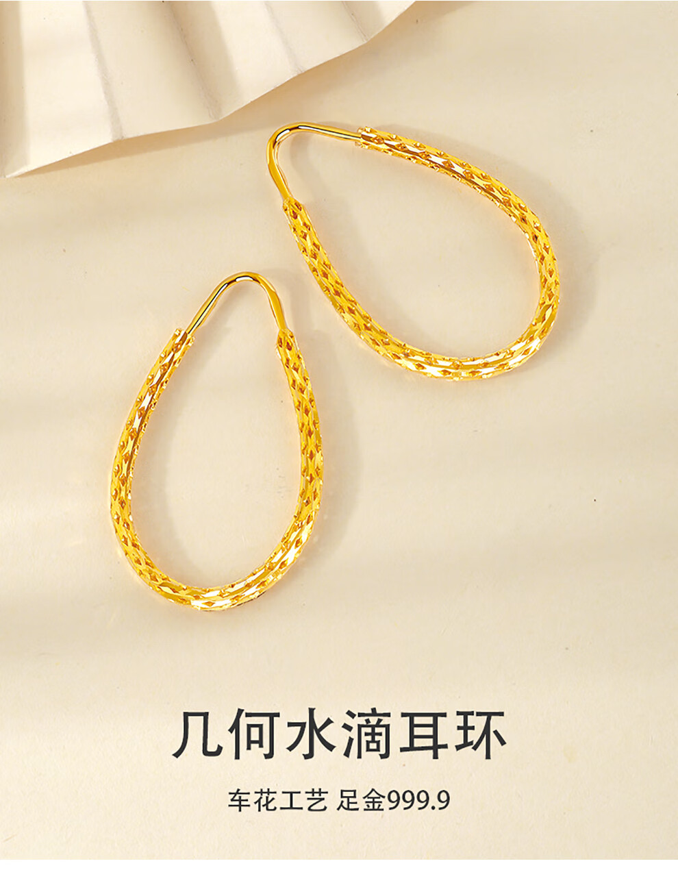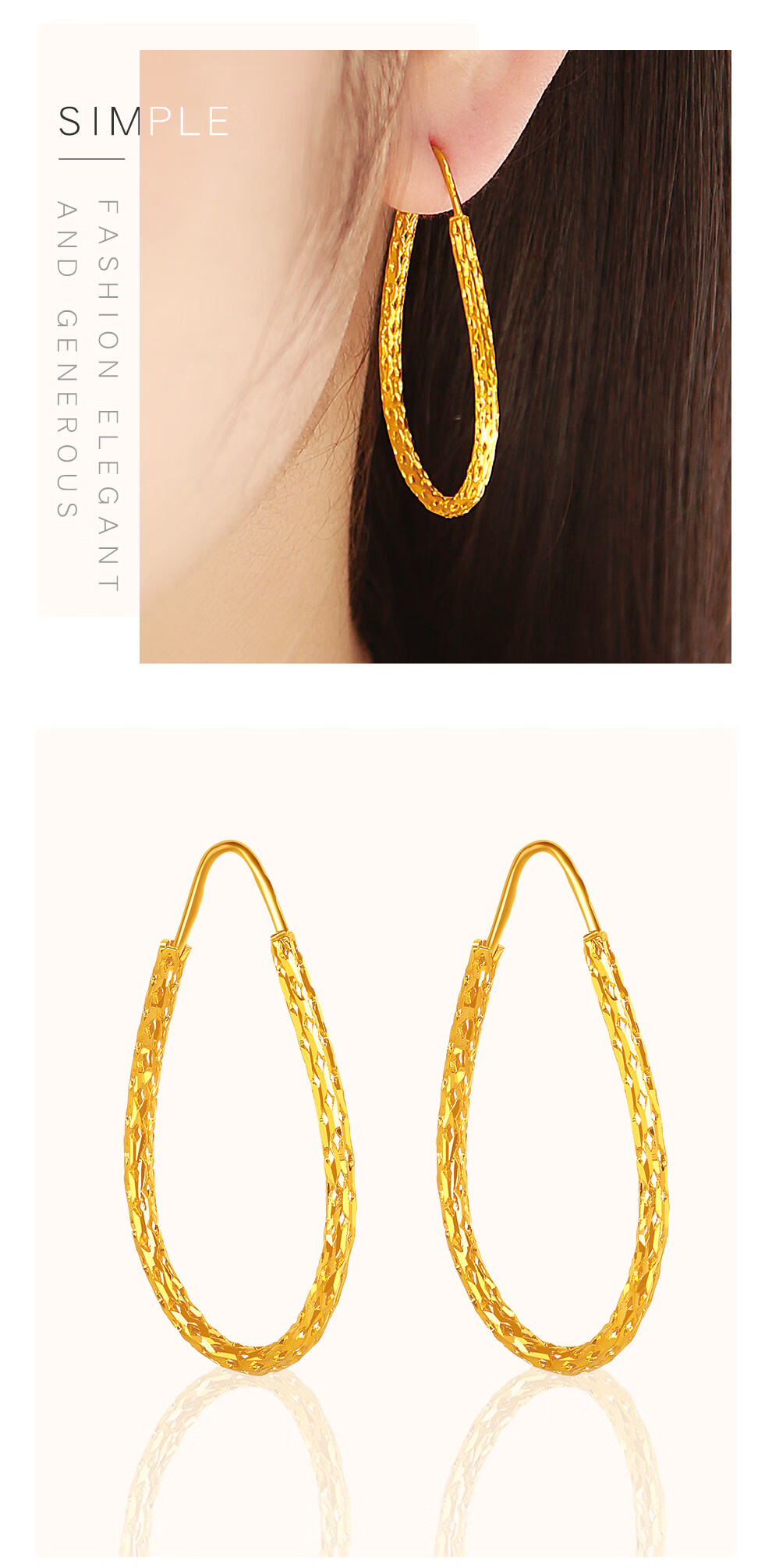 Zhongxin Jewelry Gold Water Drop Earrings Women's Pure Gold 999.9 Large Circle Gold Earrings Fashion Geometric Earrings Women's Spot 7g
