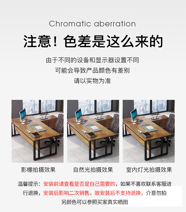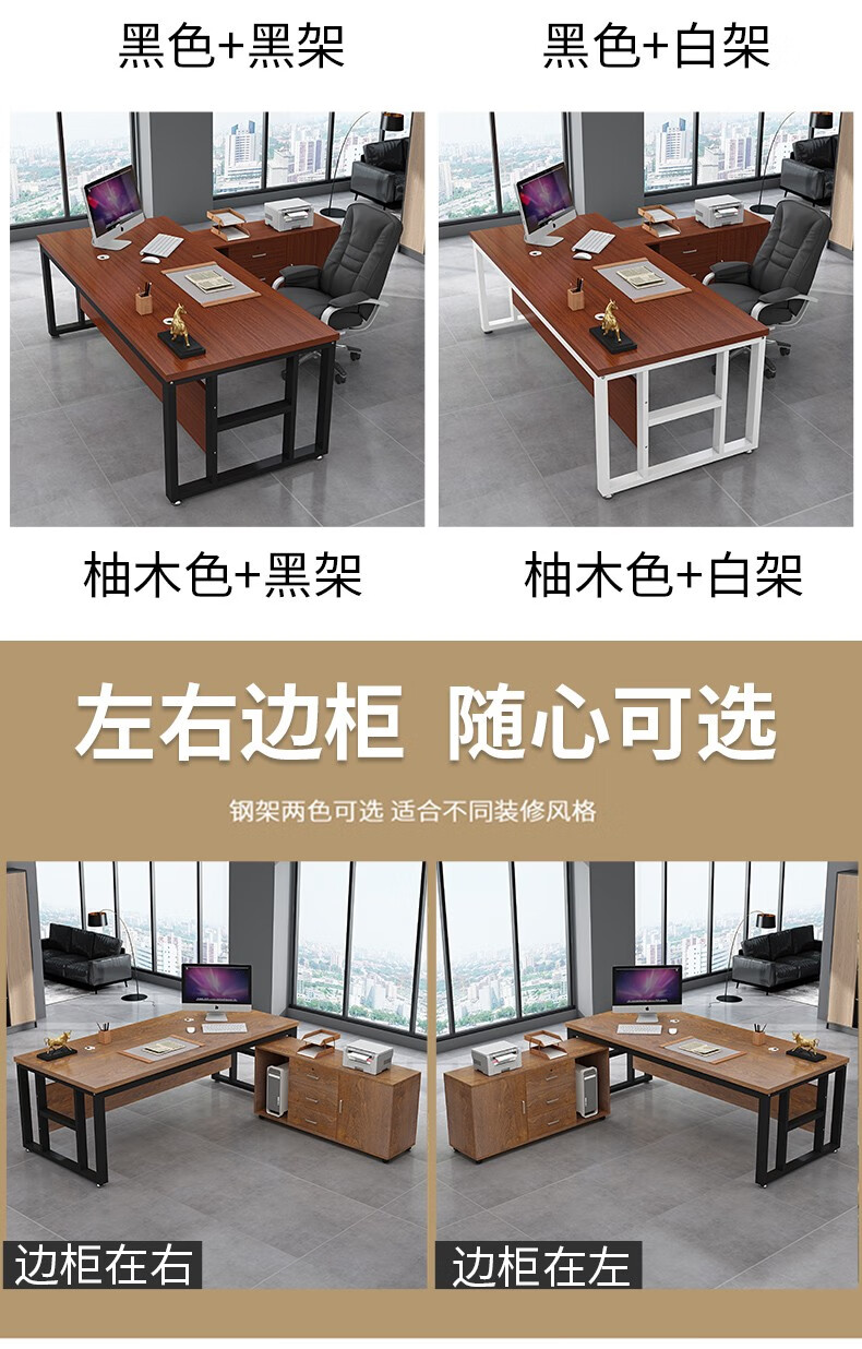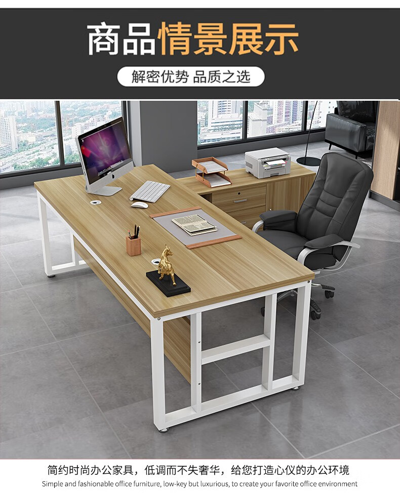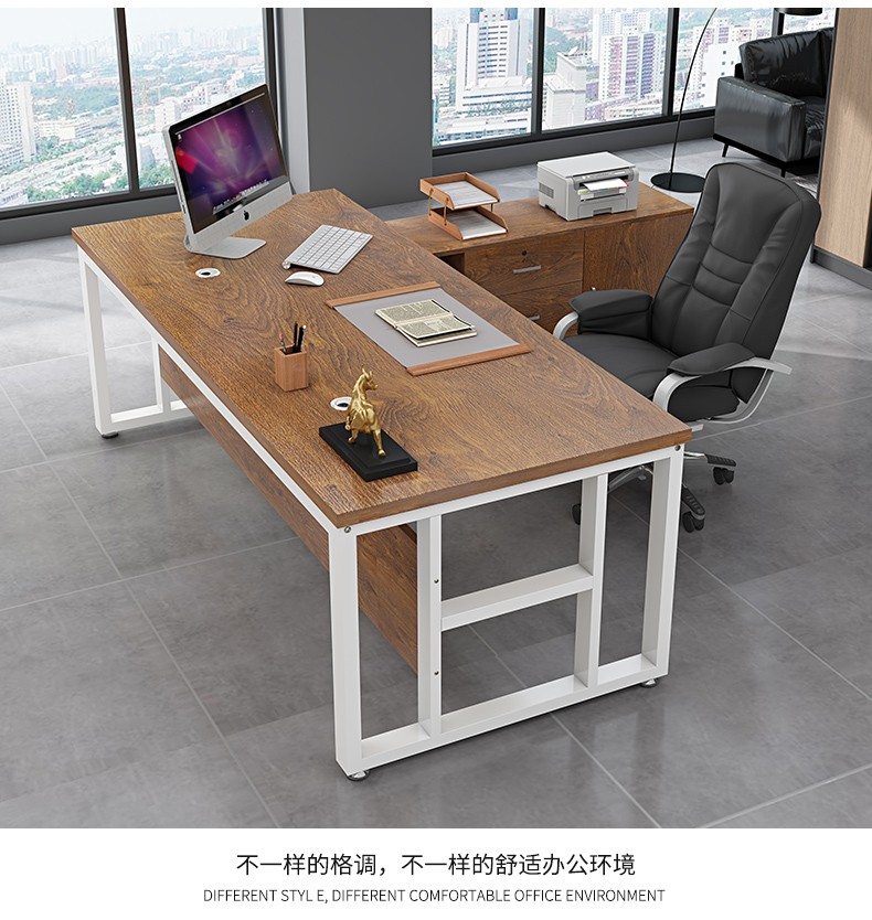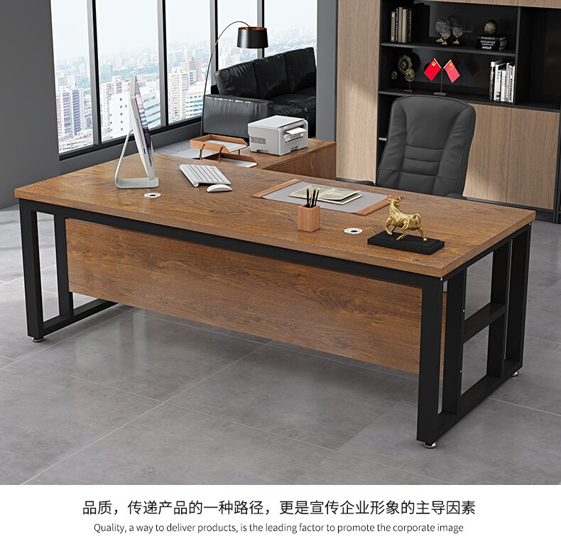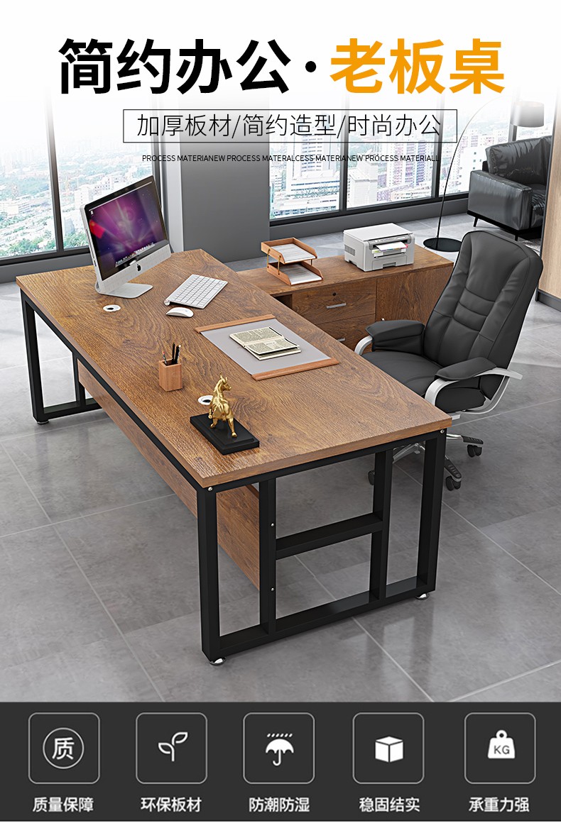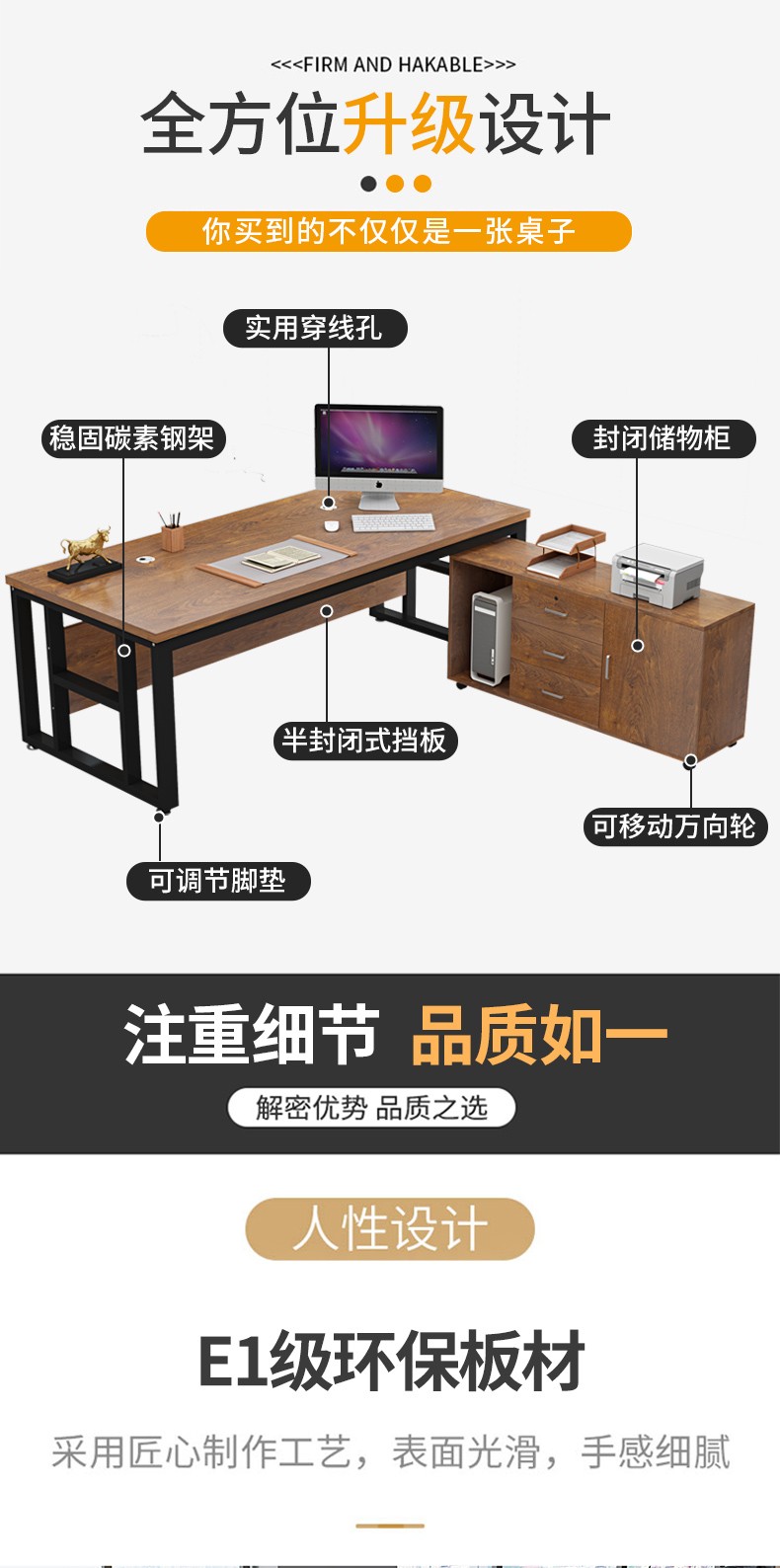 Rusen Office Boss Desk Manager Desk Leadership Office Desk and Chair Combination Modern Simple Single Computer Desk Black Frame + Golden Oak Color 160*60 Table + Side Cabinet