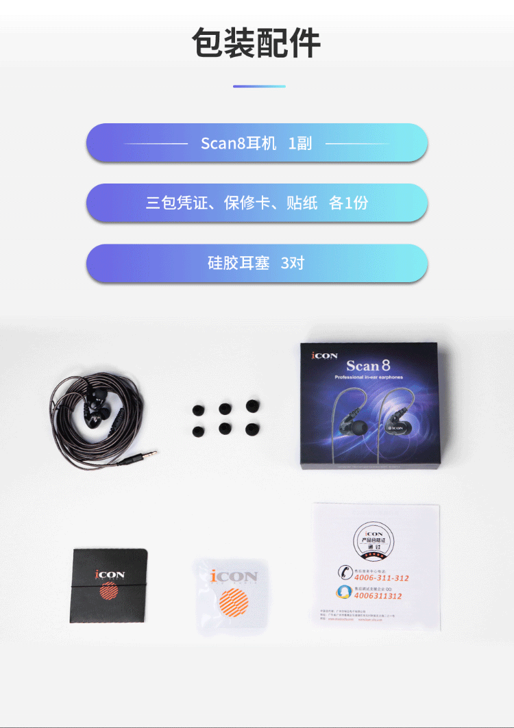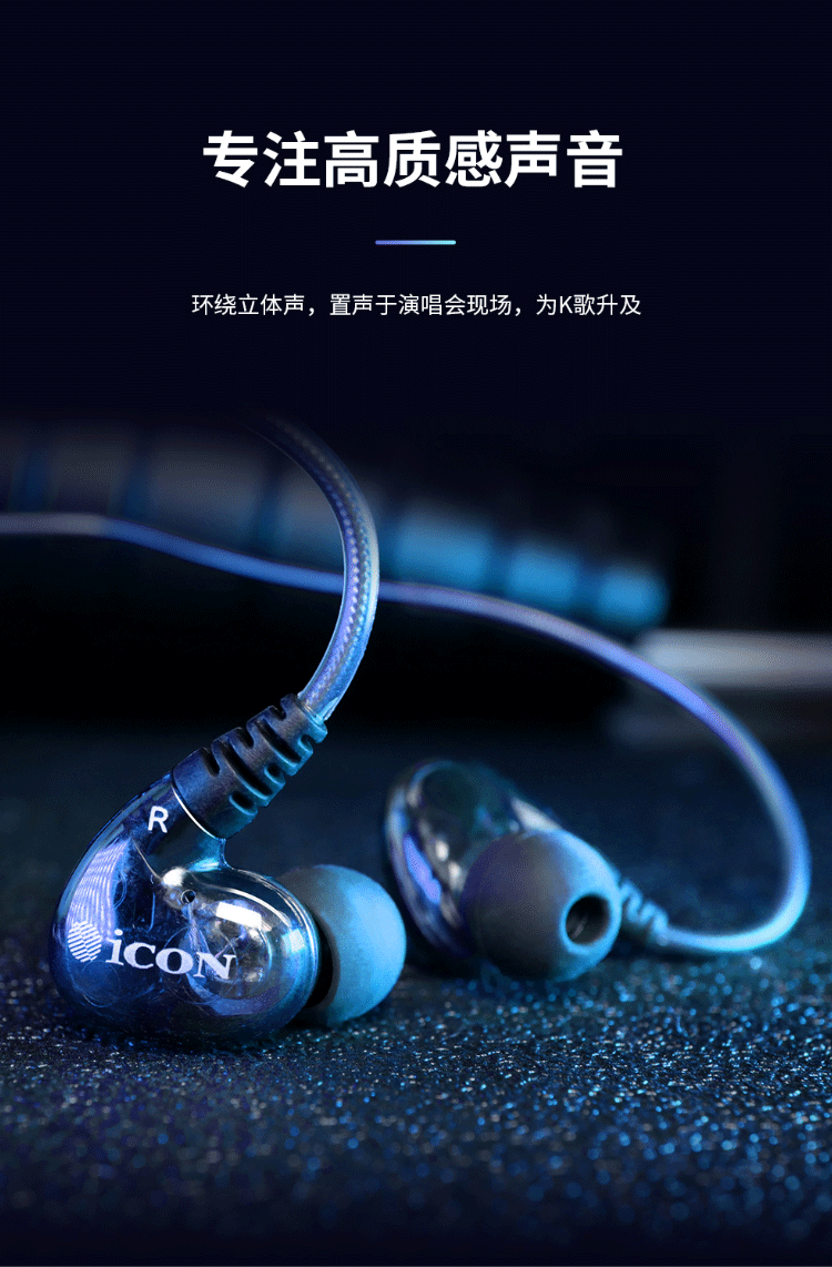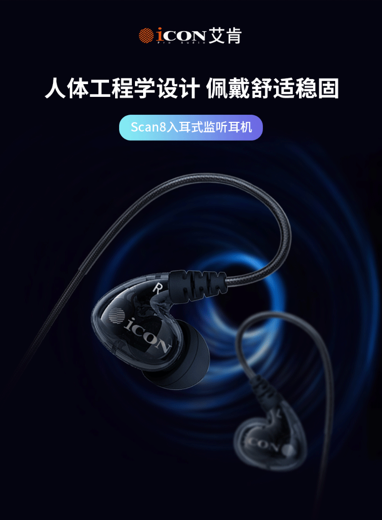 ICON iCON Scan8 in-ear monitoring headphones medium and low frequency wired earbuds live broadcast anchor karaoke sound card 3 meters long monitoring headphones iCON Aiken monitoring headphones
