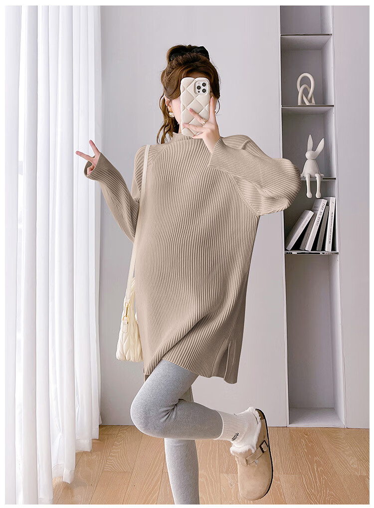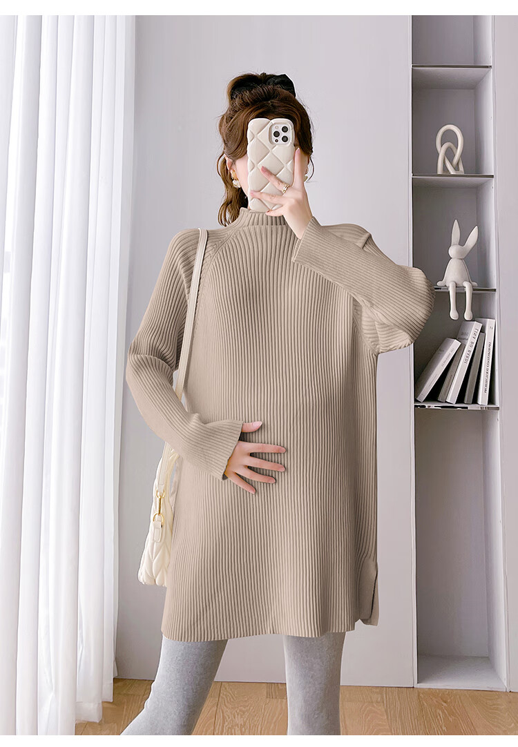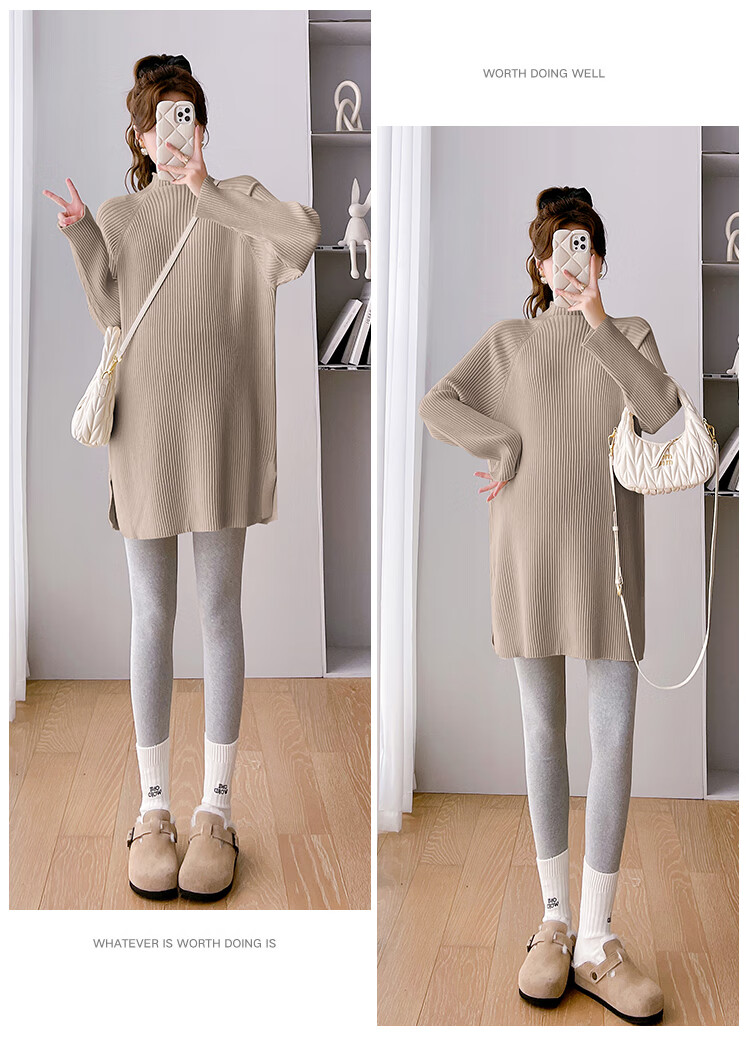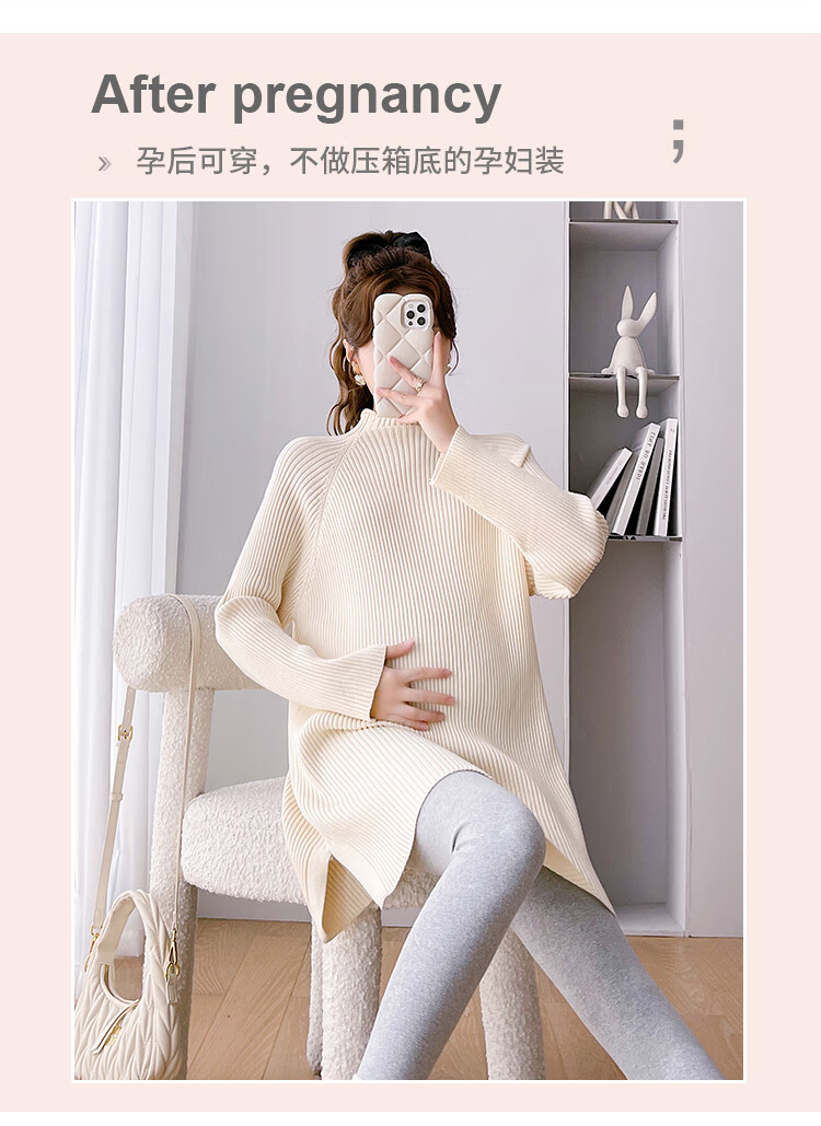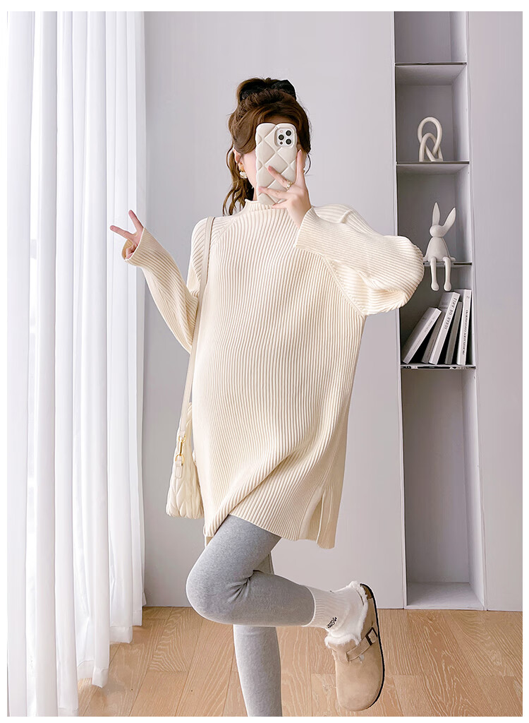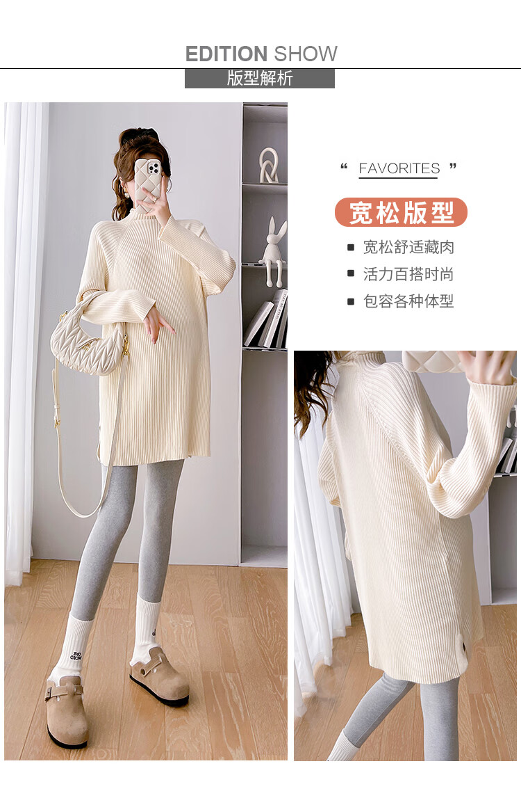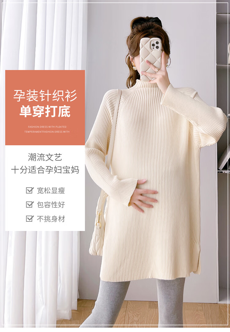 Ran Qiqi maternity wear, winter dress, fashionable going out top, fashionable mom personality, Internet celebrity belly-covering autumn and winter sweater, winter style, apricot XL