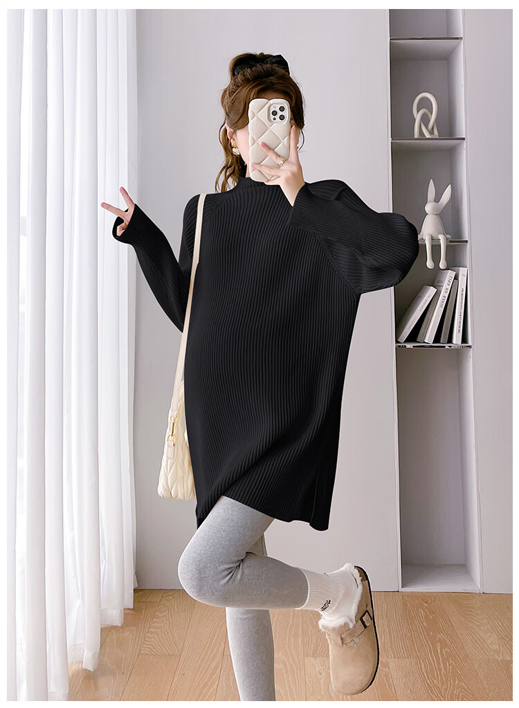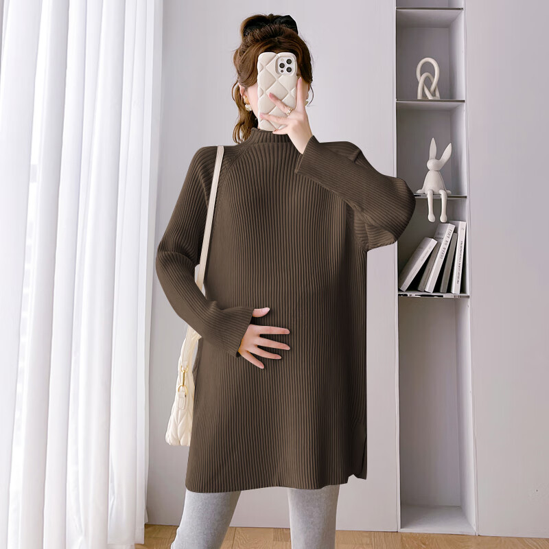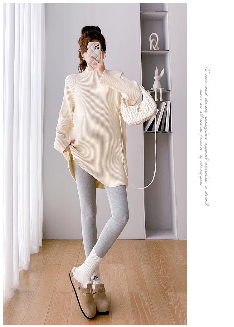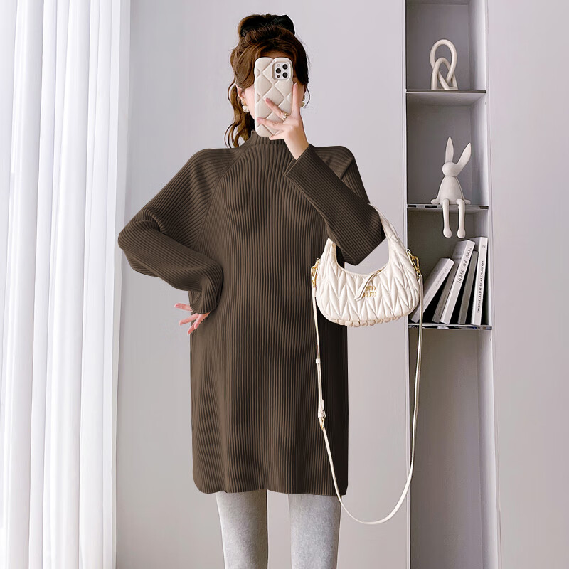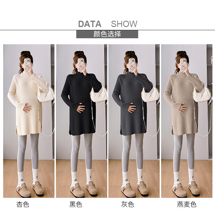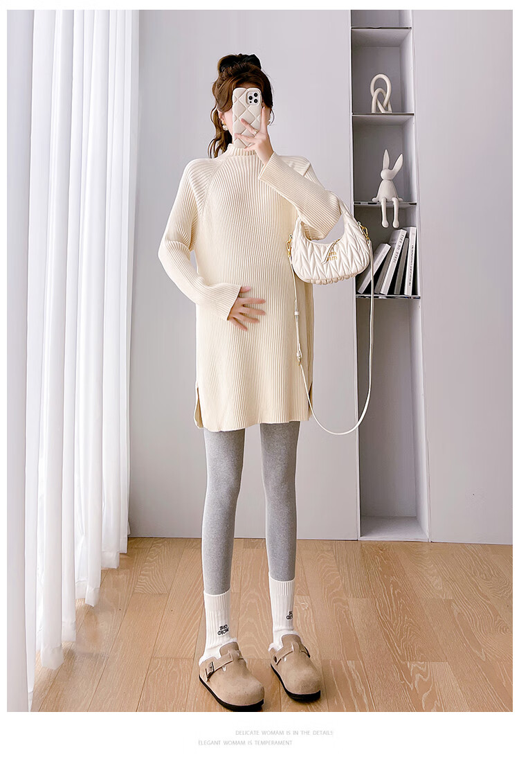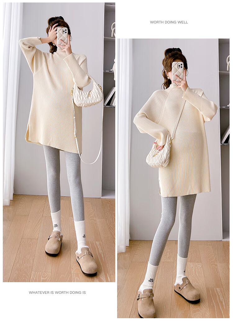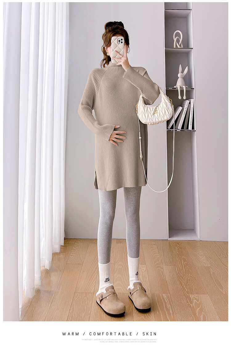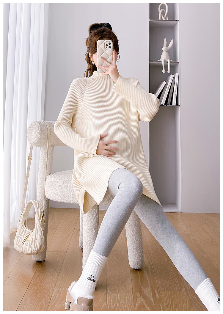 Ran Qiqi maternity wear, winter dress, fashionable going out top, fashionable mom personality, Internet celebrity belly-covering autumn and winter sweater, winter style, apricot XL