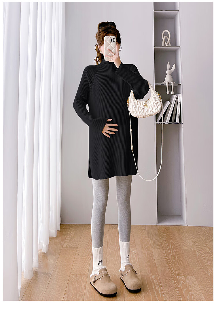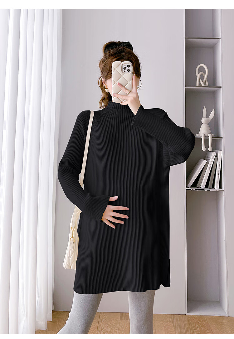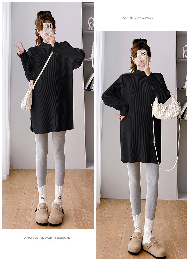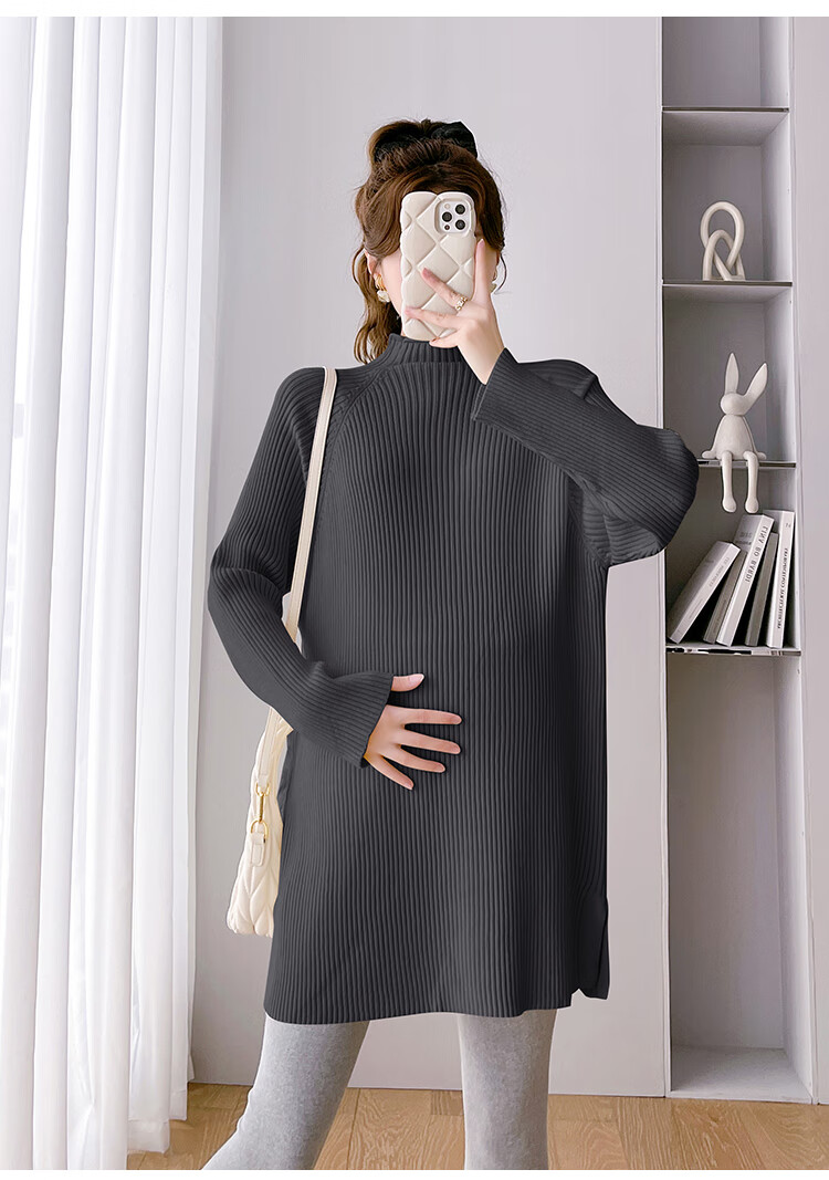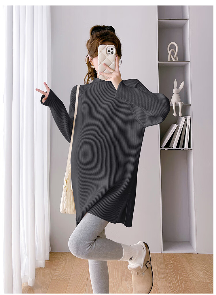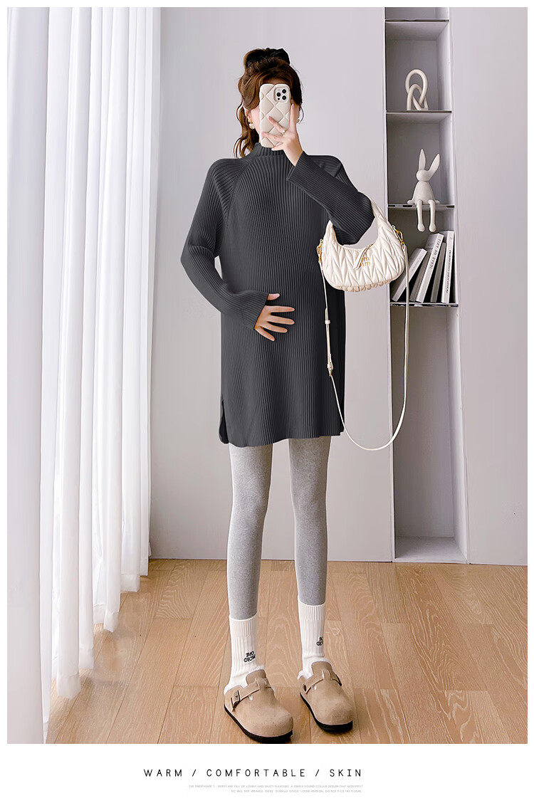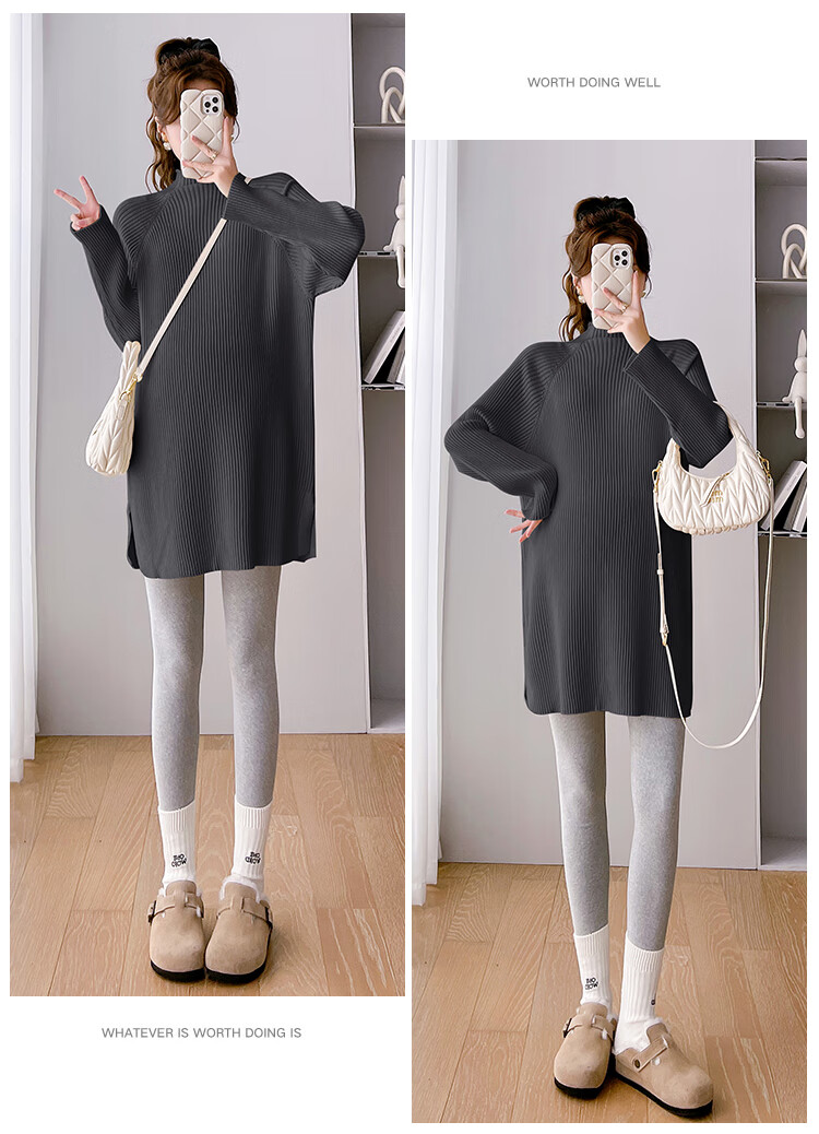 Ran Qiqi maternity wear, winter dress, fashionable going out top, fashionable mom personality, Internet celebrity belly-covering autumn and winter sweater, winter style, apricot XL