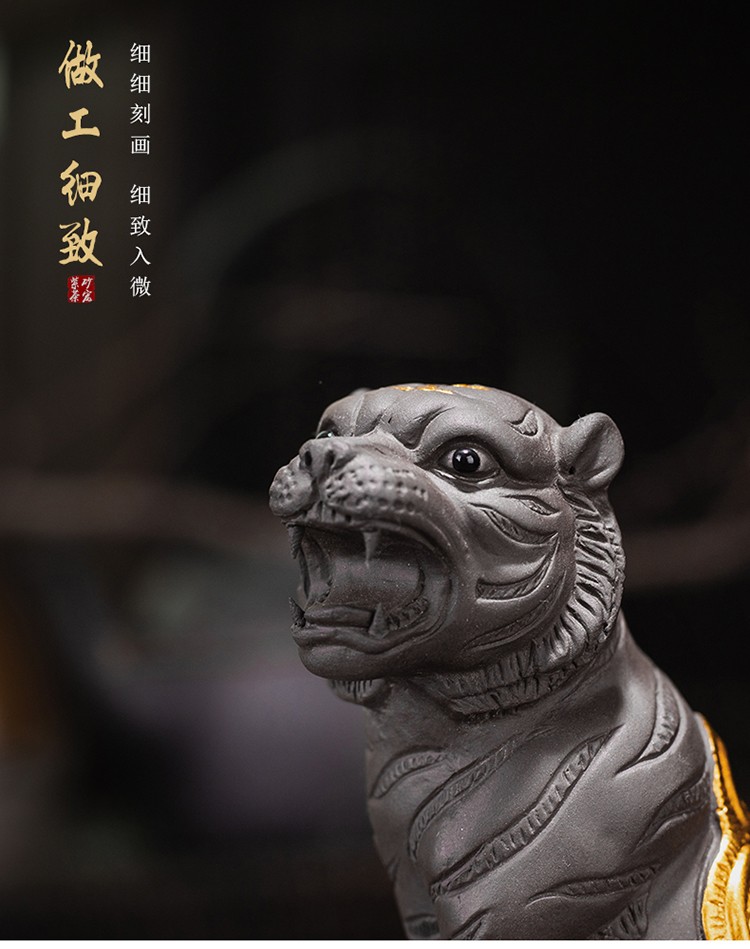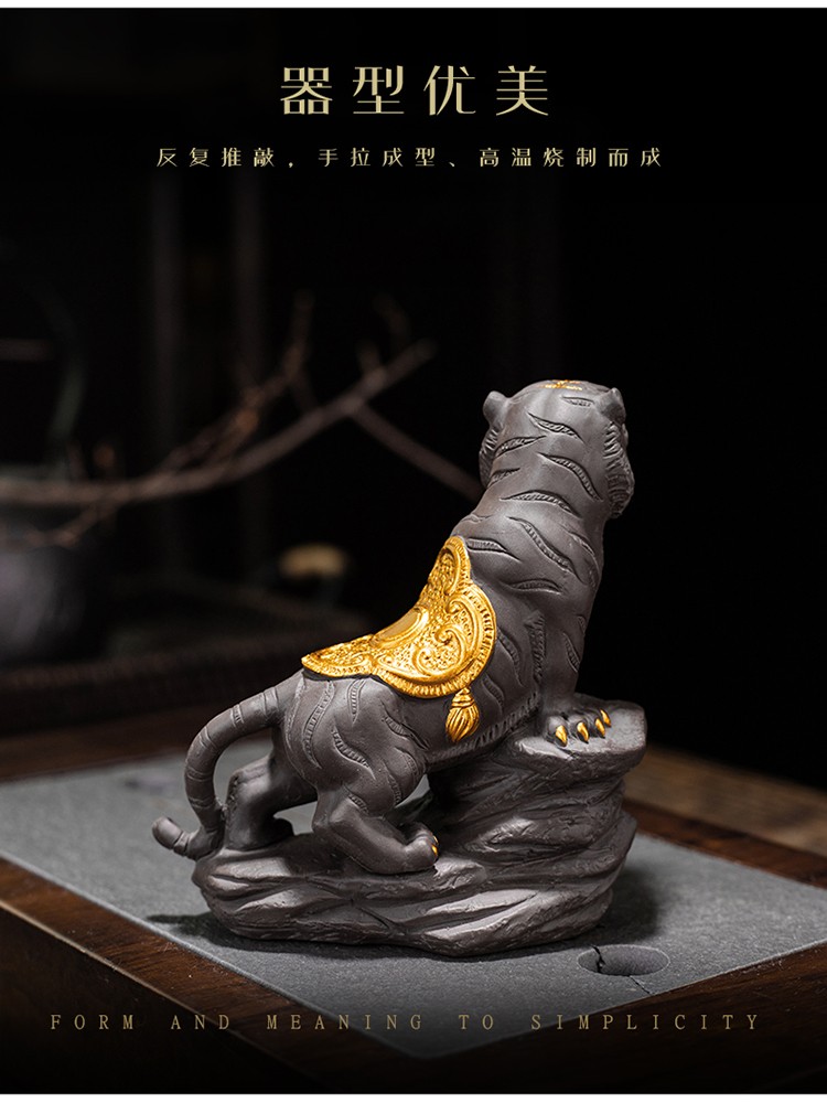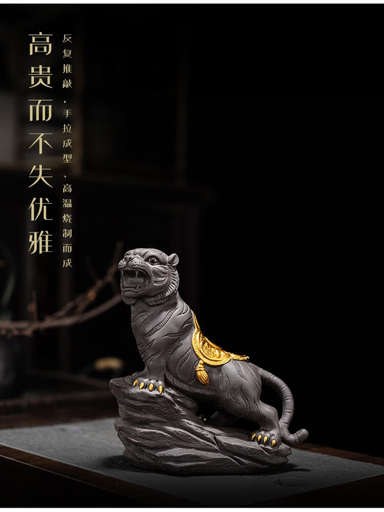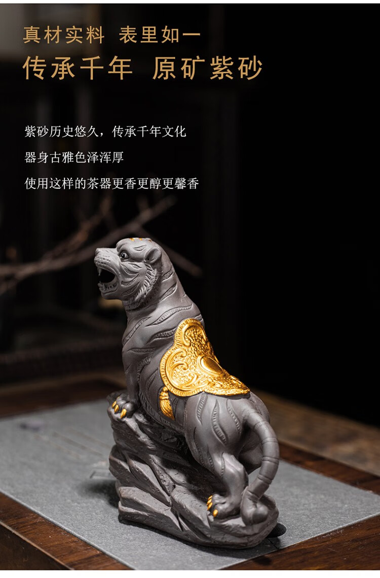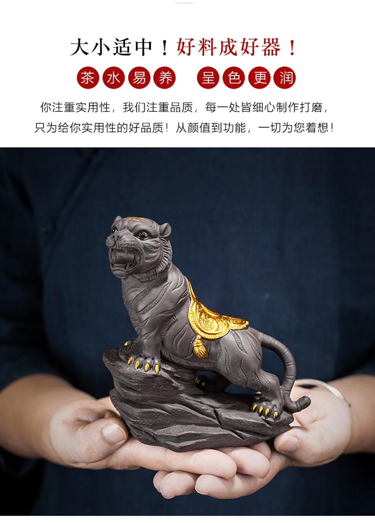 Mingke Tea Pet Ornaments Boutique Can Raise Purple Clay Tea Play Tiger Lucky Tea Set Handmade Tea Tray Accessories Living Room Home Furnishings Gold Painted Tea Pet Tiger
