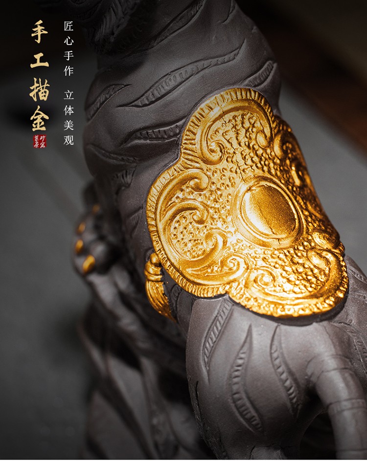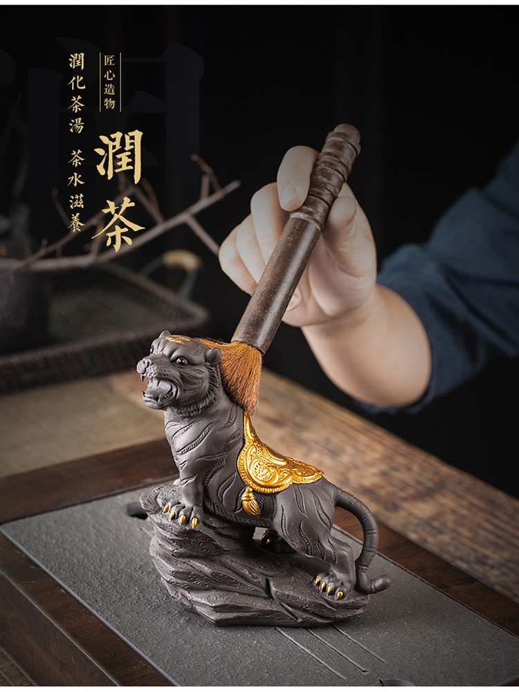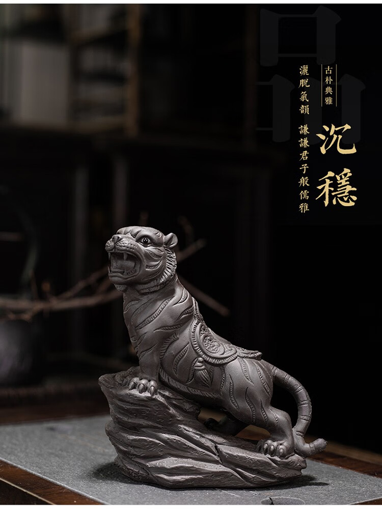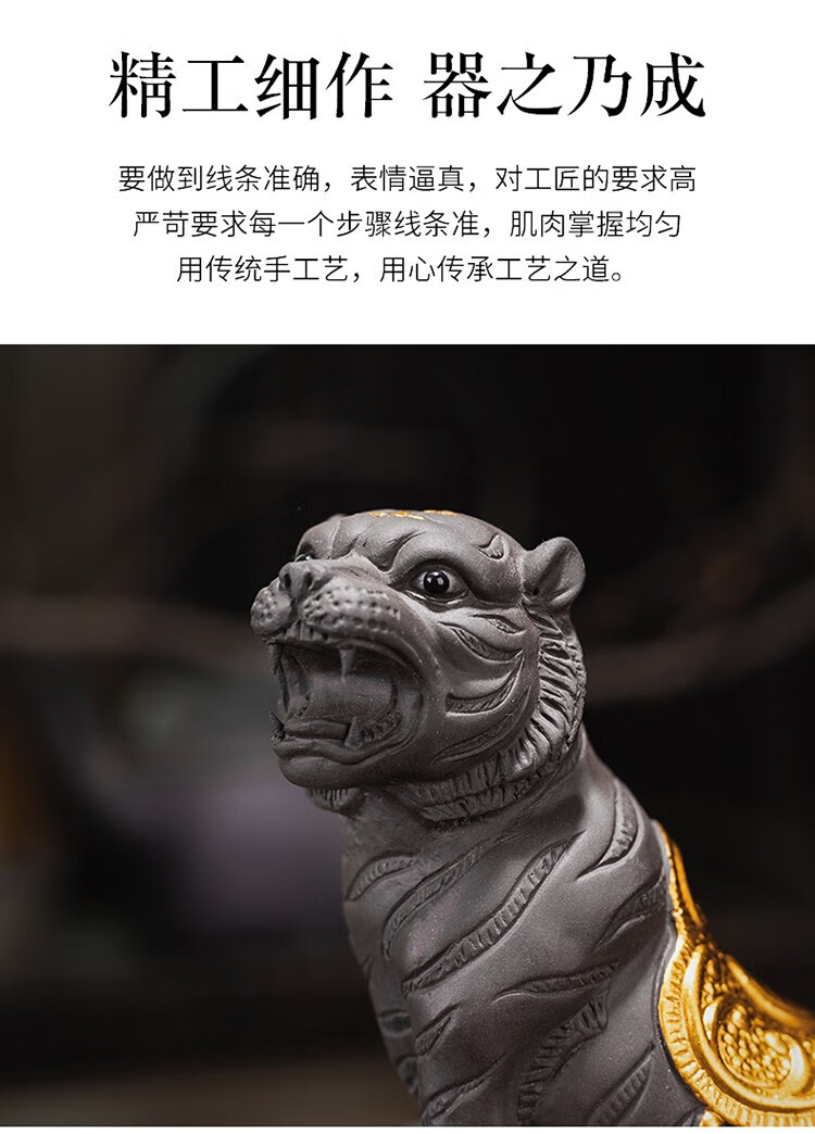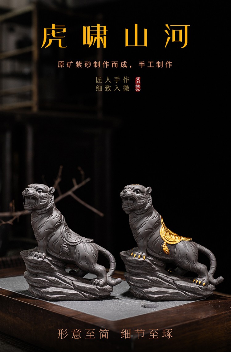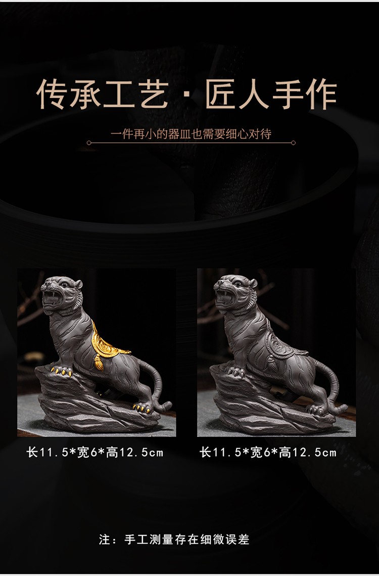 Mingke Tea Pet Ornaments Boutique Can Raise Purple Clay Tea Play Tiger Lucky Tea Set Handmade Tea Tray Accessories Living Room Home Furnishings Gold Painted Tea Pet Tiger