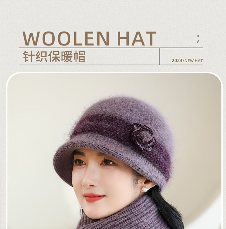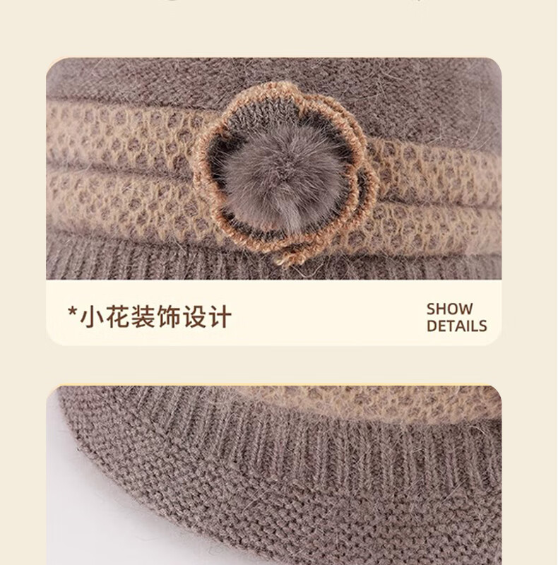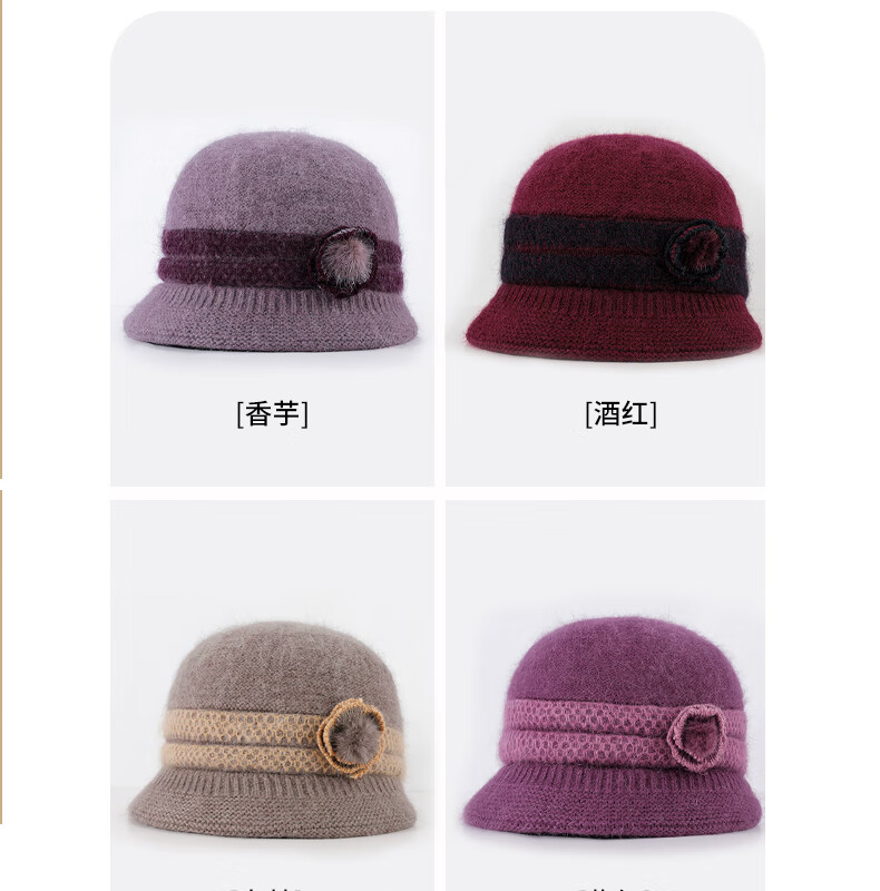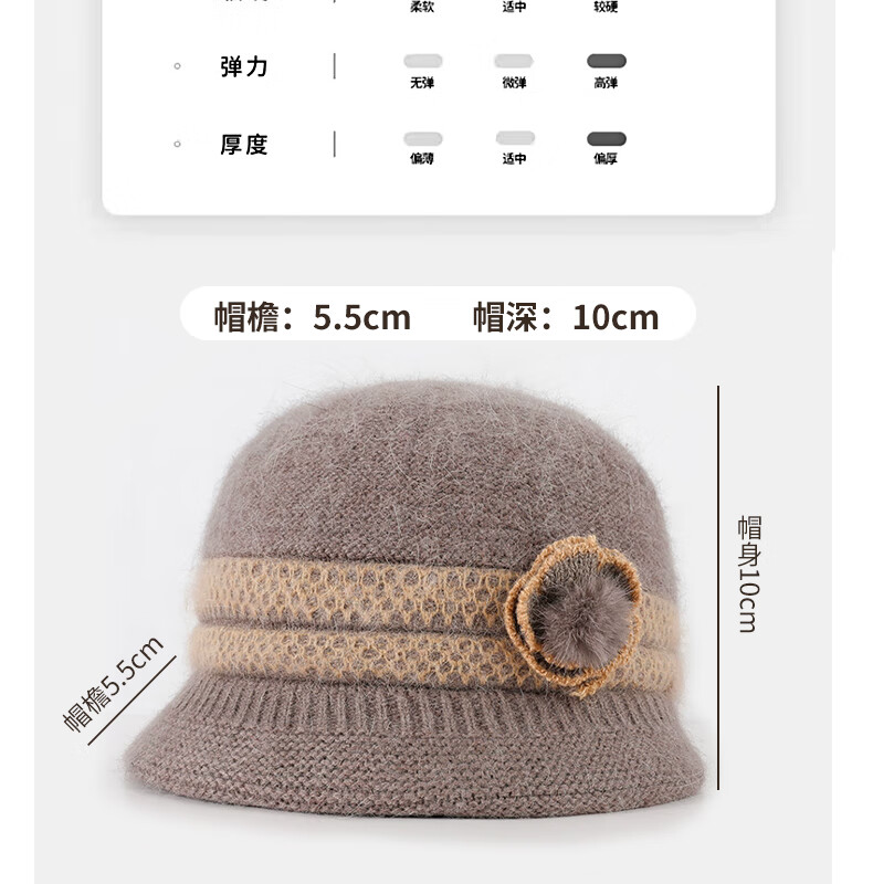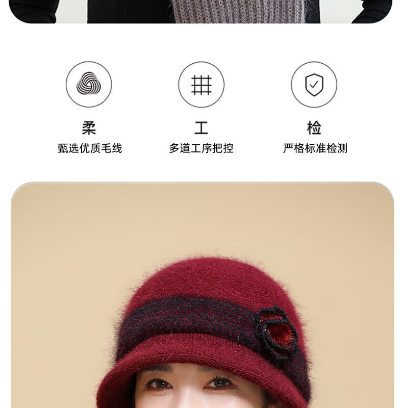 Red Dragonfly Lady's Hat for Middle-aged and Elderly Women Winter Old Man Hat Wool Mother's Hat Winter Knitted Hat for Grandma and Old Lady Rabbit Fur Blended Single Hat W2415 Khaki