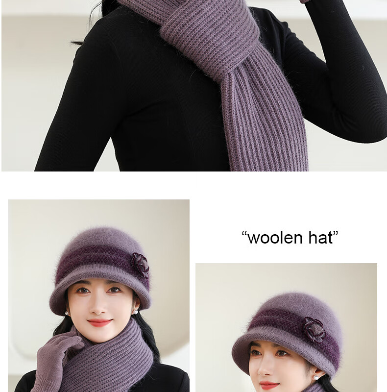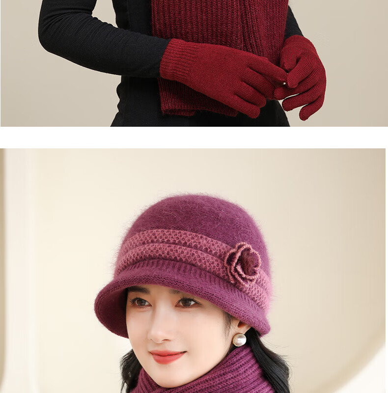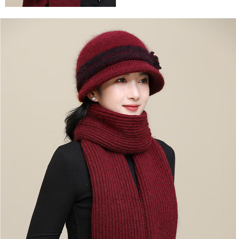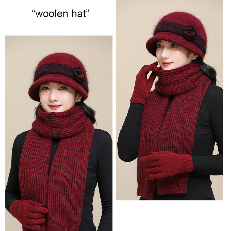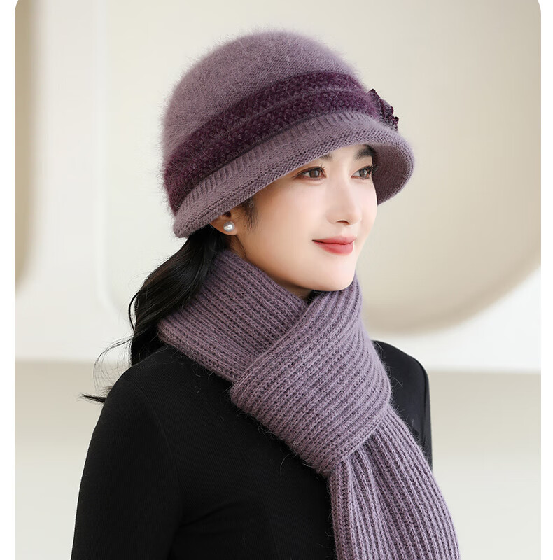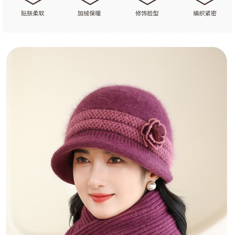 Red Dragonfly Lady's Hat for Middle-aged and Elderly Women Winter Old Man Hat Wool Mother's Hat Winter Knitted Hat for Grandma and Old Lady Rabbit Fur Blended Single Hat W2415 Khaki