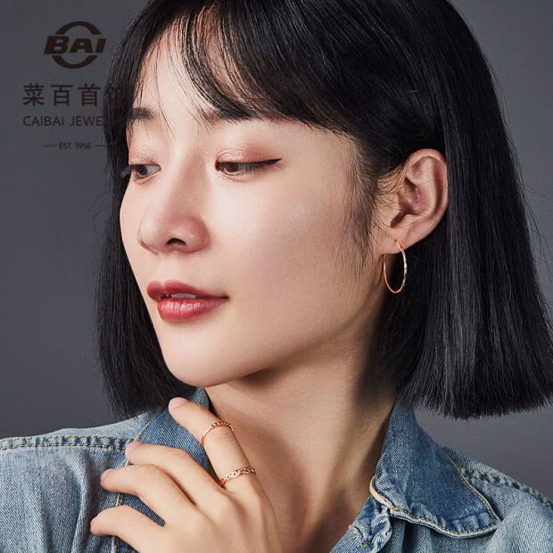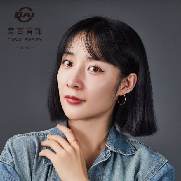 Caibai Jewelry K Gold Ring 18K Gold New Youth Series Cool-Cool Play Personalized Fashion Small Square Ring Pricing KJ 18K Rose Gold Ring No. 11