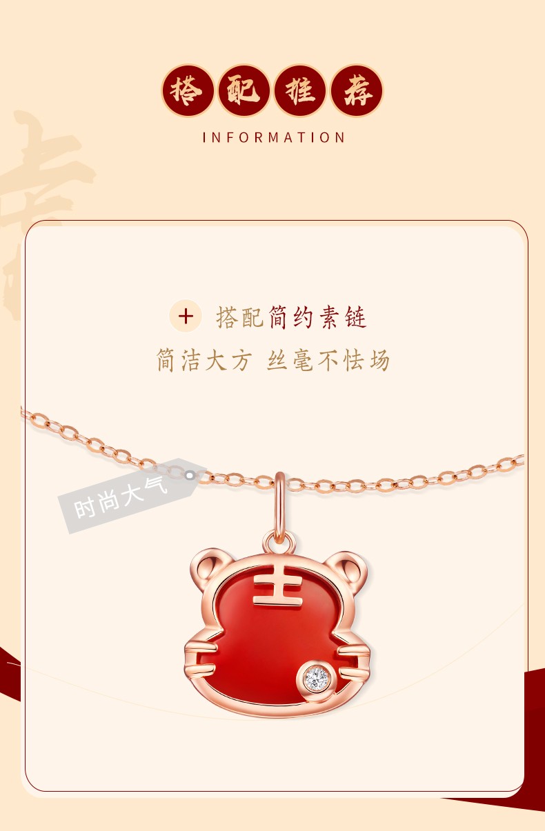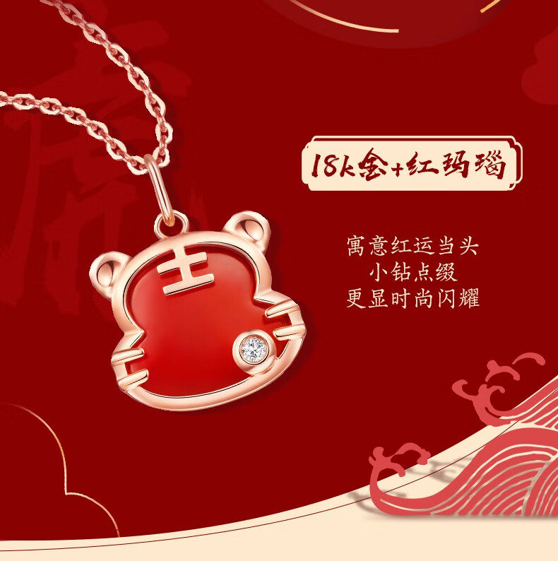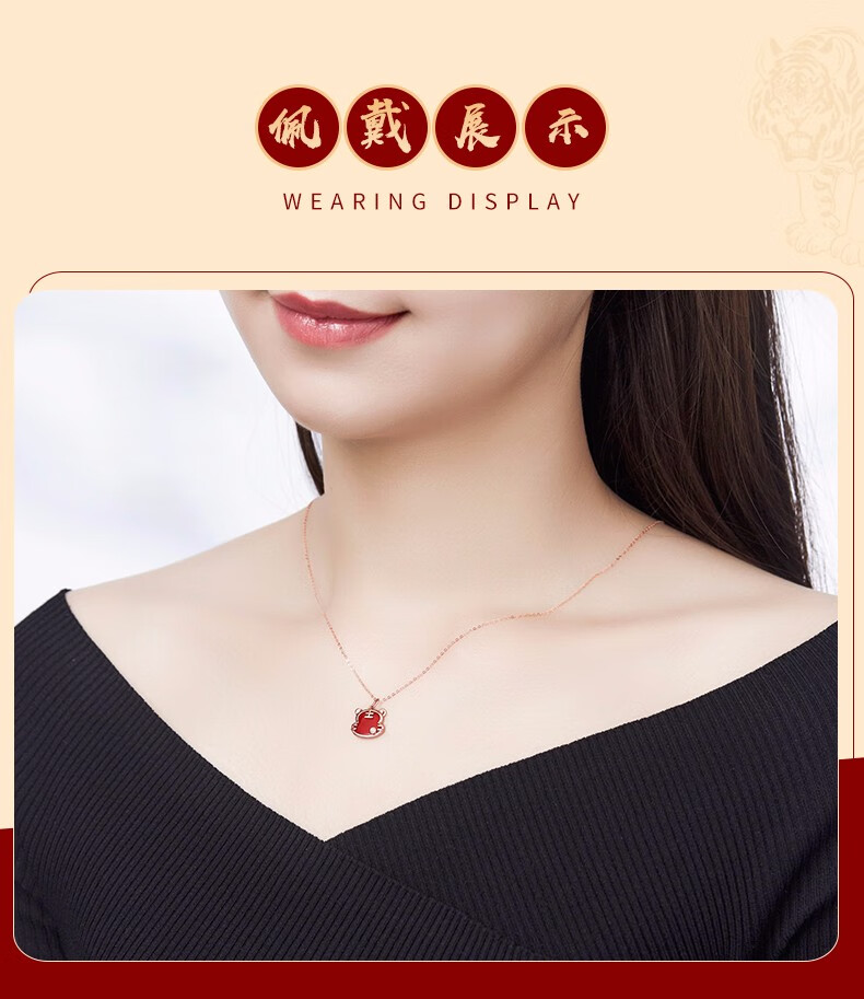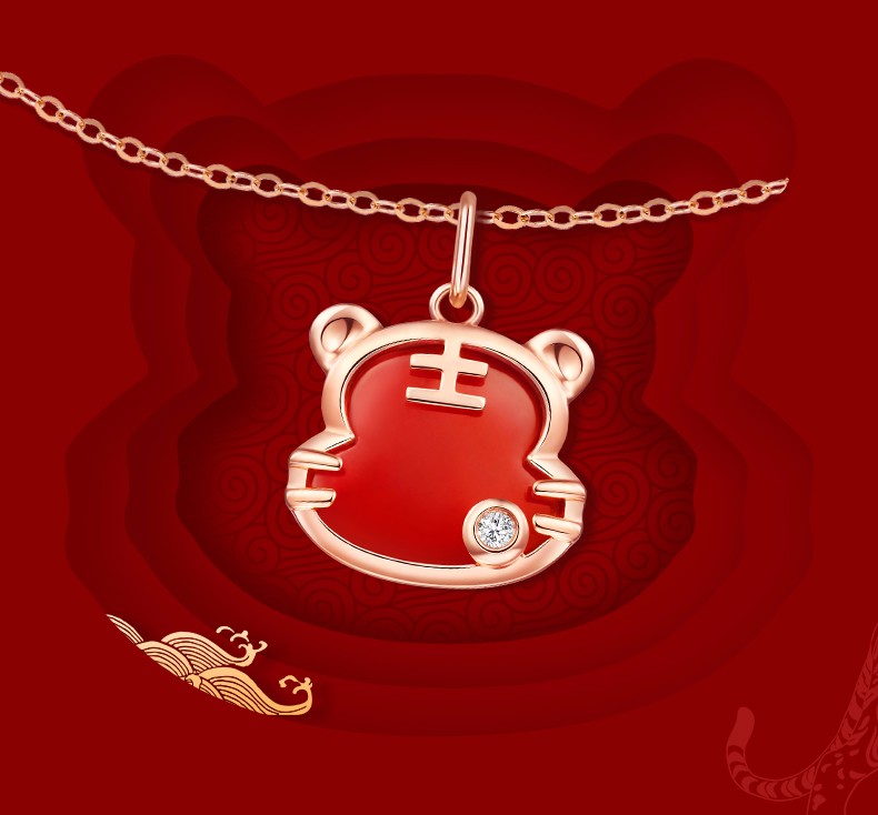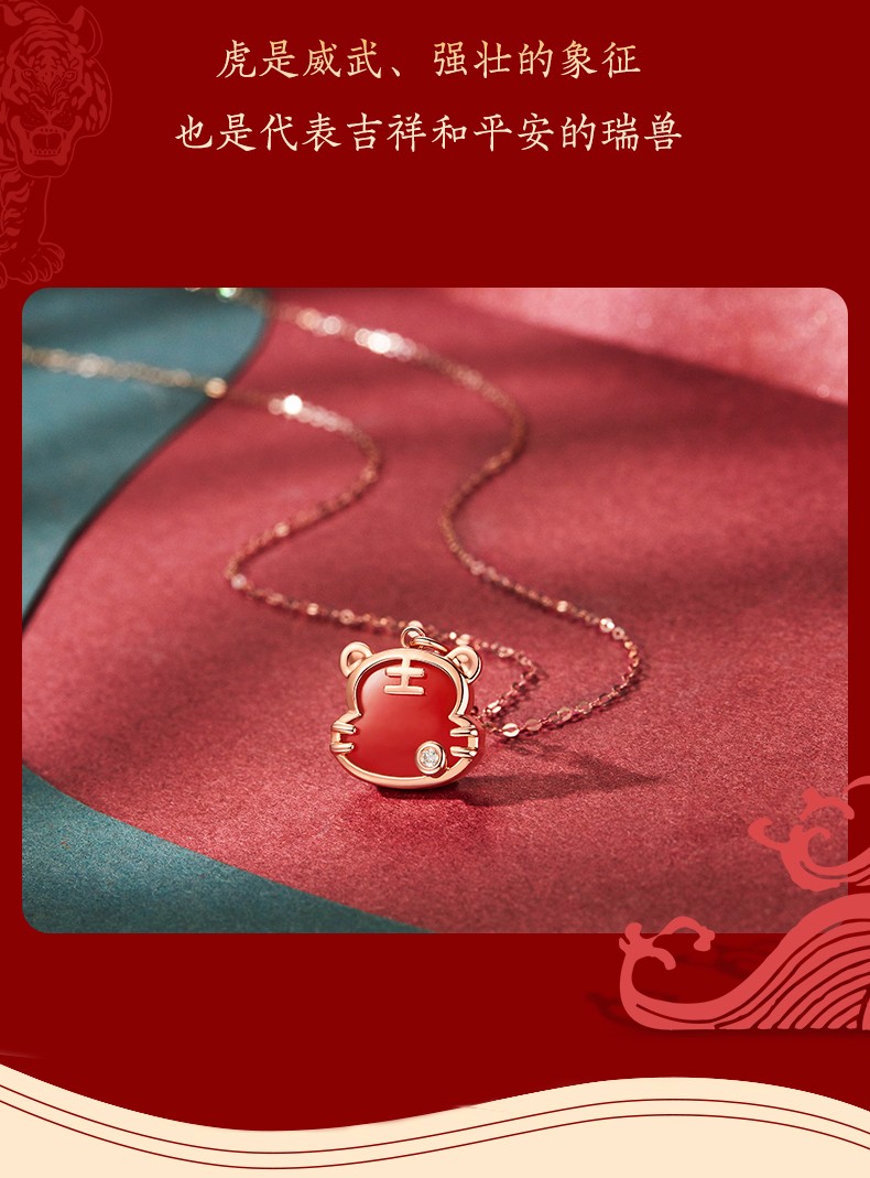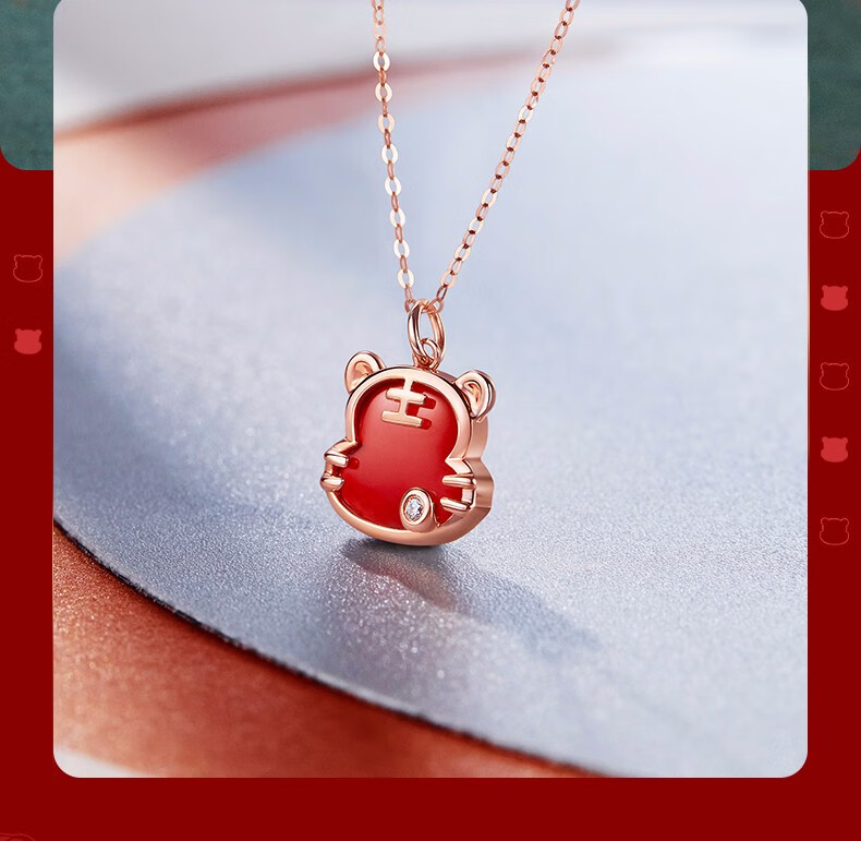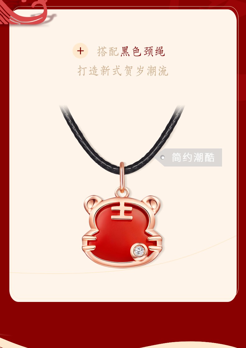Caibai Jewelry 18K Gold Pendant Year of the Tiger Red Fortune Tiger Necklace Red Agate Diamond Pendant for Women Zodiac Tiger KJ Pendant + Black Rope + Packaging Included