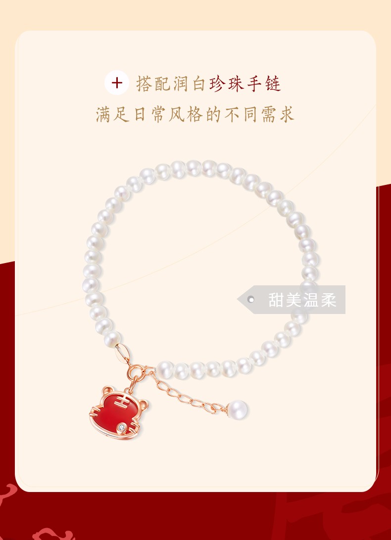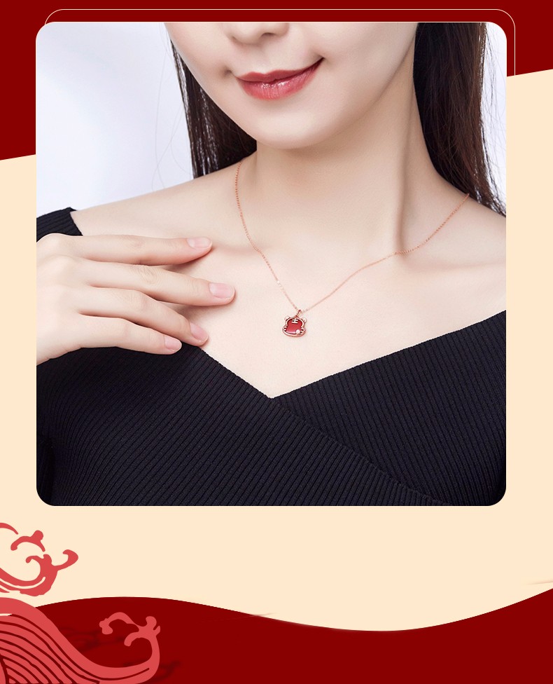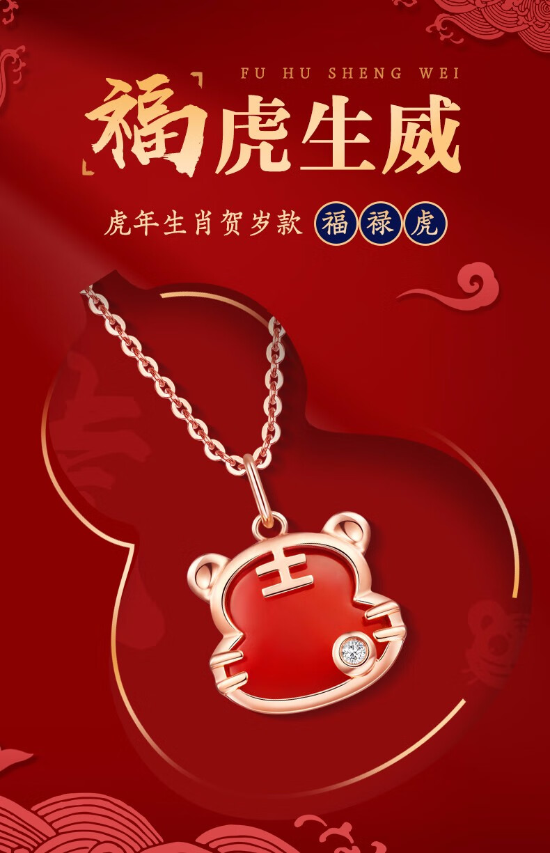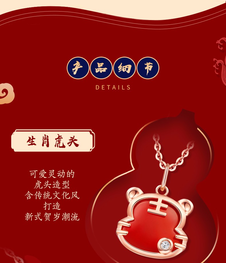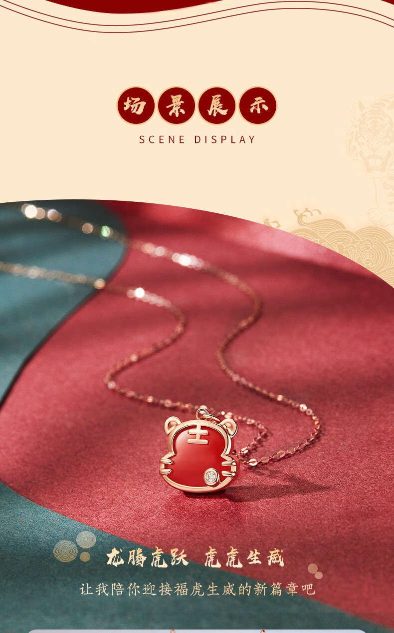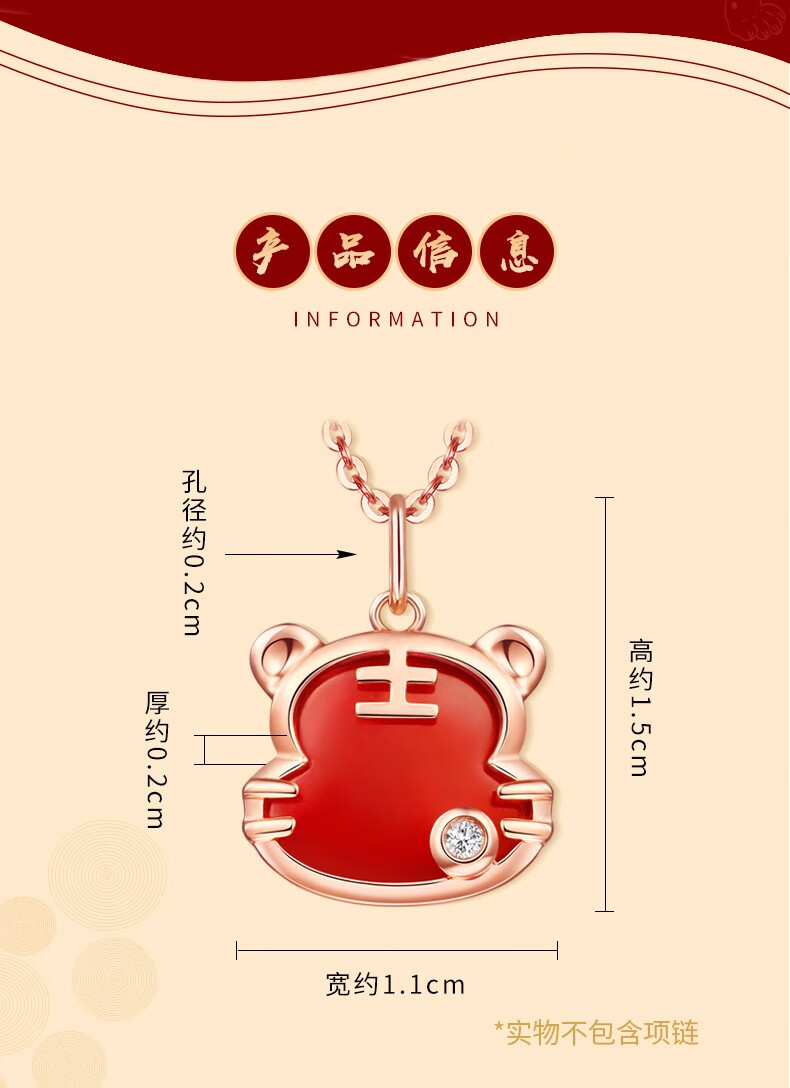 Caibai Jewelry 18K Gold Pendant Year of the Tiger Red Fortune Tiger Necklace Red Agate Diamond Pendant for Women Zodiac Tiger KJ Pendant + Black Rope + Packaging Included