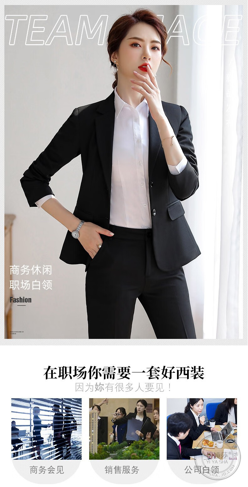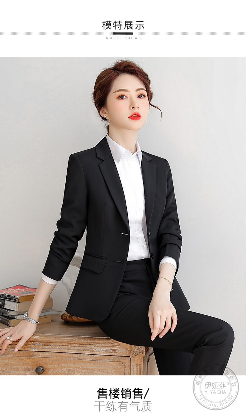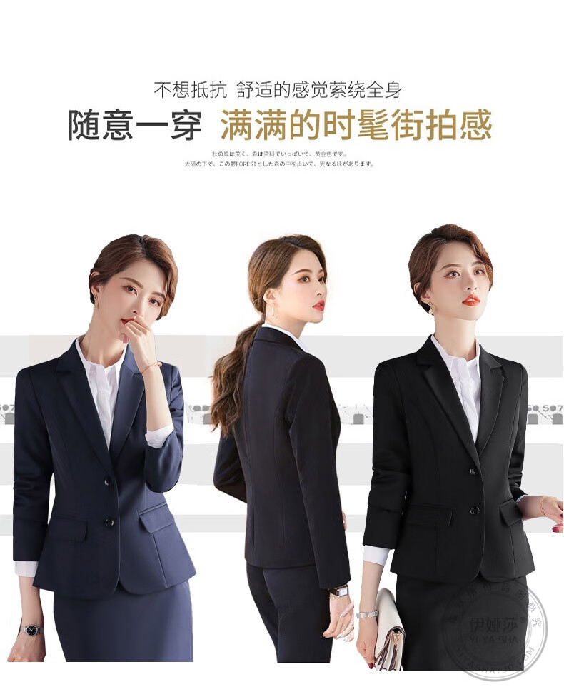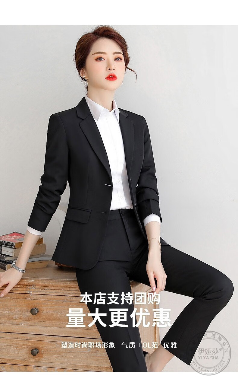 Iyasha professional wear women's suit business temperament small suit jacket female college student interview formal white-collar teacher suit black single-piece suit 2XL recommended 117-127 Jin Jin equals 0.5 kg