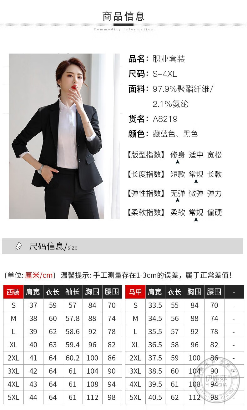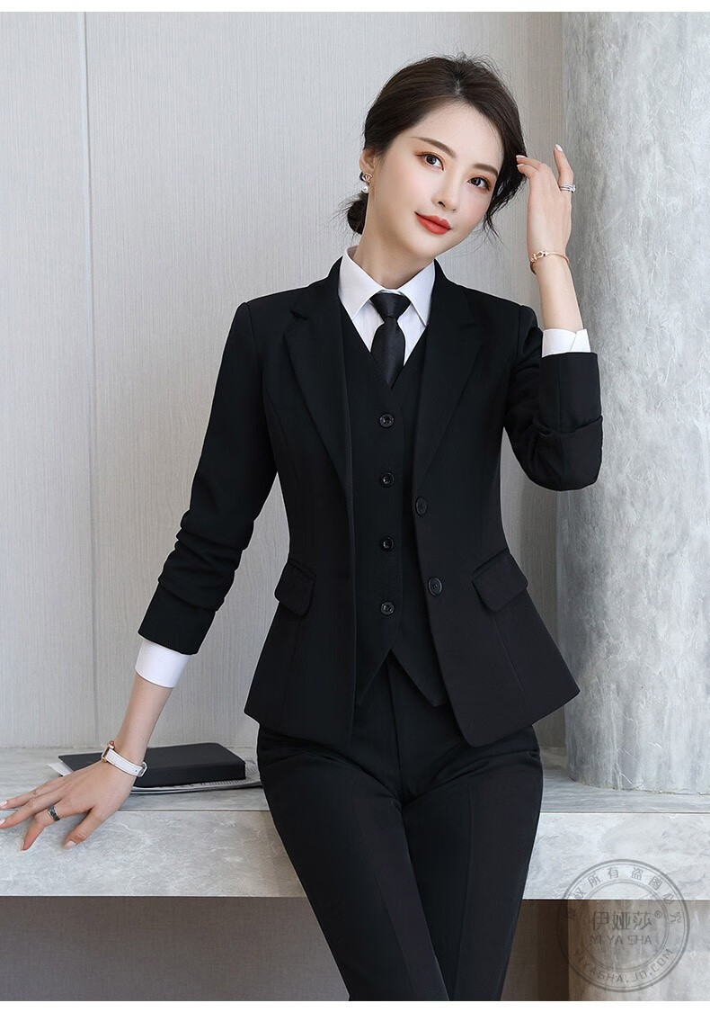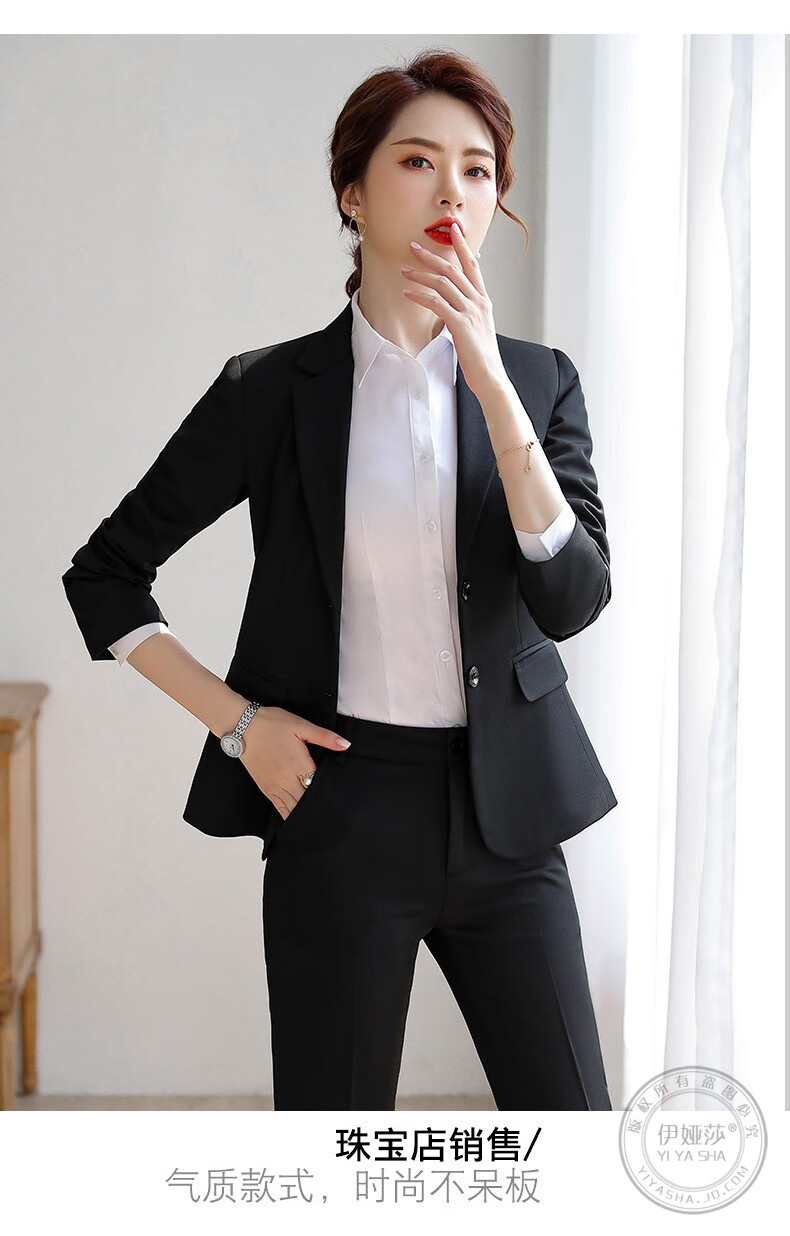 Iyasha professional wear women's suit business temperament small suit jacket female college student interview formal white-collar teacher suit black single-piece suit 2XL recommended 117-127 Jin Jin equals 0.5 kg