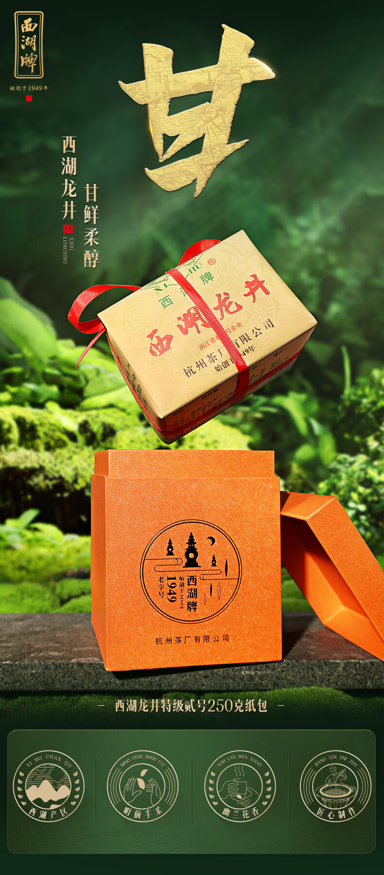 West Lake brand 2025 new tea launched Mingqian special grade No. 2 West Lake Longjing tea traditional paper bag 250g spring tea green tea tea