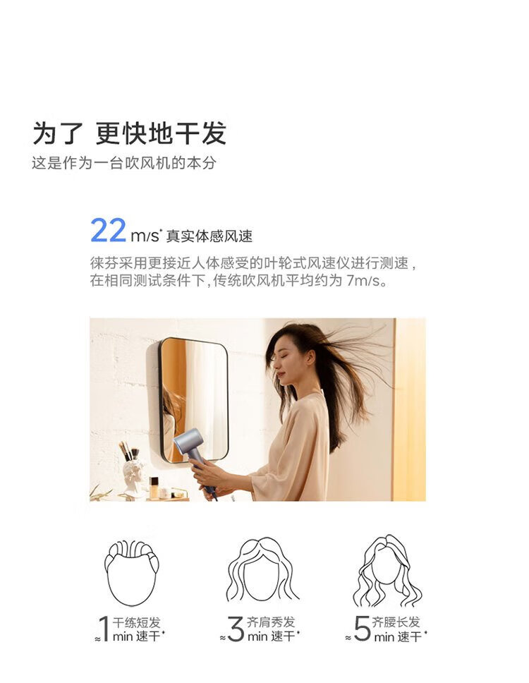 Laifen household high-speed hair dryer high-power negative ion low-noise quick-drying hair dryer does not damage power generation hair dryer gift recommendation national subsidy LF03 flash silver
