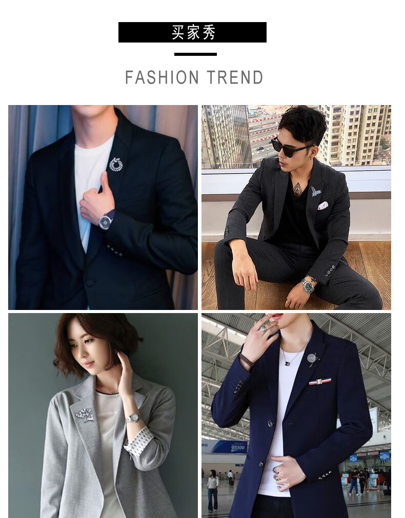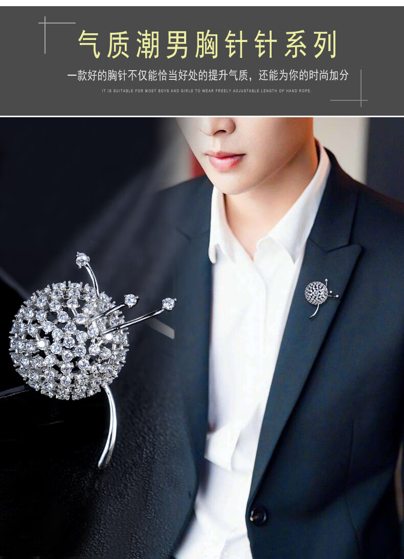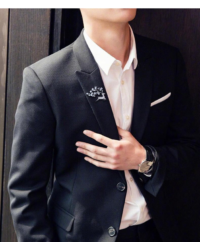 Crystal Brooch Men's Suit Coat Jacket Sweater Corsage Pin Personalized Trendy Simple Men's Badge Birthday Gift Maisui-X168