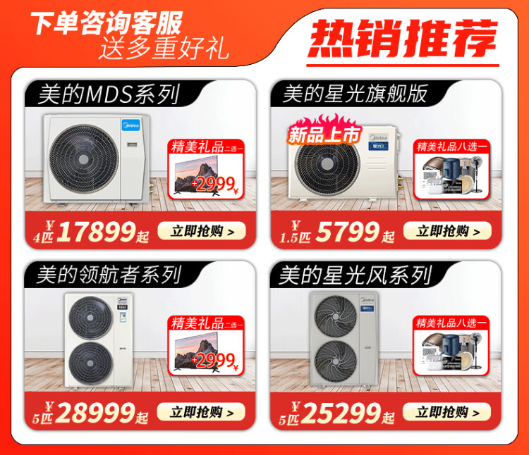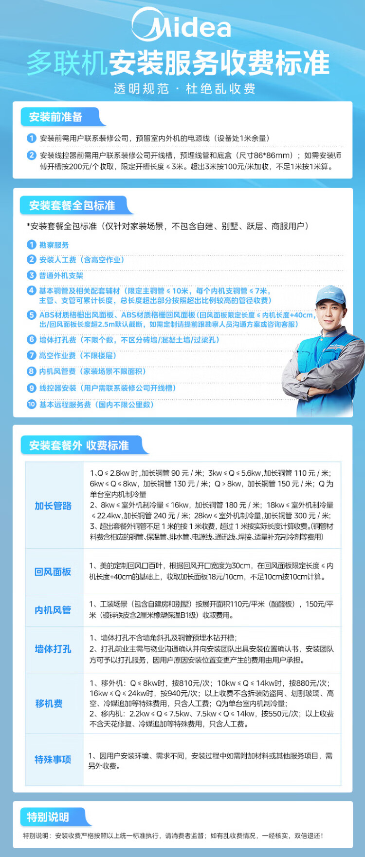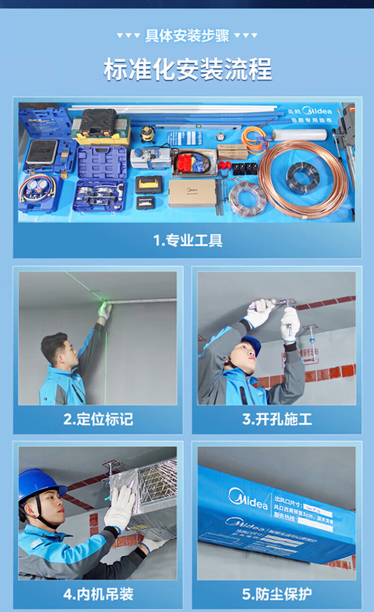 Midea central air conditioner MDS Starlight multi-split duct machine one to four/one to five to six household and commercial full DC variable frequency embedded air conditioner upgraded model 6 HP first class energy efficiency all inclusive five to five 90-120
