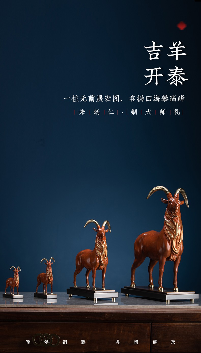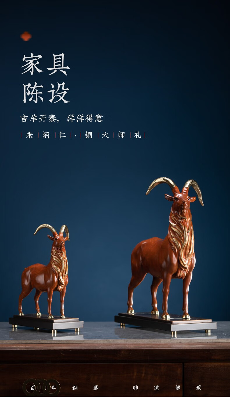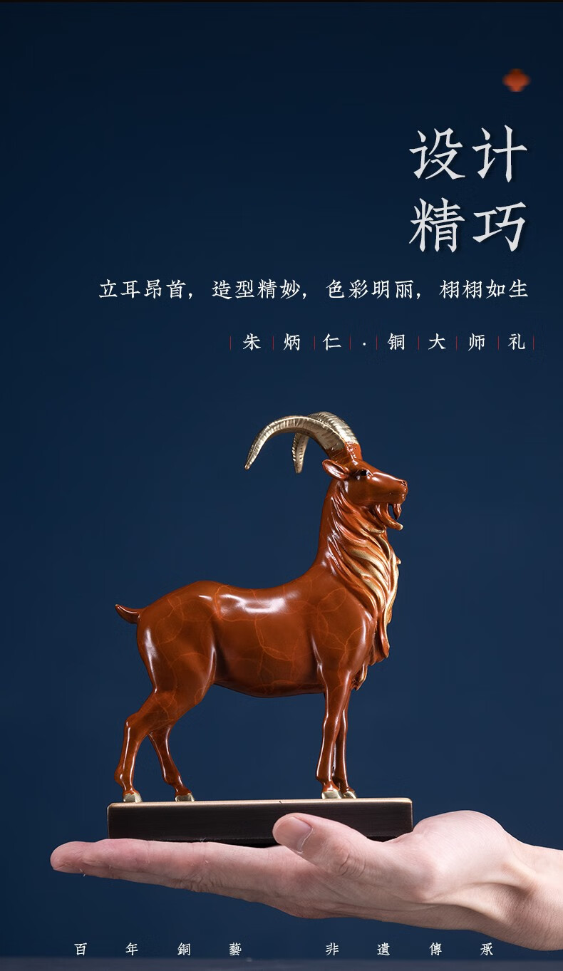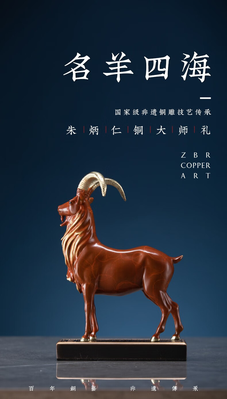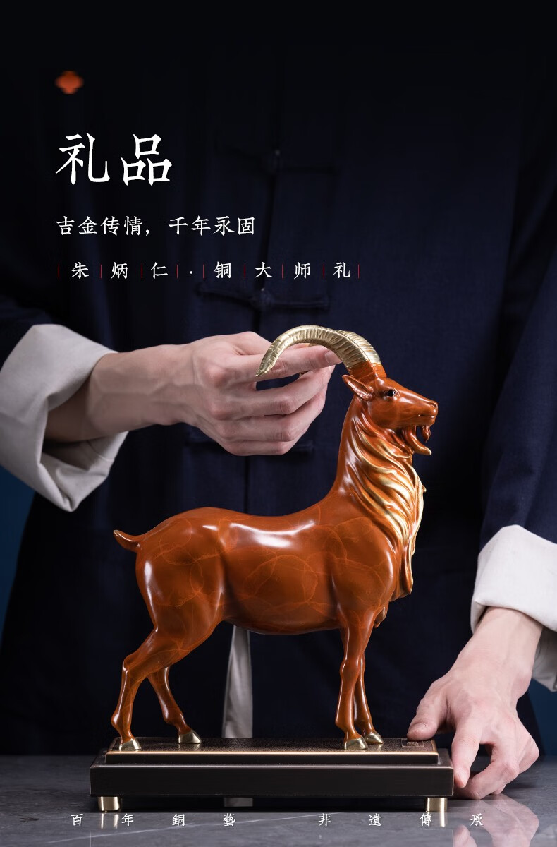 Zhu Bingren Copper Famous Sheep Sihai Bronze Sheep Living Room Study Ornament Home Gift Color Bronze Sculpture Brass Animal Sculpture Gift Famous Sheep Sihai Large