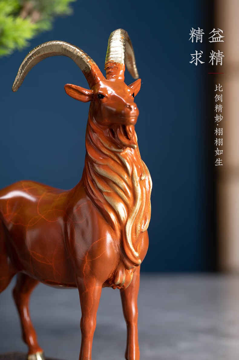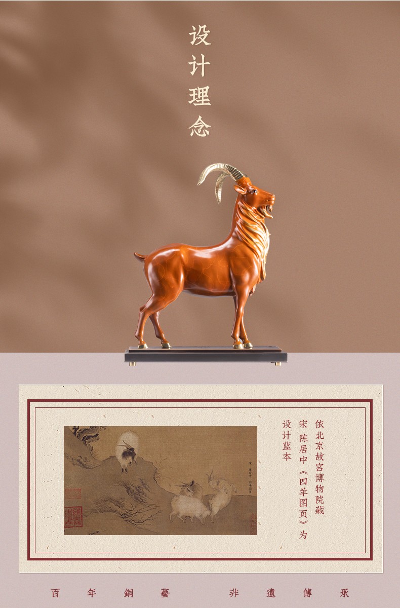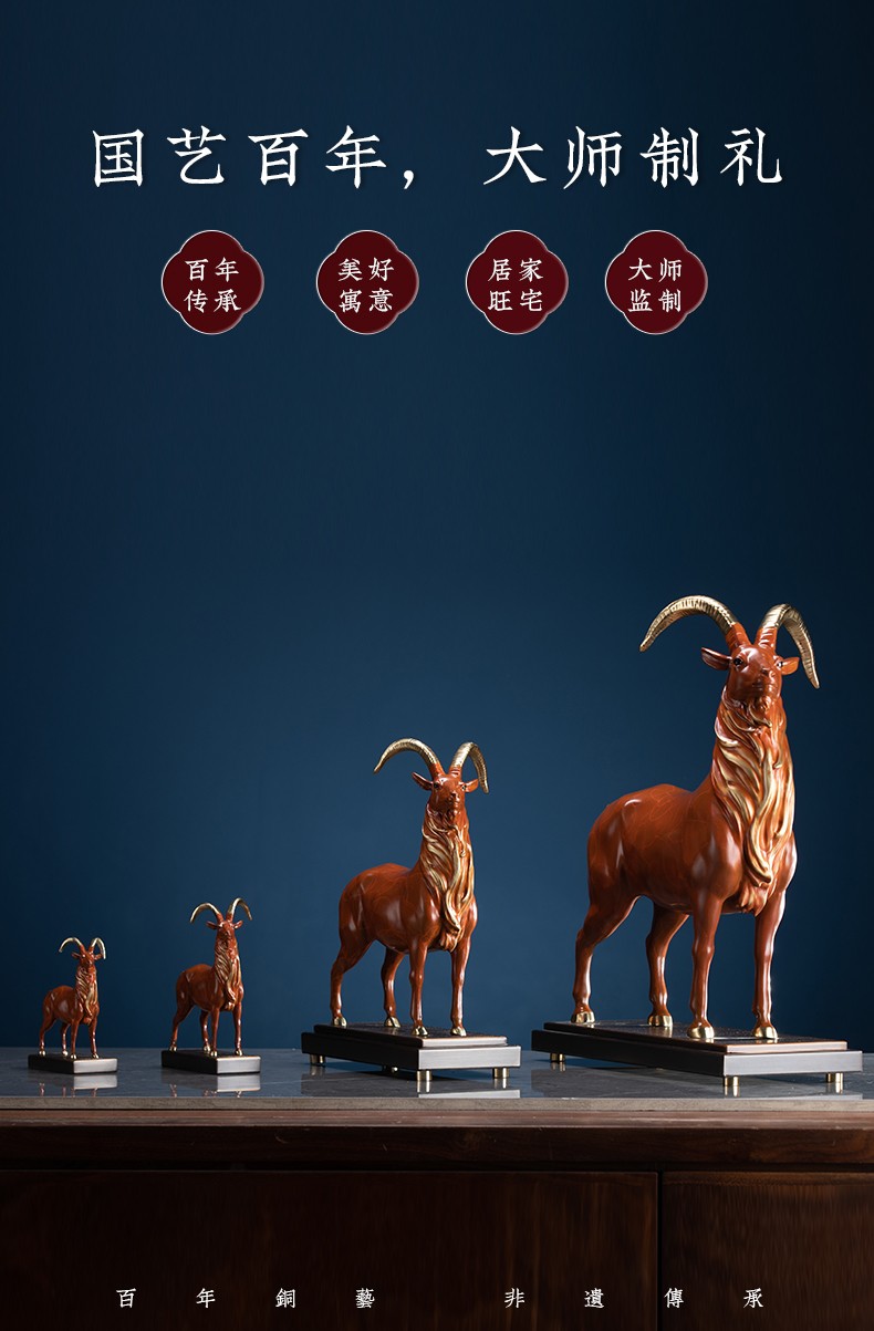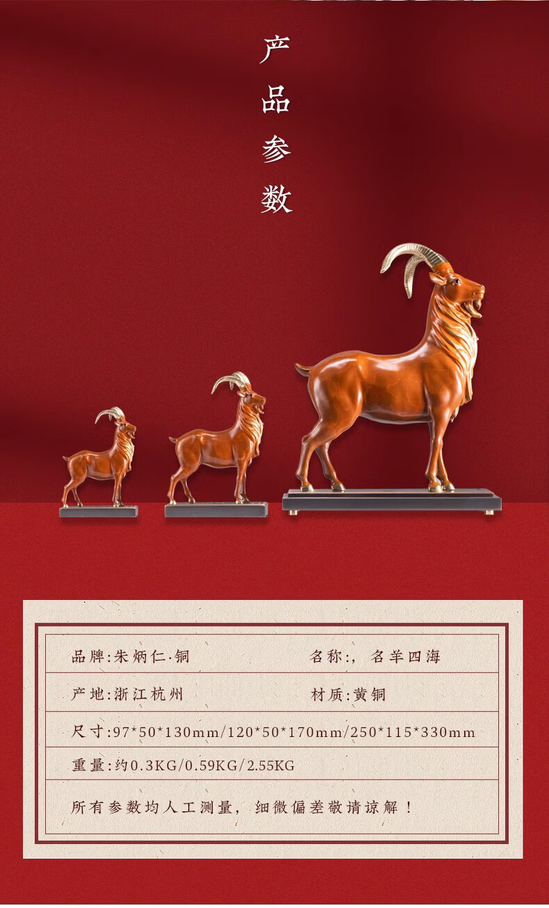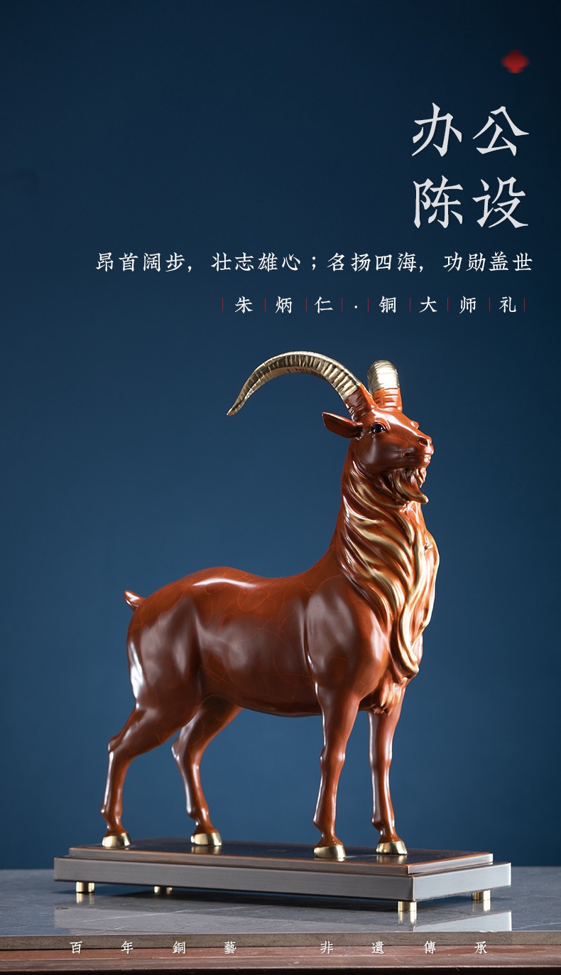 Zhu Bingren Copper Famous Sheep Sihai Bronze Sheep Living Room Study Ornament Home Gift Color Bronze Sculpture Brass Animal Sculpture Gift Famous Sheep Sihai Large