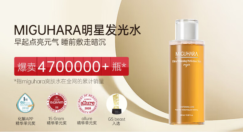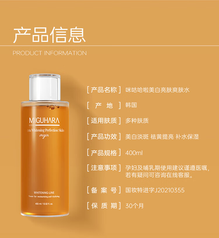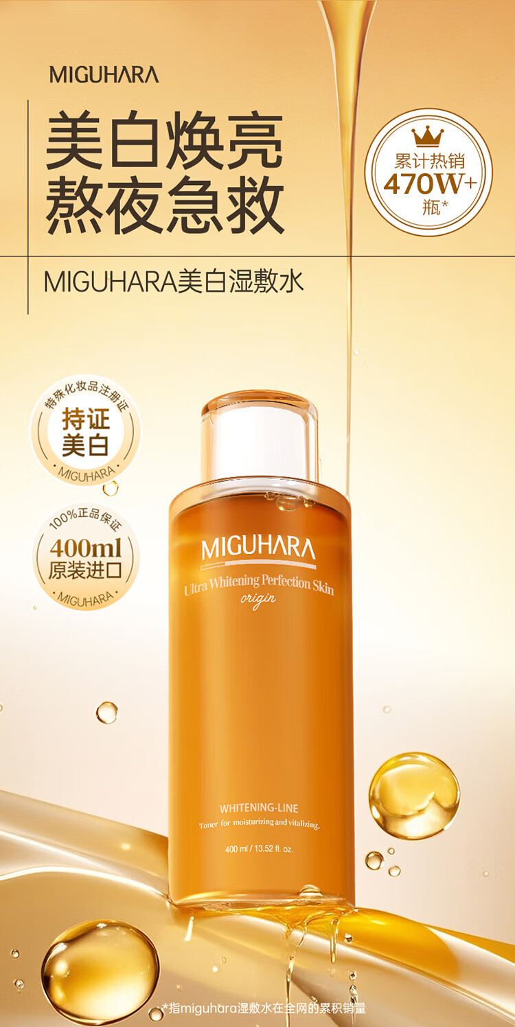 MIGUHARA Miguhala toner large water wet compress water whitening moisturizing luminous water brightening nicotinamide hydrating holiday gift 400ml large capacity