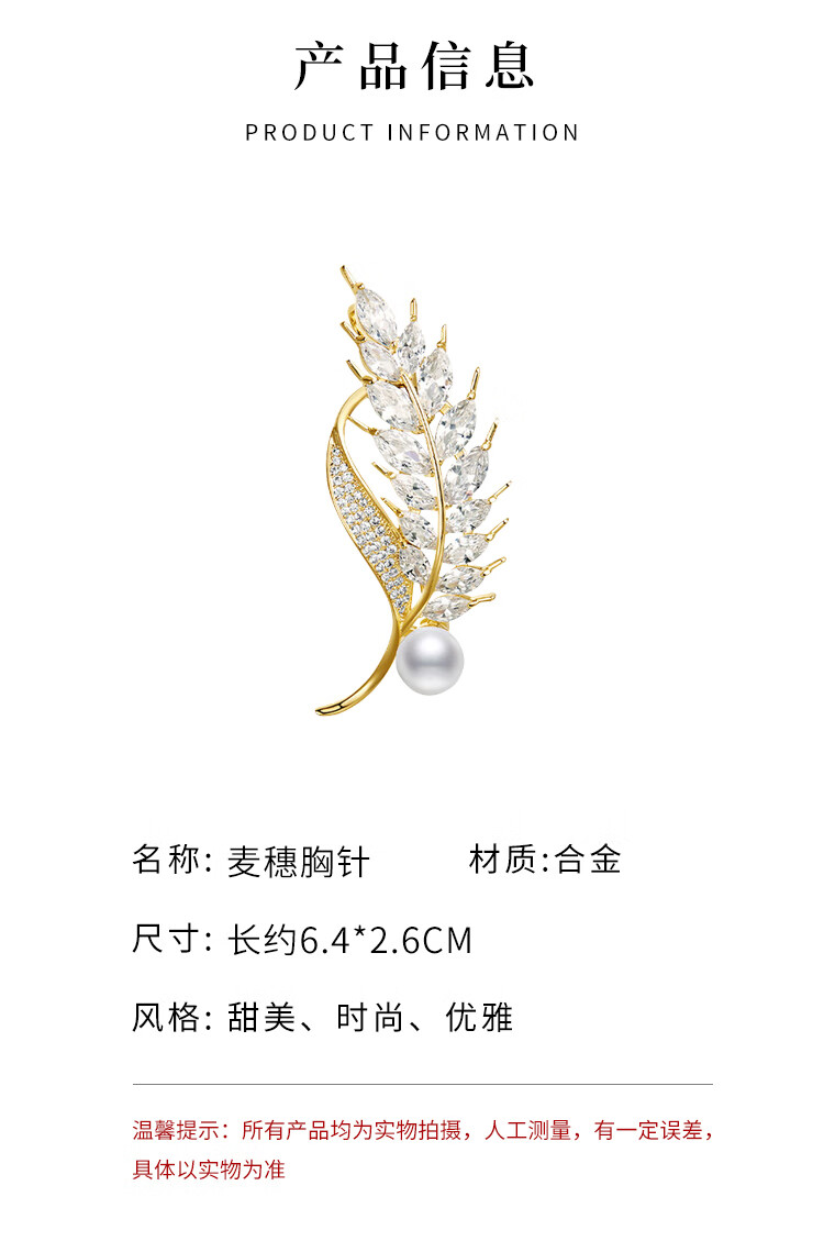 SENDME Wheat Ear Brooch Women's High-end Corsage Suit Pin Fashion Accessories Birthday Gift for Girlfriend Wheat Ear Brooch