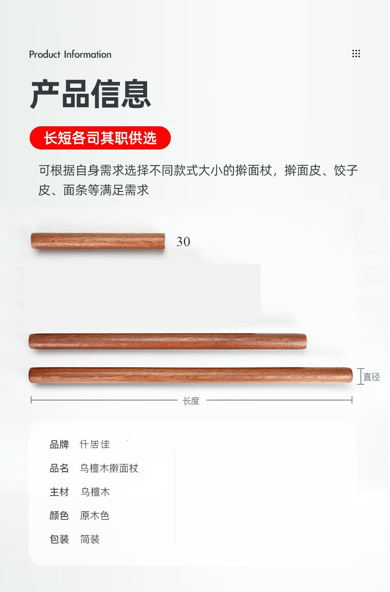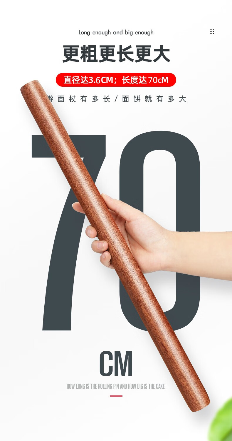 Qianjujia rolling pin handmade noodles rolling pin solid wood household baking dumpling wrapper special noodle sandalwood rolling pin 70cmx3.6cm
