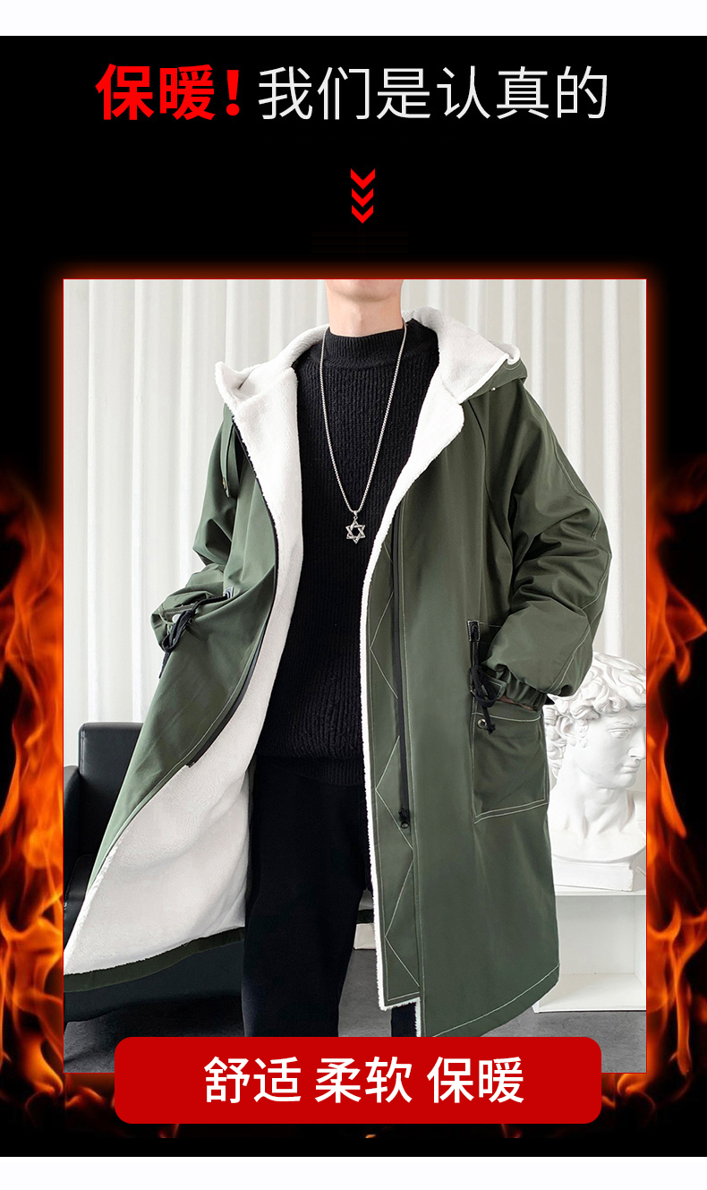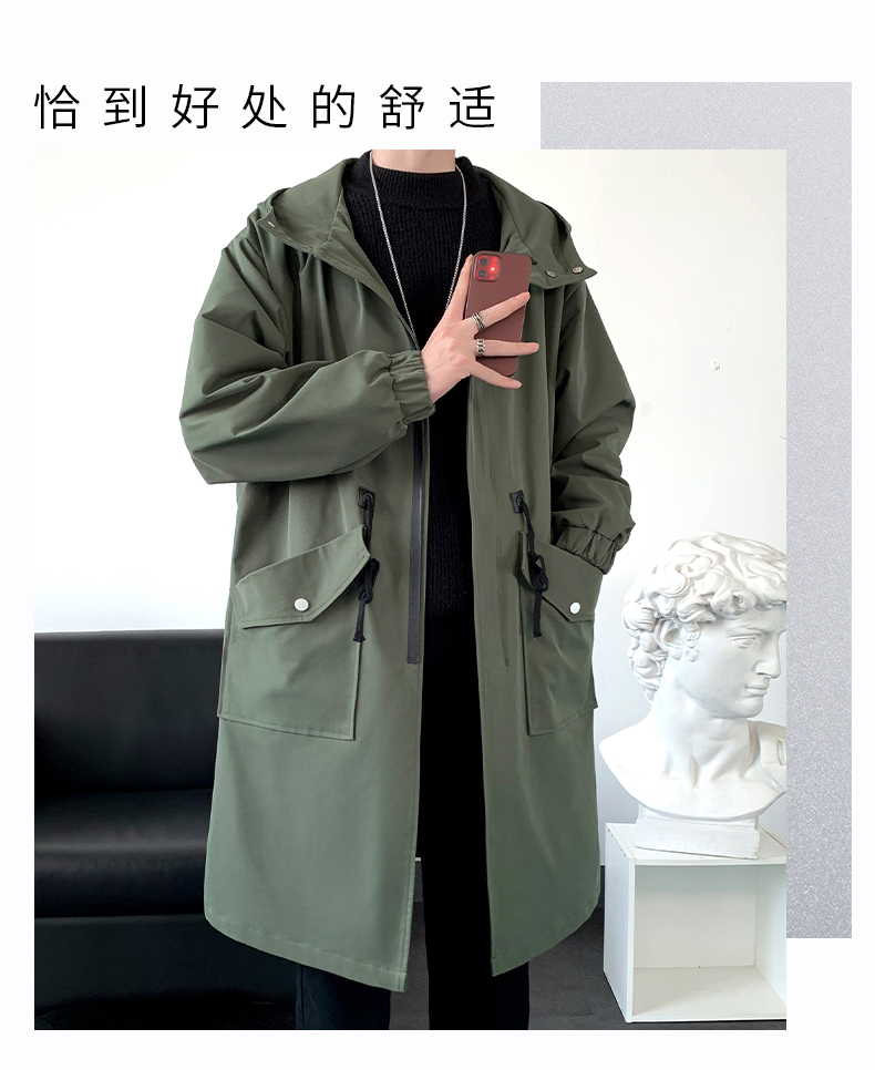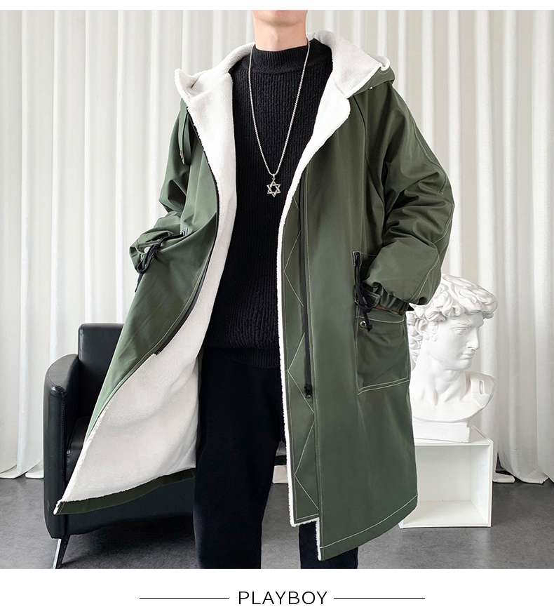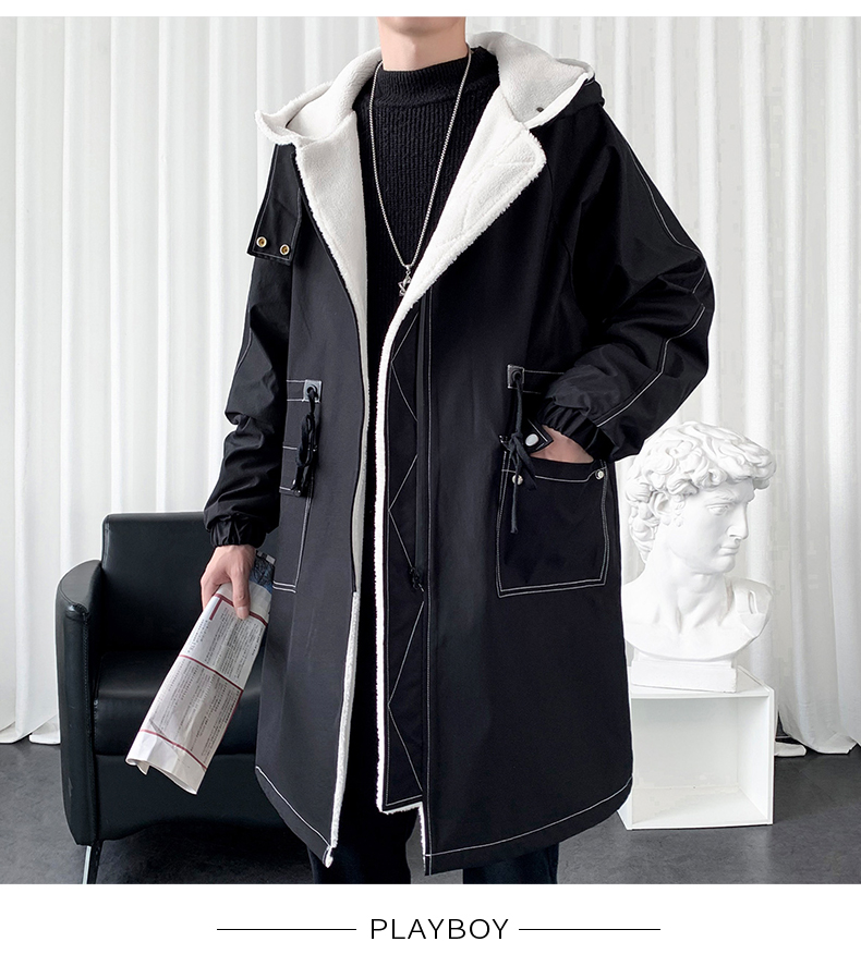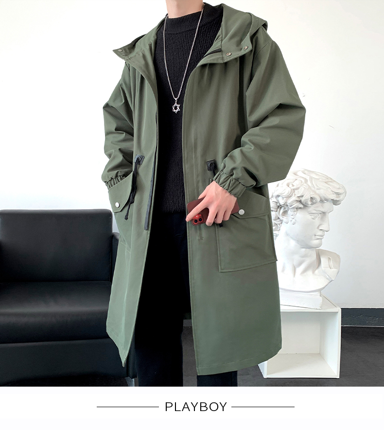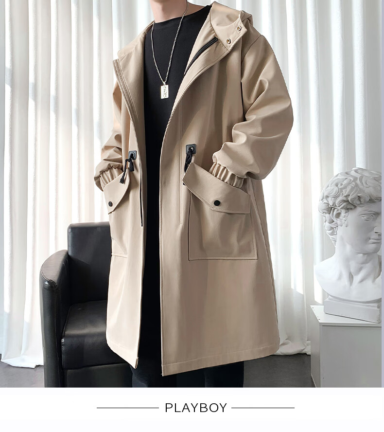 Playboy (PLAYBOY) windbreaker men's mid-length spring and autumn new high-end authentic trendy coat jacket men's hooded loose top men Z-401HHF262 black plus velvet L