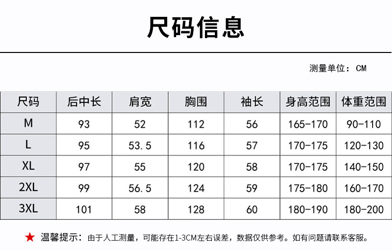 China (cm) 165 / 88-90 170 / 96-98 175 / 108-110 180 / 118-122 185 / 126-130