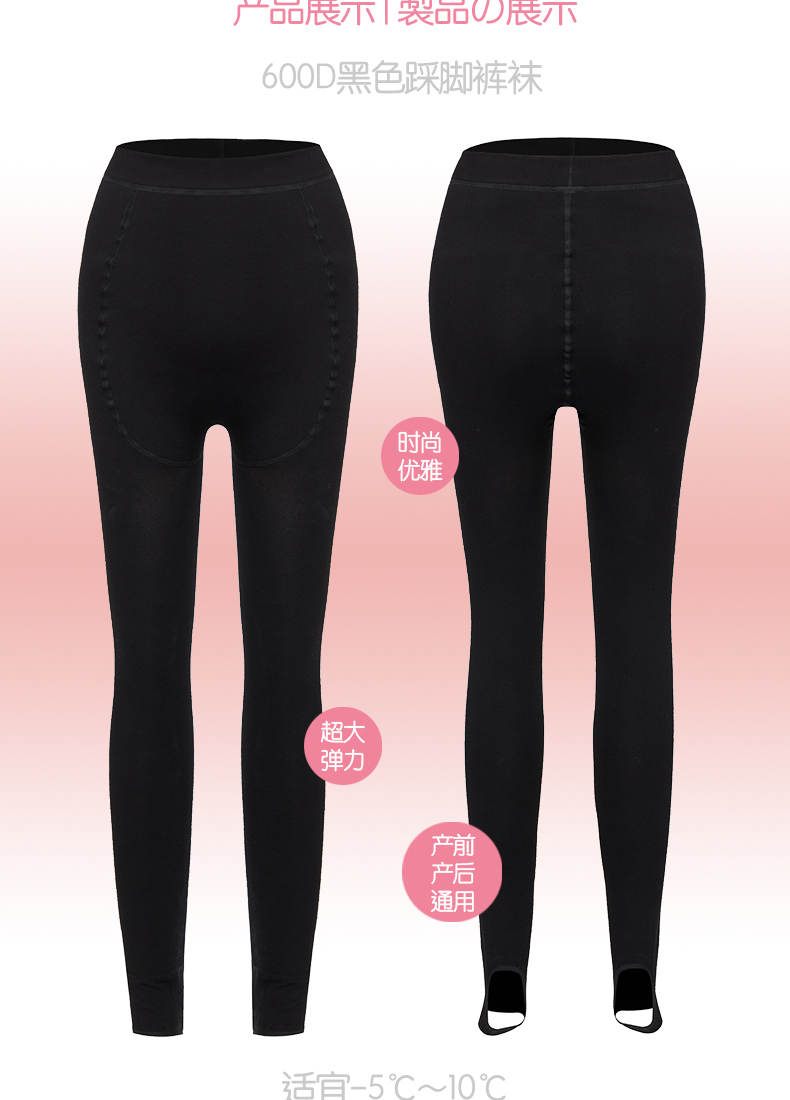 INUjIRUSHI maternity leggings, autumn and winter belly support, warm, high-waisted segmented compression pantyhose, foot socks 180D600D 180D Lycra pantyhose, black L-LL (hips 95~115)