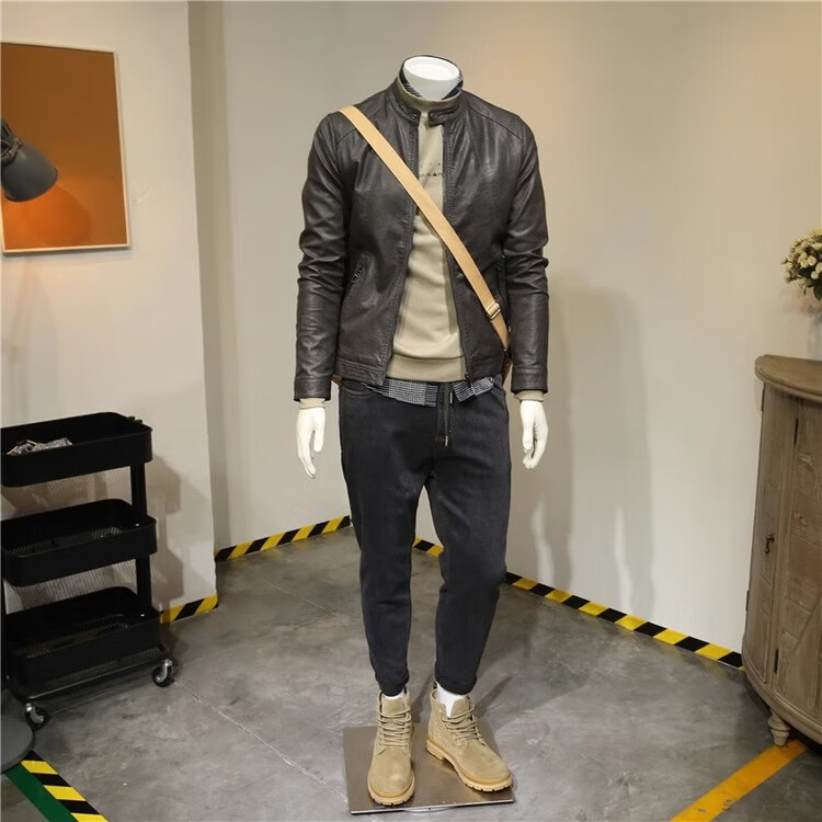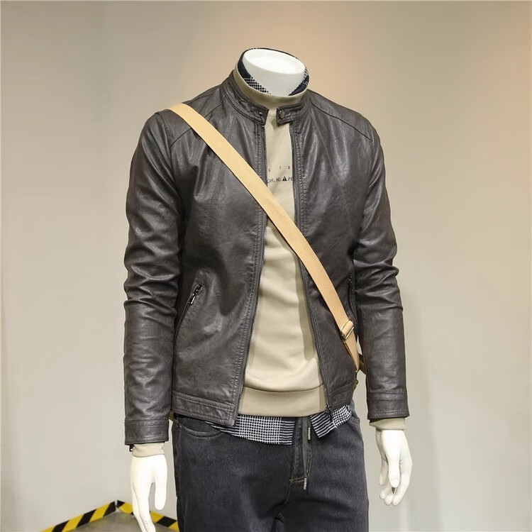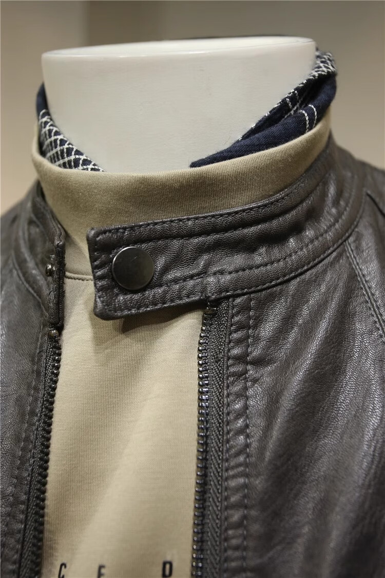 ANDSEEYOU Men's Spring and Autumn Retro Soft Leather Clothes Motorcycle Leather Jackets Leather Clothes Men's Casual Handsome Jackets Fashionable Men's Clothes Brown Spring and Autumn Style L 110-120Jin Jin is equal to 0.5 kg