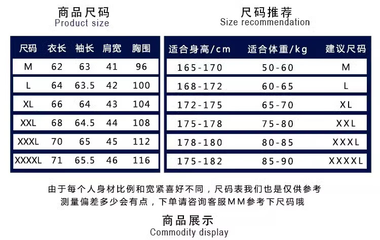 China (cm) 165 / 88-90 170 / 96-98 175 / 108-110 180 / 118-122 185 / 126-130