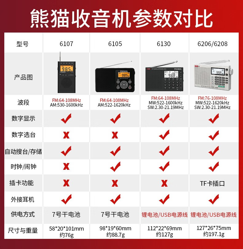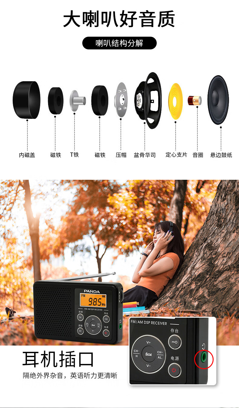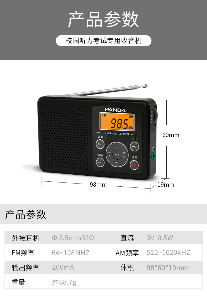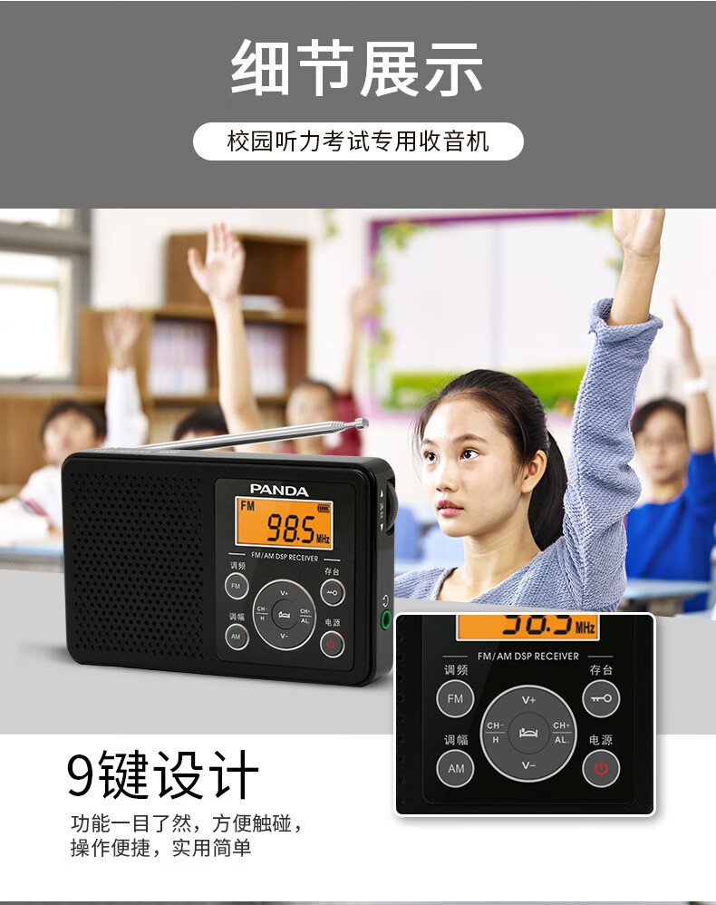 PANDA (PANDA) 6105 radio for level 4 and level 6 English listening test dedicated to level 4 and level 46 college students FM FM Shanghai college entrance examination campus radio new portable emergency semiconductor small white without exam headphones