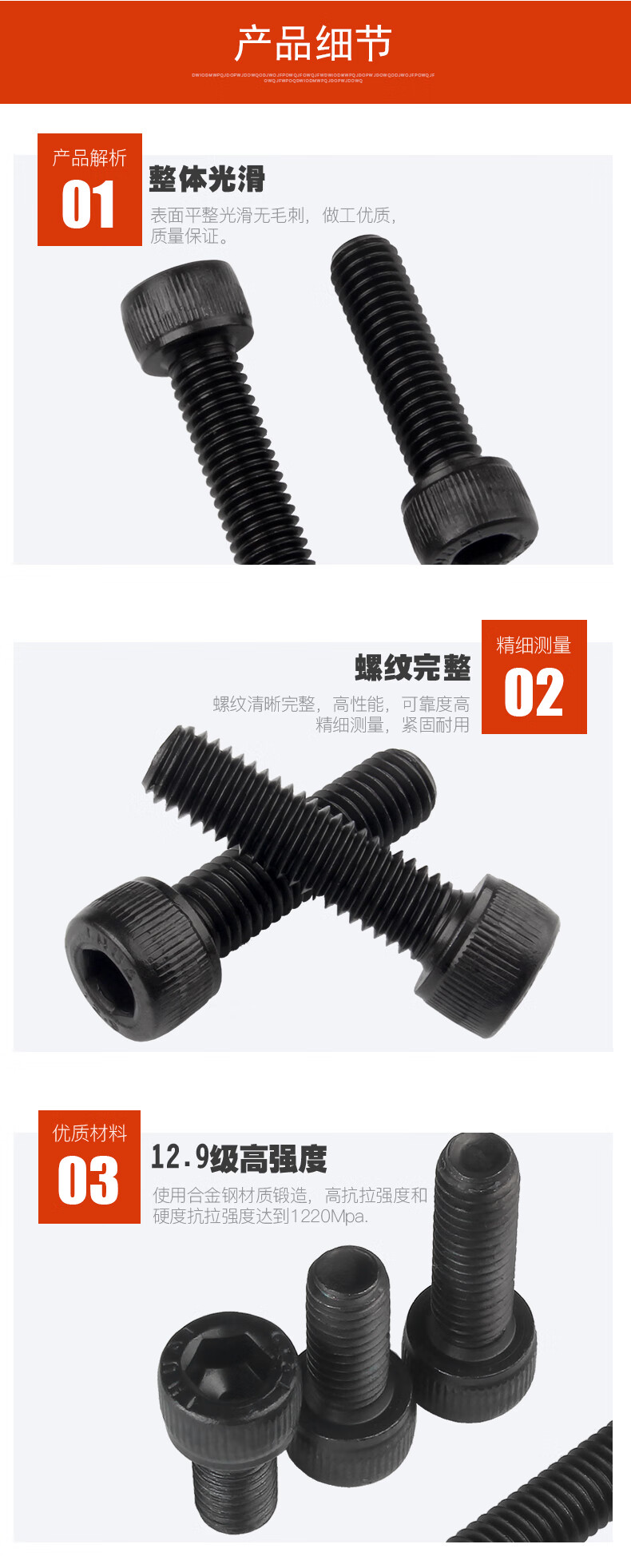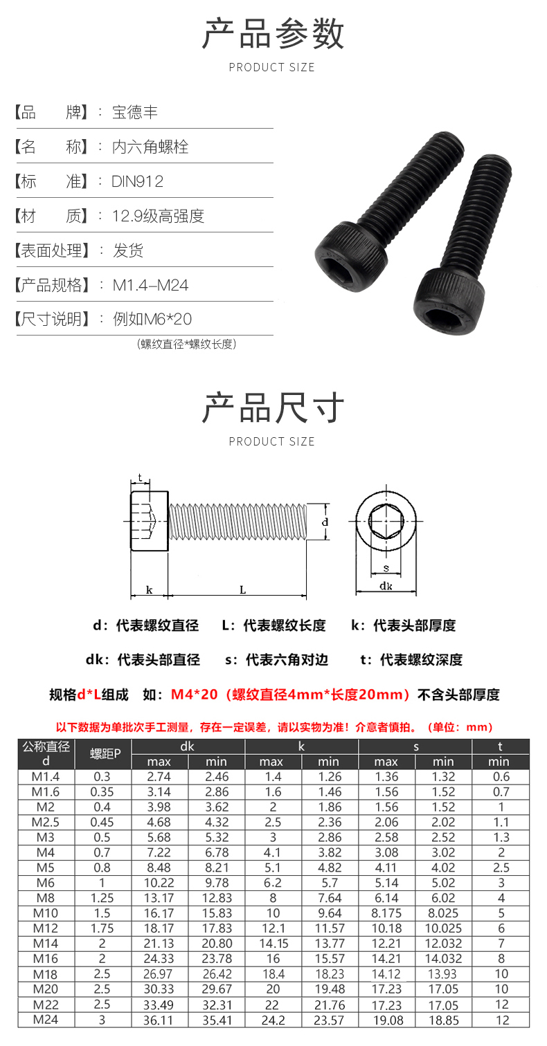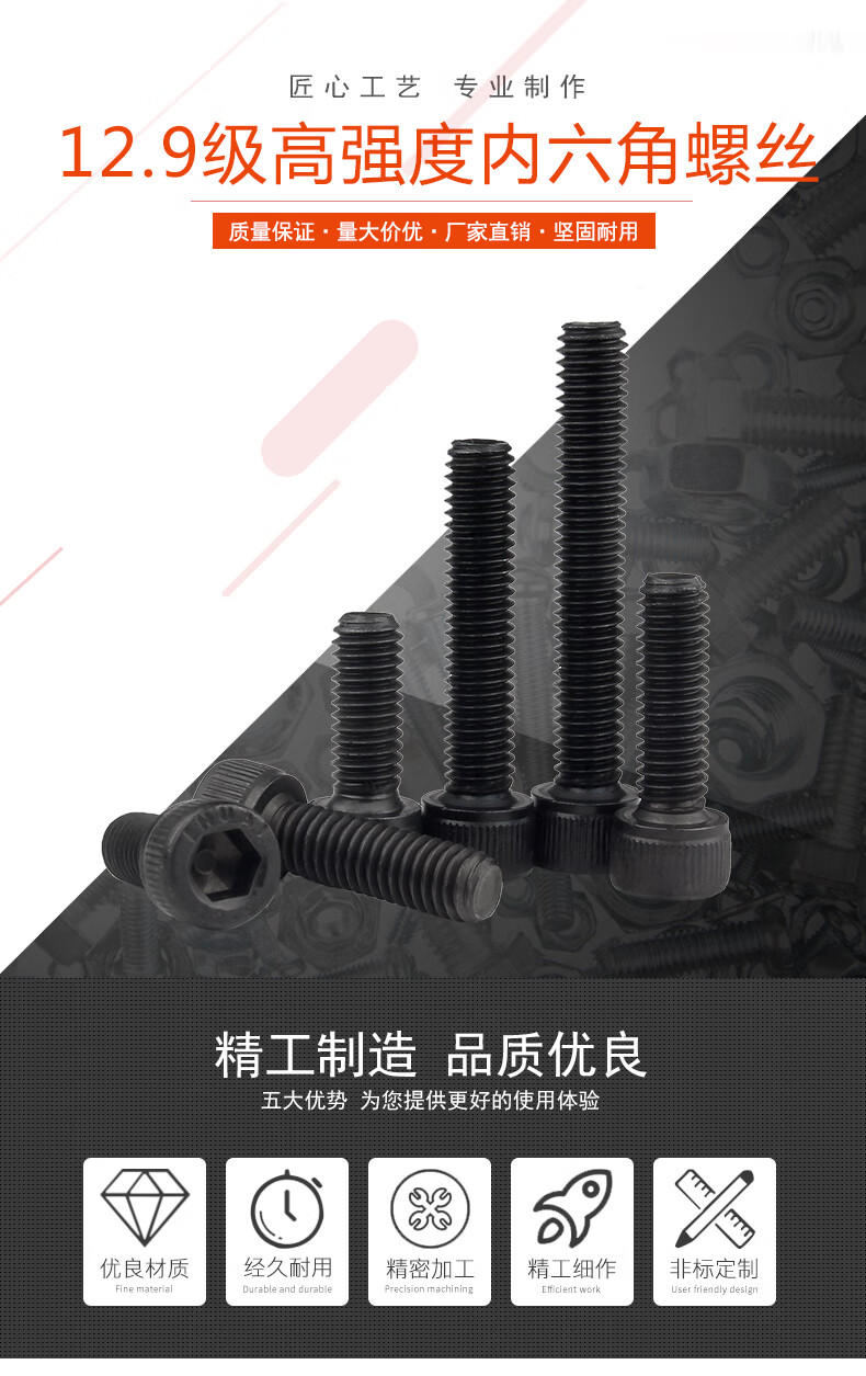 Baodefeng grade 12.9 inner hexagonal black cylindrical head bolt cup head screw full thread screw high strength bolt collection M3x10 (100 pieces)