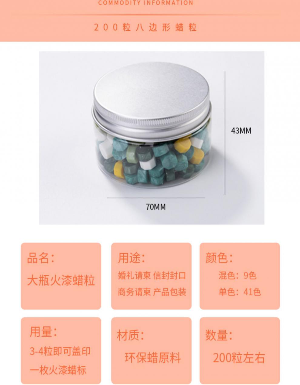 Fire paint seal wax grains pearlescent mixed color wax seal 200 grains Macaron color large bottle retro transparent Nordic style 0 Bright Galaxy about 200 grains