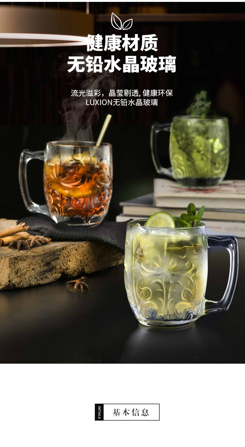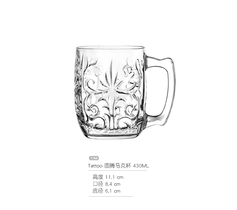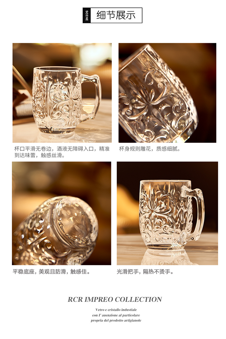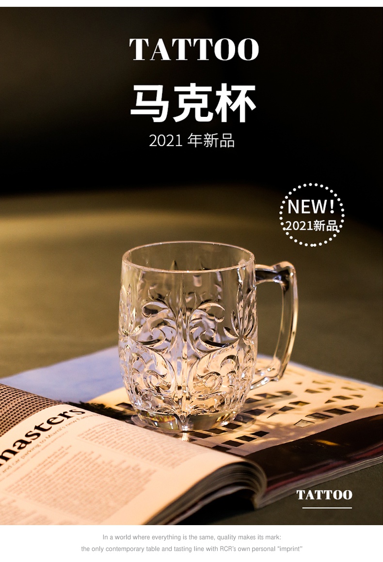 RCR Italian imported crystal glass engraved mug with handle water cup milk cup tea cup juice cup mug/single TATTOO series 430ml