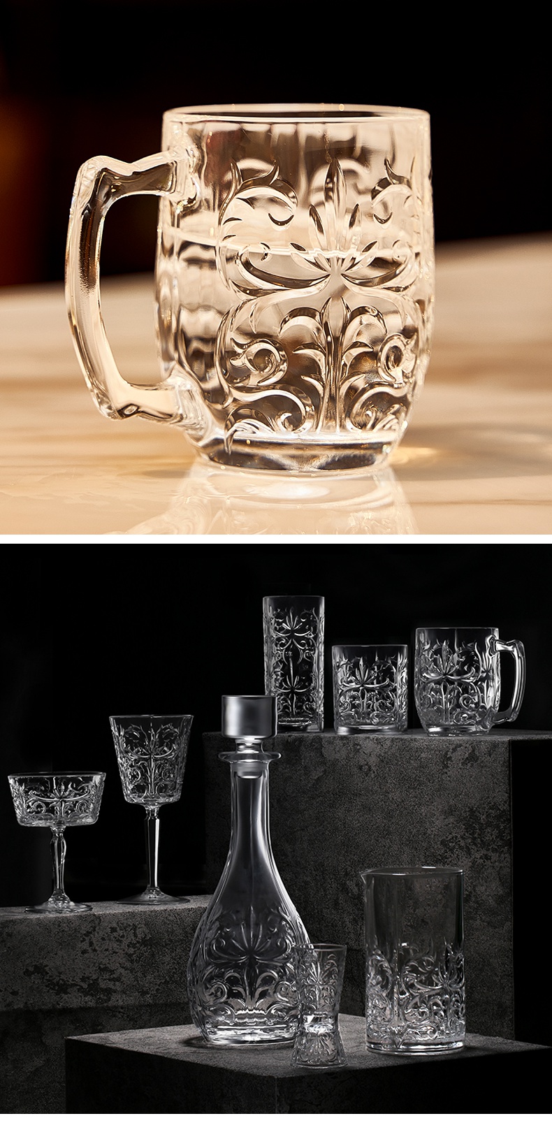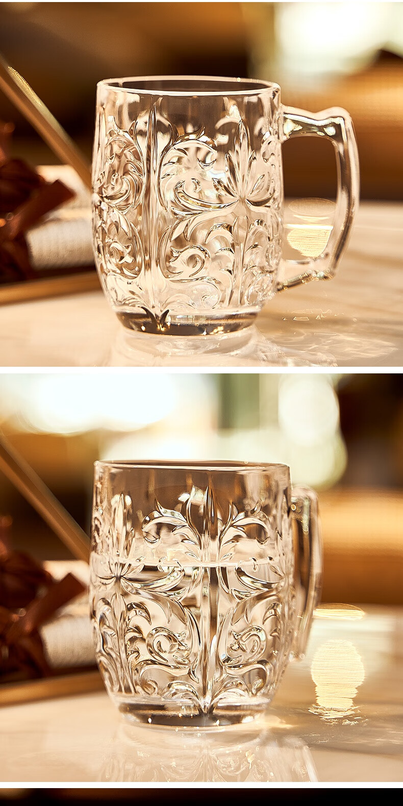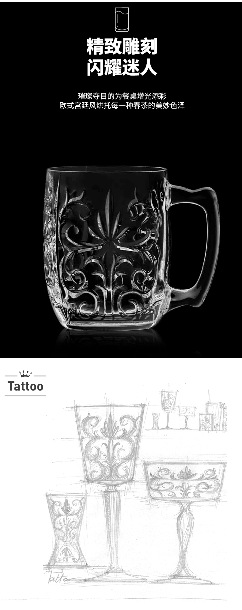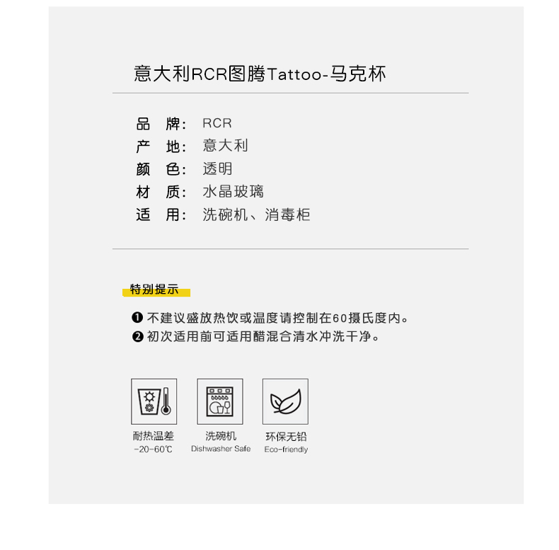 RCR Italian imported crystal glass engraved mug with handle water cup milk cup tea cup juice cup mug/single TATTOO series 430ml