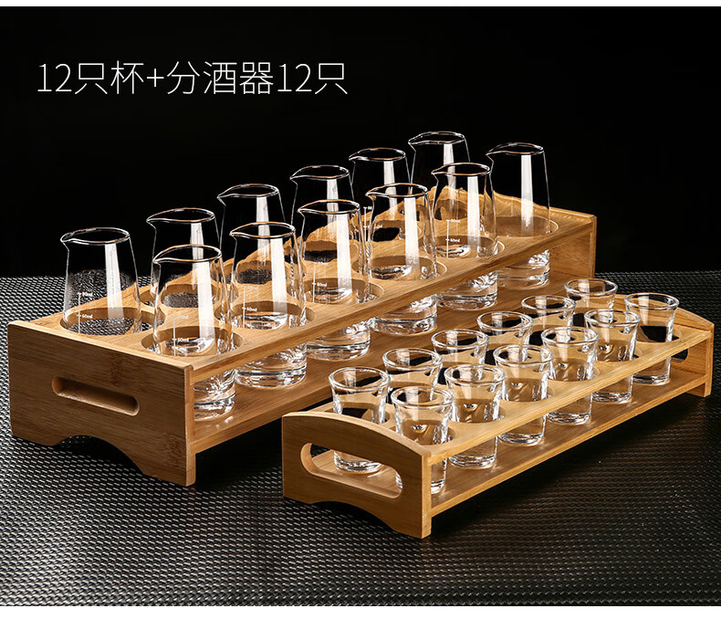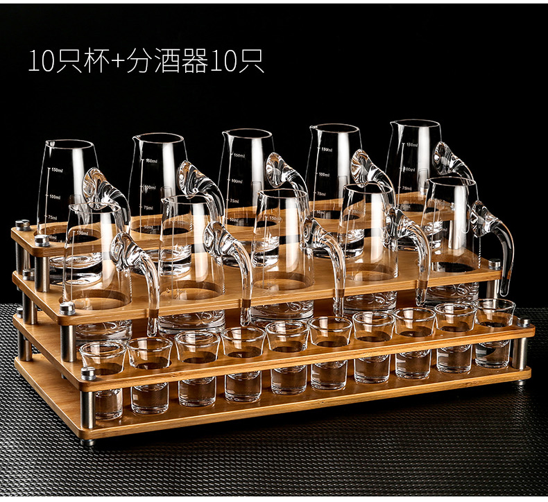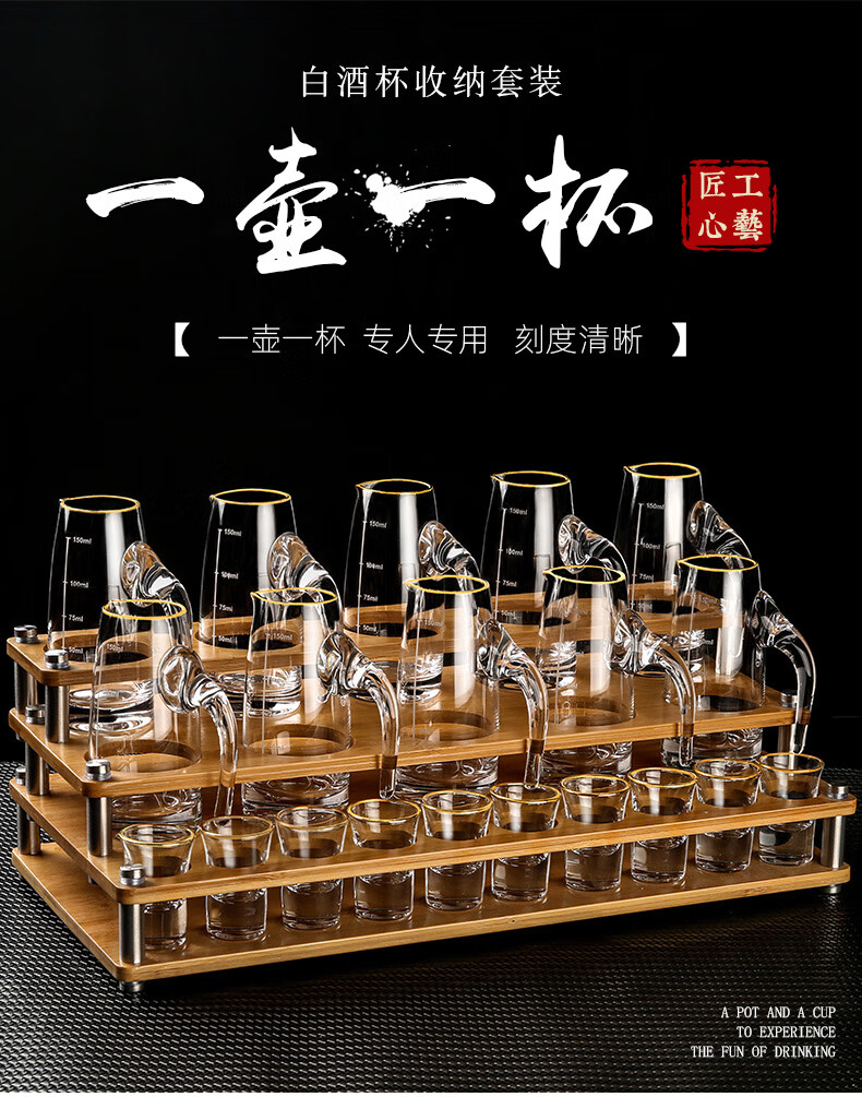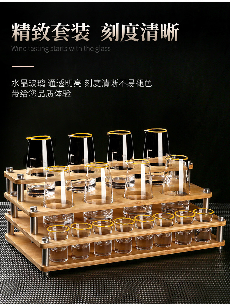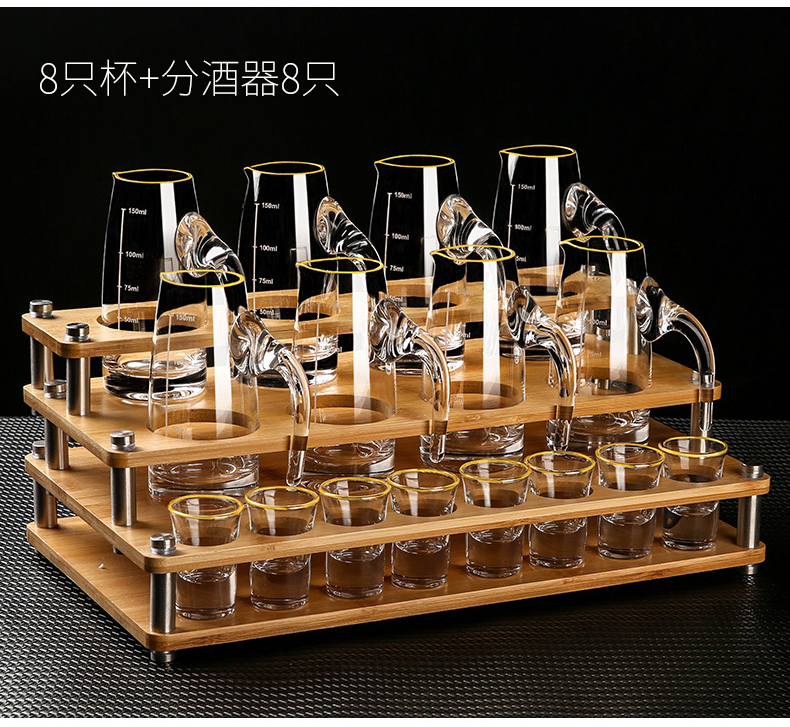 MARTIGUES white wine glass and wine dispenser set, household light luxury small wine glass, one-cup wine cup, Chinese wine set with graduated cup holder, 6 pots, 6 cups, 1 rack, 100ml wine dispenser + 15ml cup + single layer